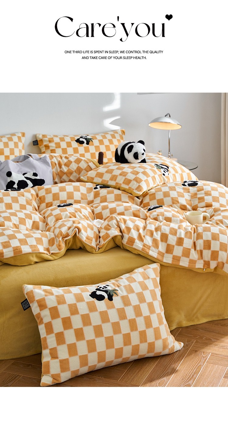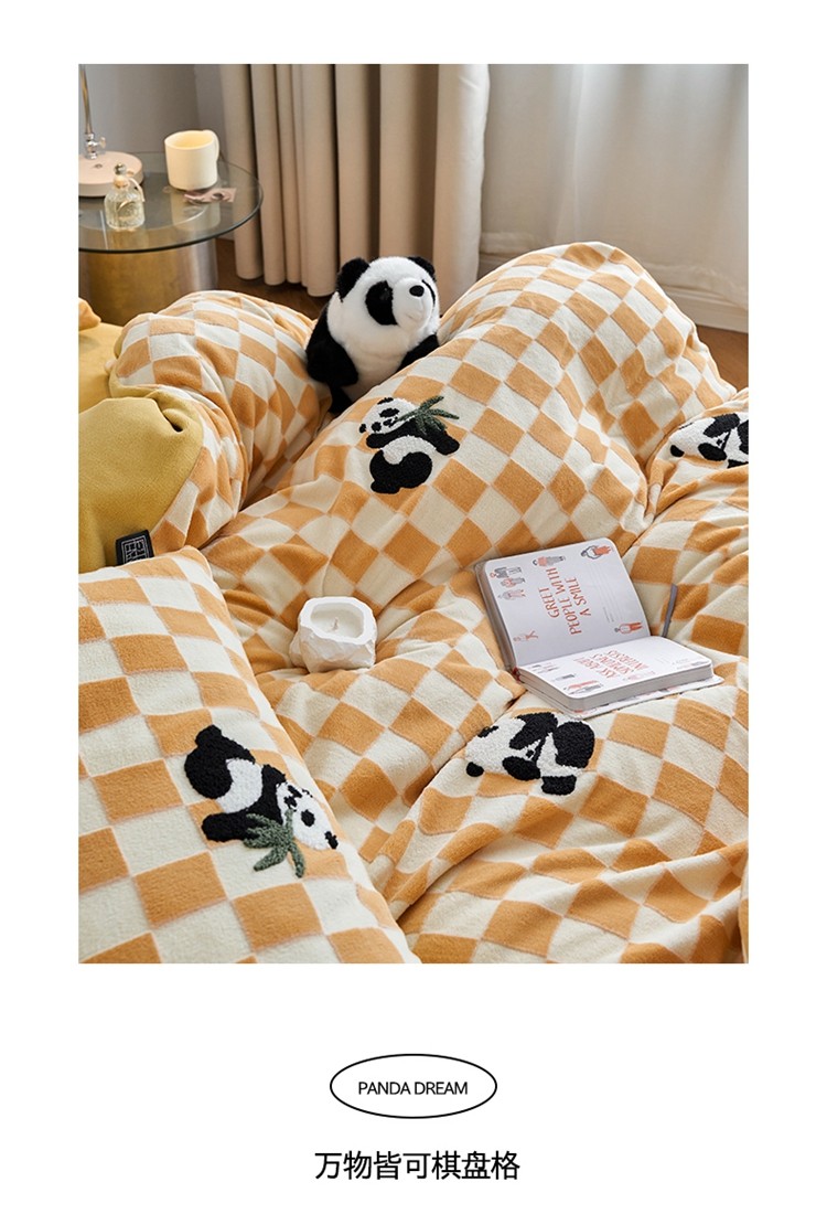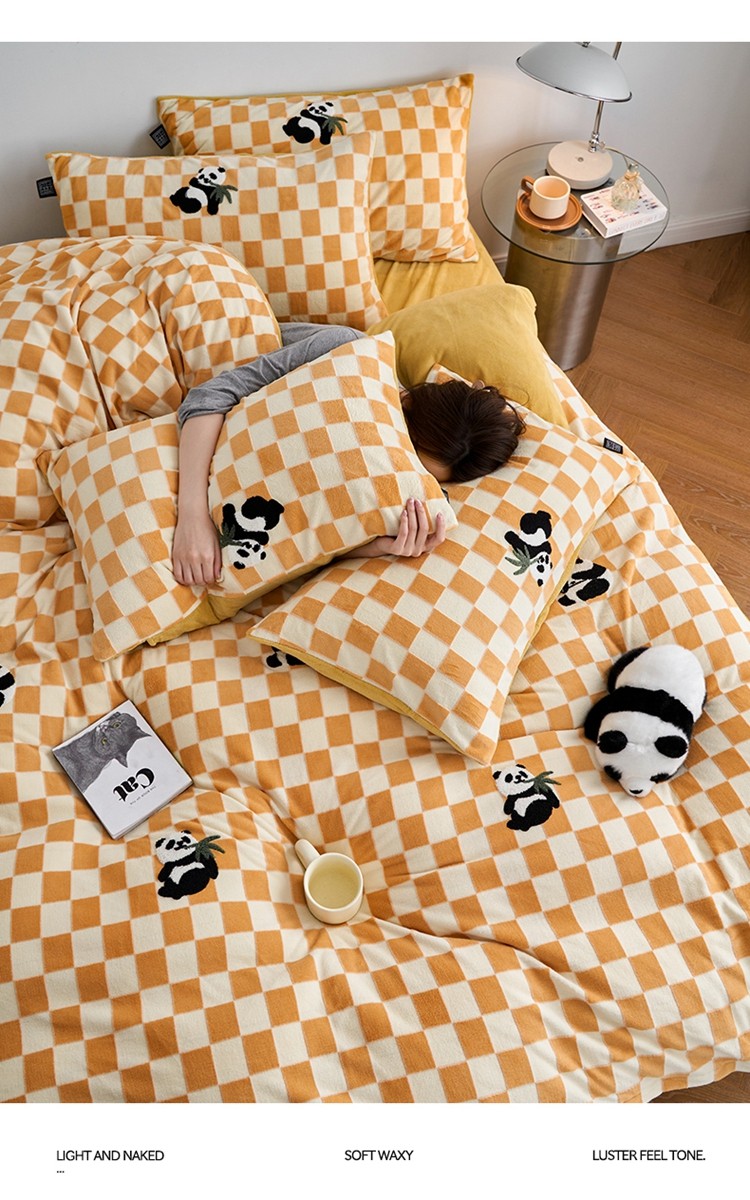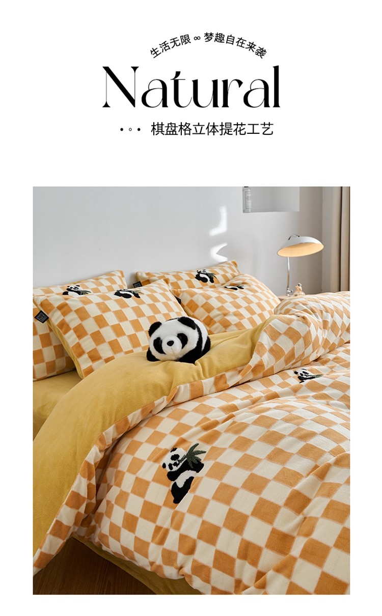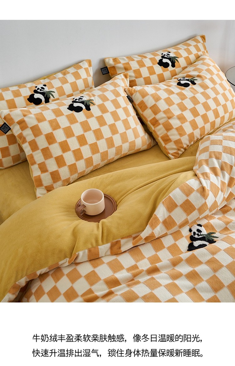 商品名称:风向标 20222新款立体提印棋盘格牛奶绒四件套 棋盘格熊猫-燕麦黄