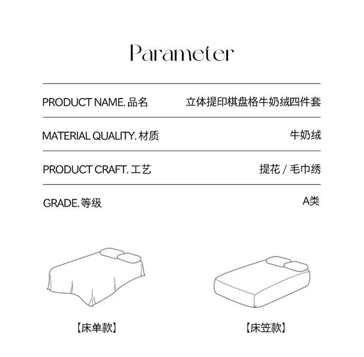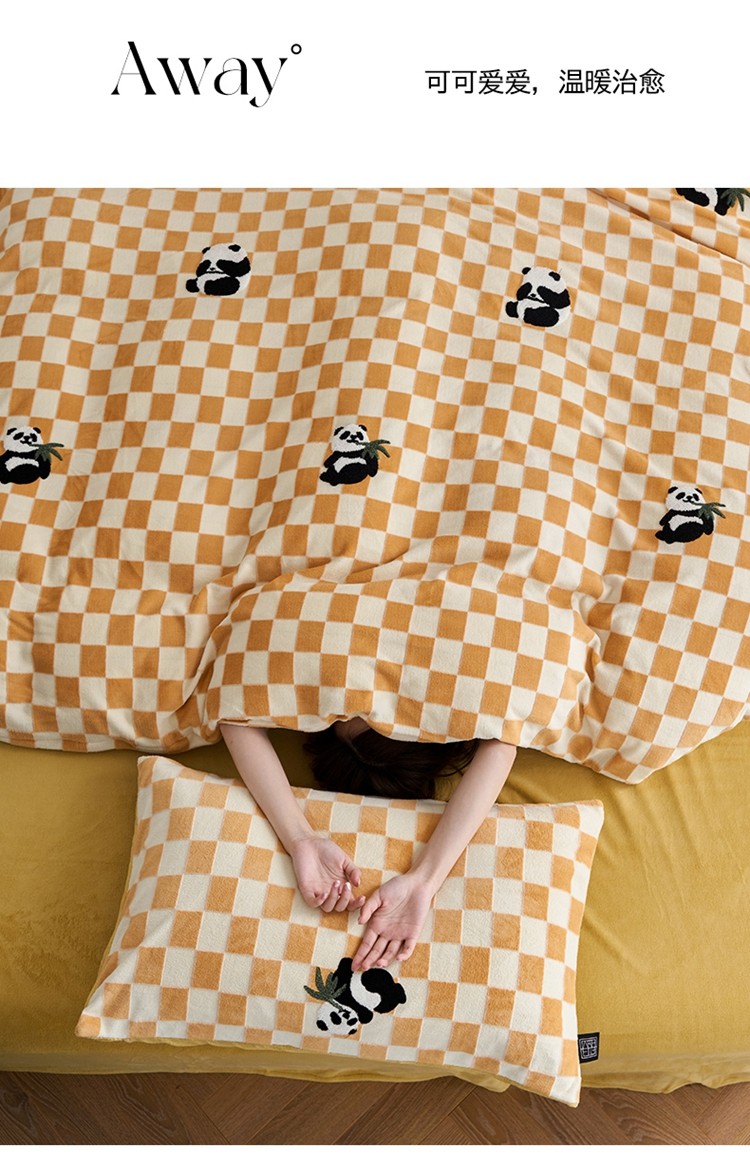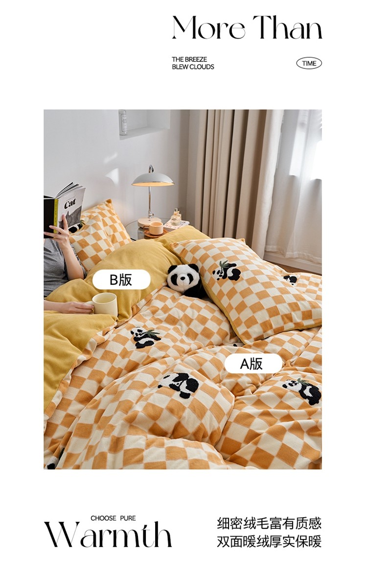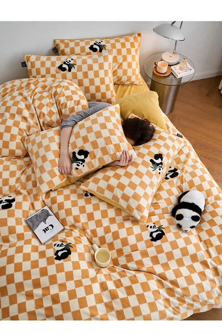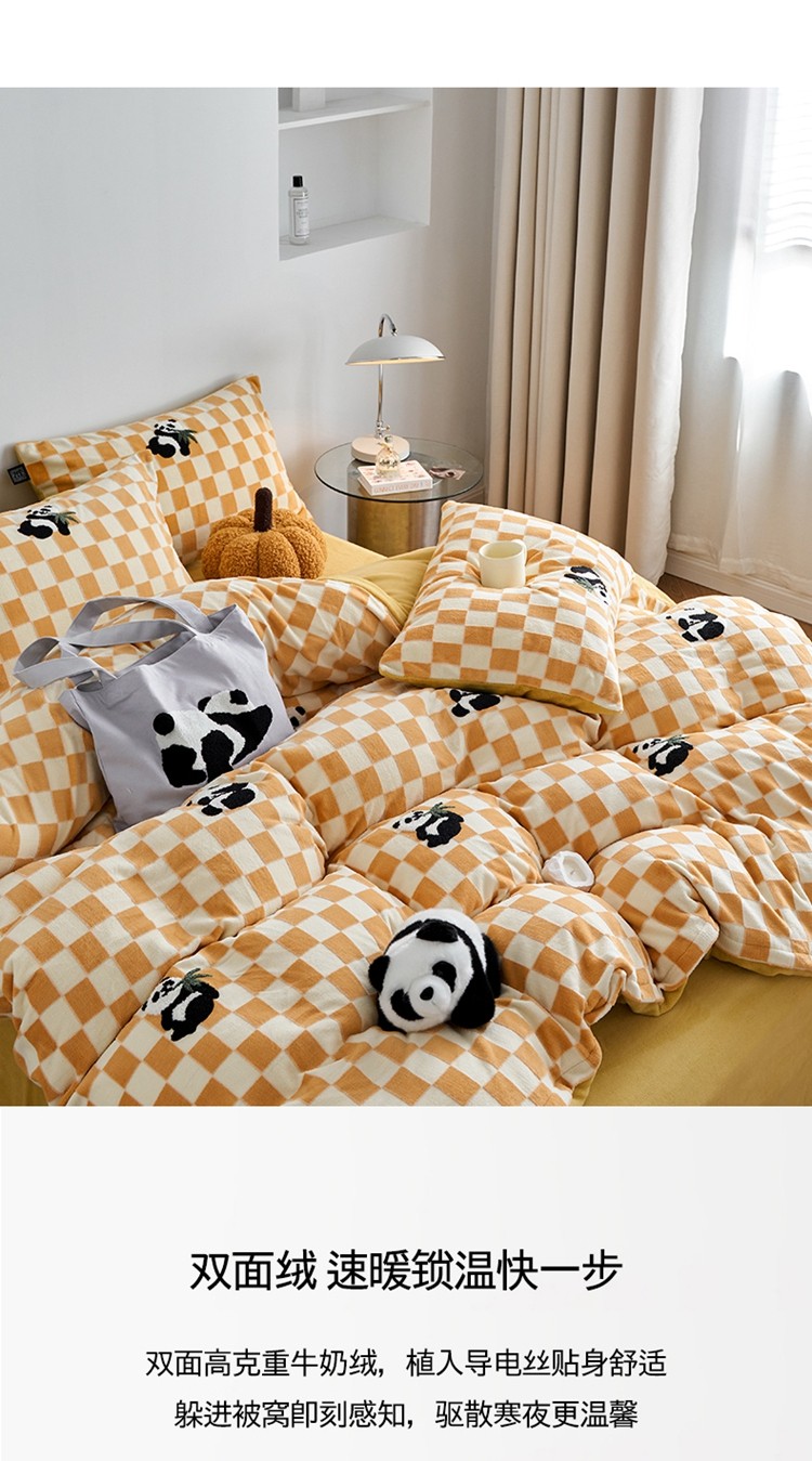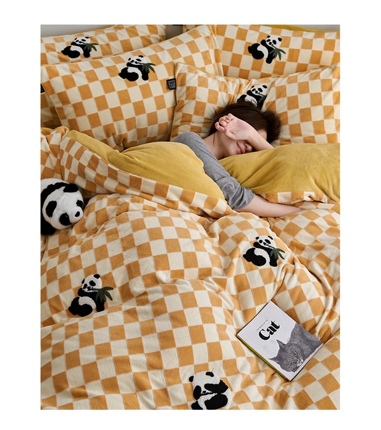 商品名称:风向标 20222新款立体提印棋盘格牛奶绒四件套 棋盘格熊猫-燕麦黄