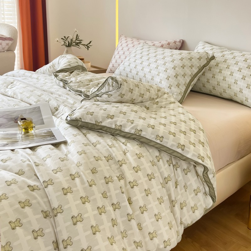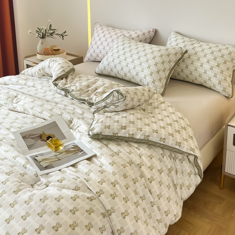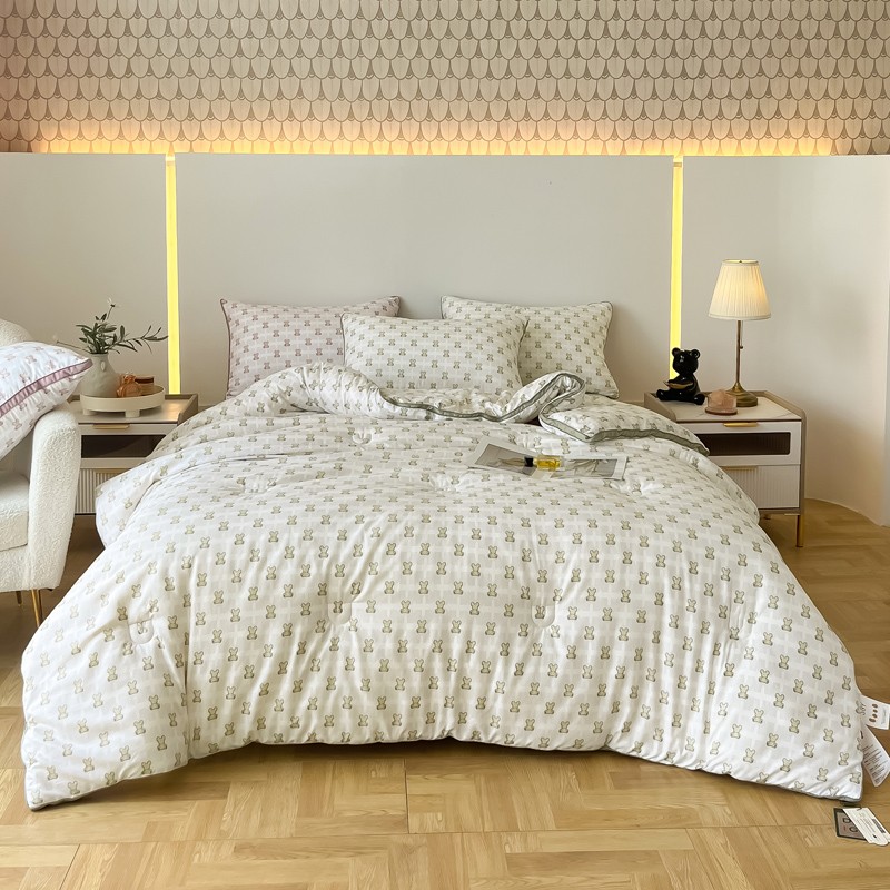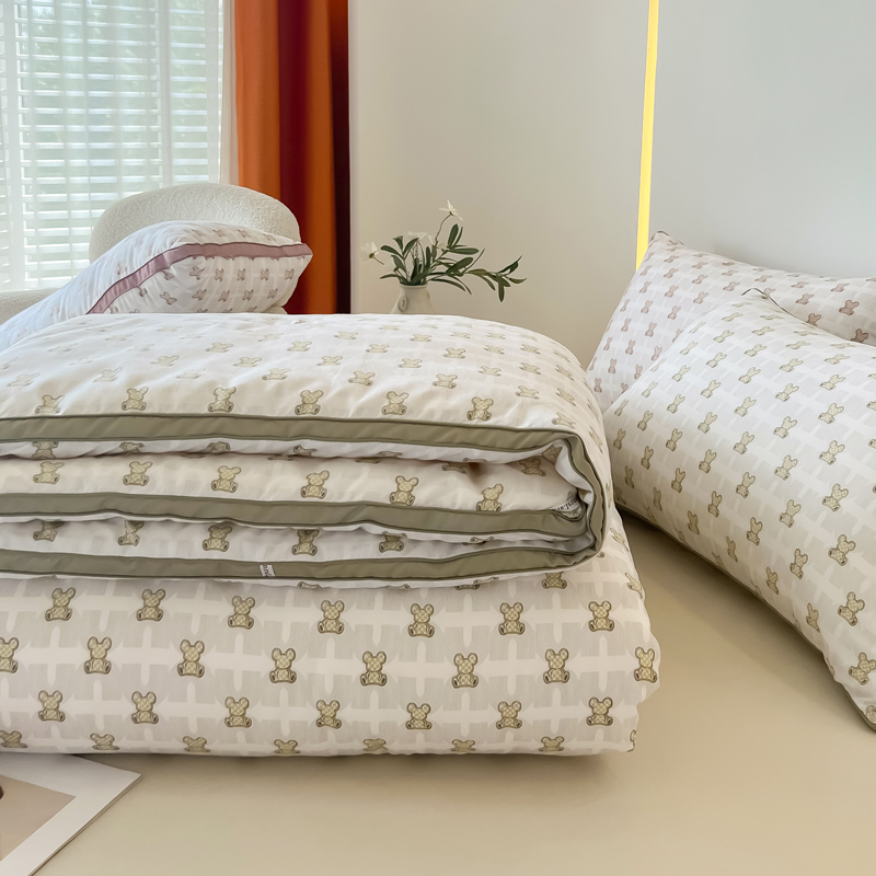 (总)匠心 2022新款立体暖绒大豆冬被,布朗熊-浅粉,布朗熊-浅绿