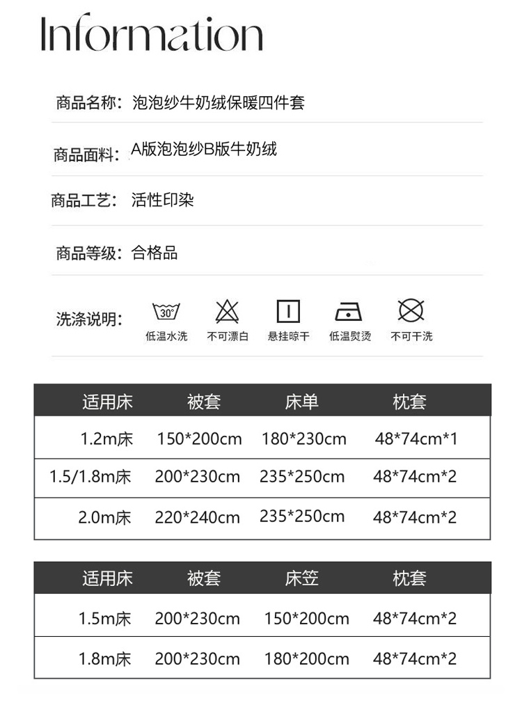 商品名称:总 柒月2022泡泡纱牛奶绒四件套
