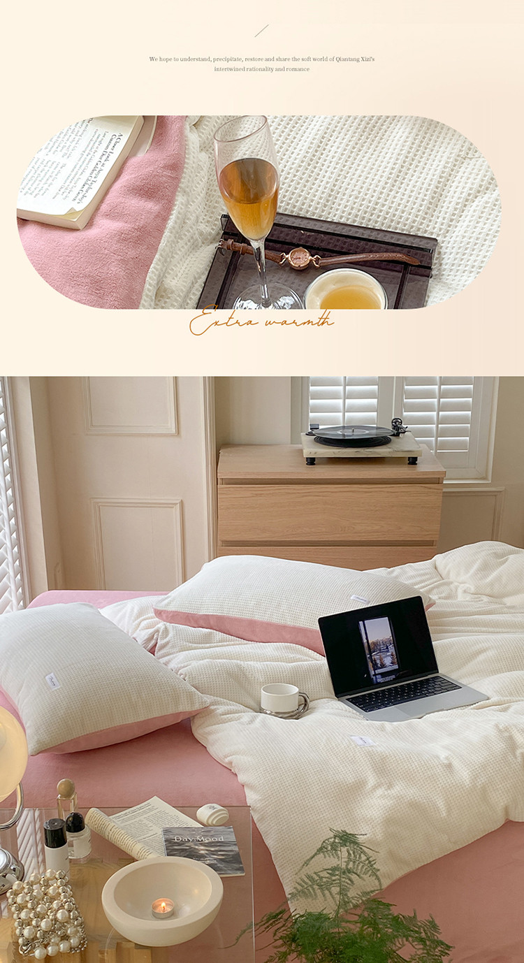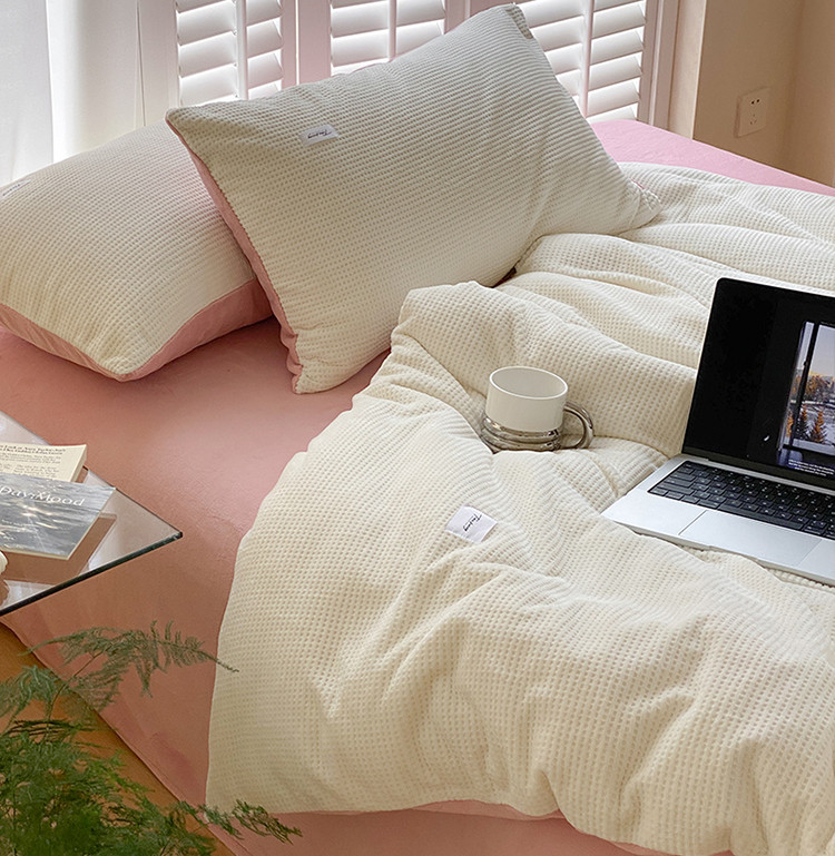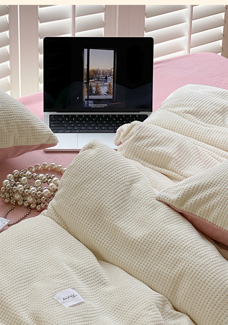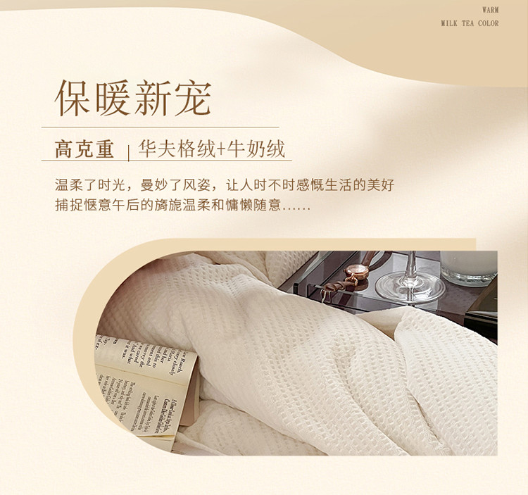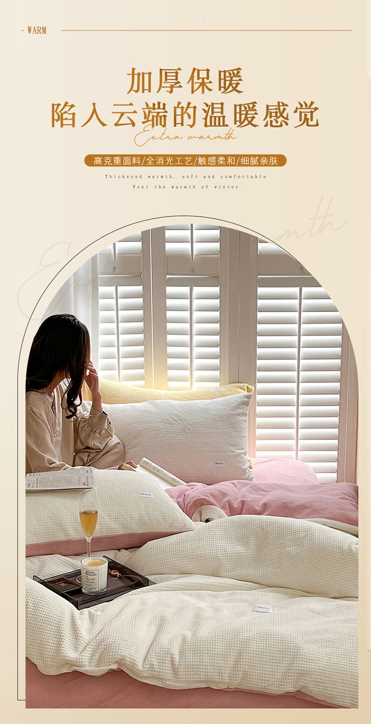 当前位置: 91家纺网 > 商品网购 > 床品套件 > 四件套 > 磨绒四件套 > 时光里 2022新款全消光230克华夫格绒牛奶绒四件套 米月白