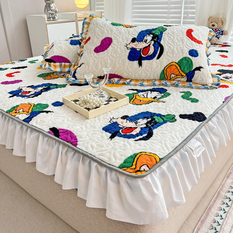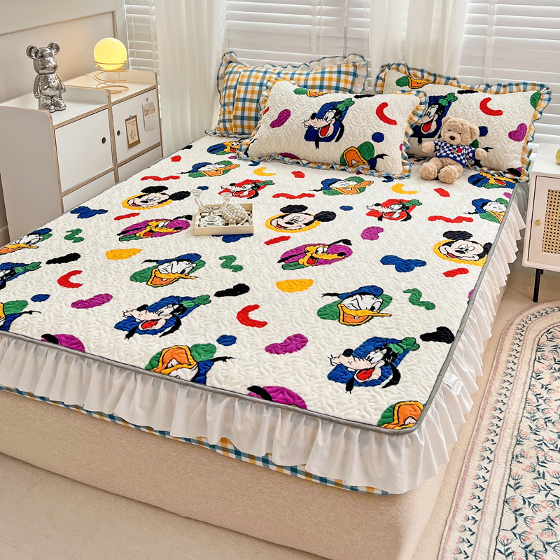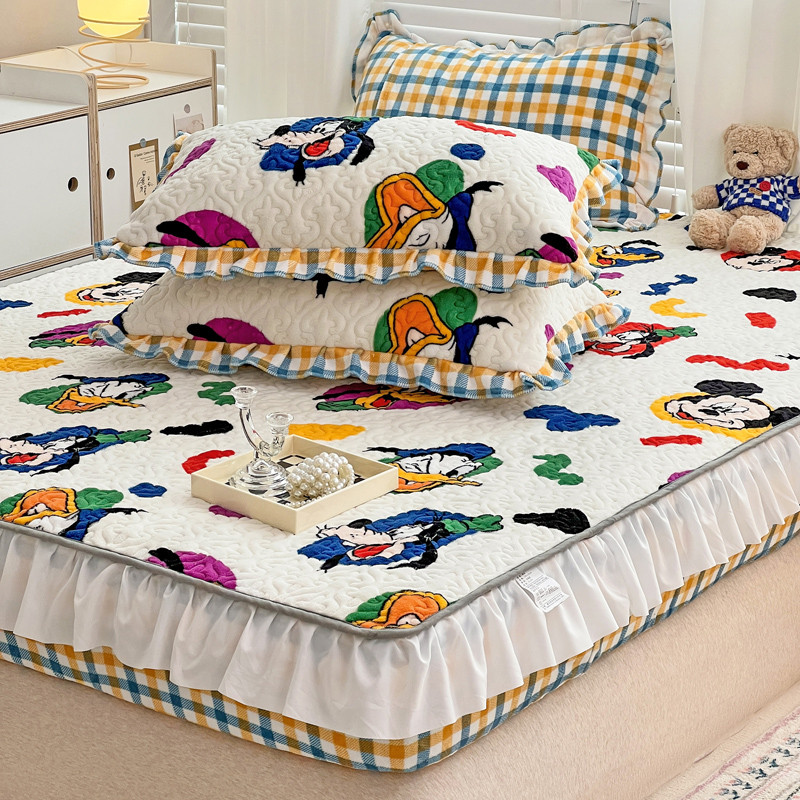 金丝鸟 2022新款迪士尼系列夹棉绗缝牛奶绒花边床笠 米奇唐老鸭