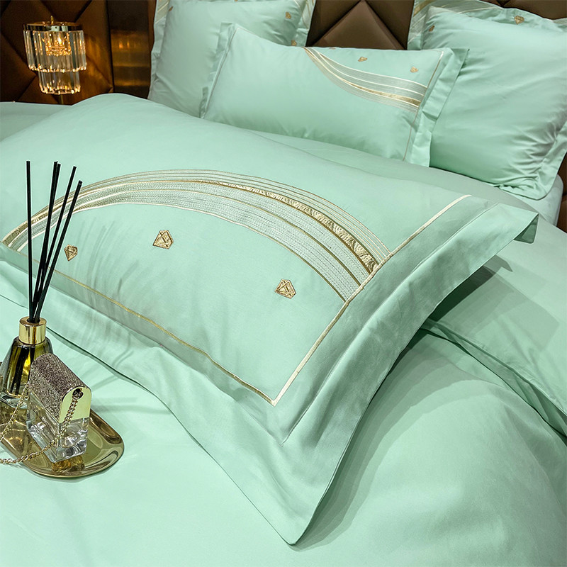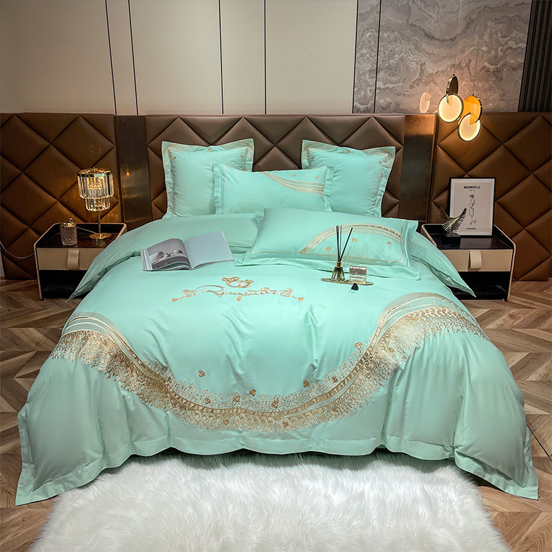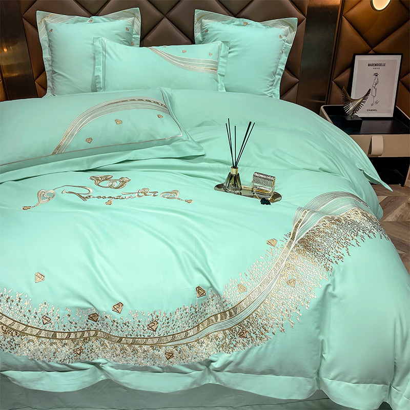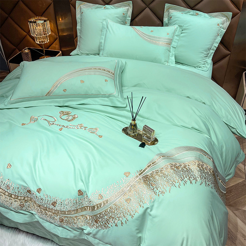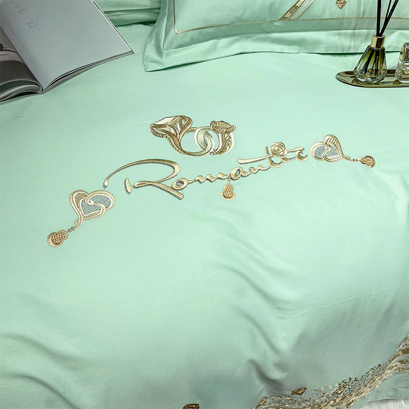 富之雅 2023新款时尚全棉居家婚庆四件套 永恒爱恋-浅绿