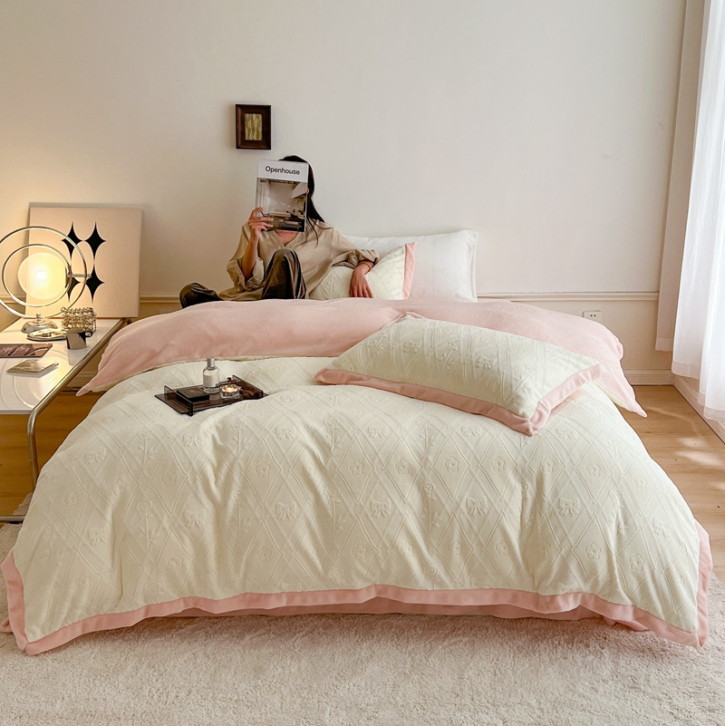 圆岛 2022新款四色入3D雕花牛奶绒保暖四件套 风格一 蜜粉