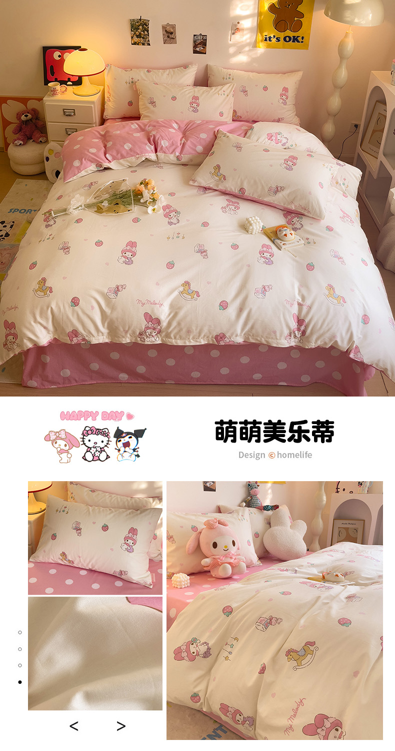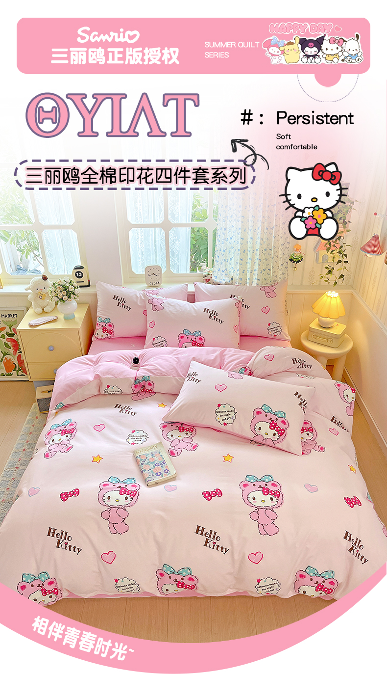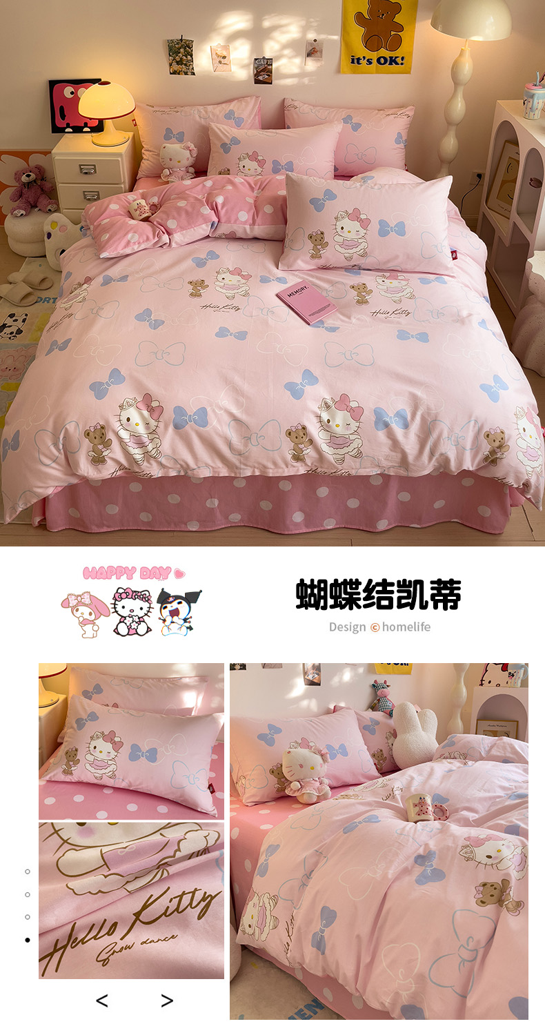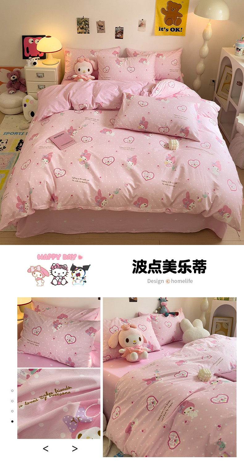 (总)朵希曼 2026新款三丽鸥全棉印花四件套系列,点点美乐蒂,红格凯蒂,蘑菇凯蒂,甜甜凯蒂,晚安大耳狗,樱桃凯蒂,元气美乐蒂,运动凯蒂
