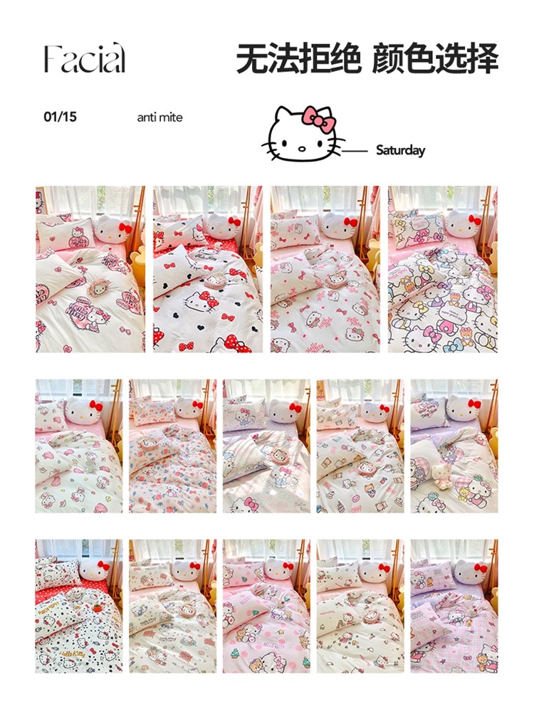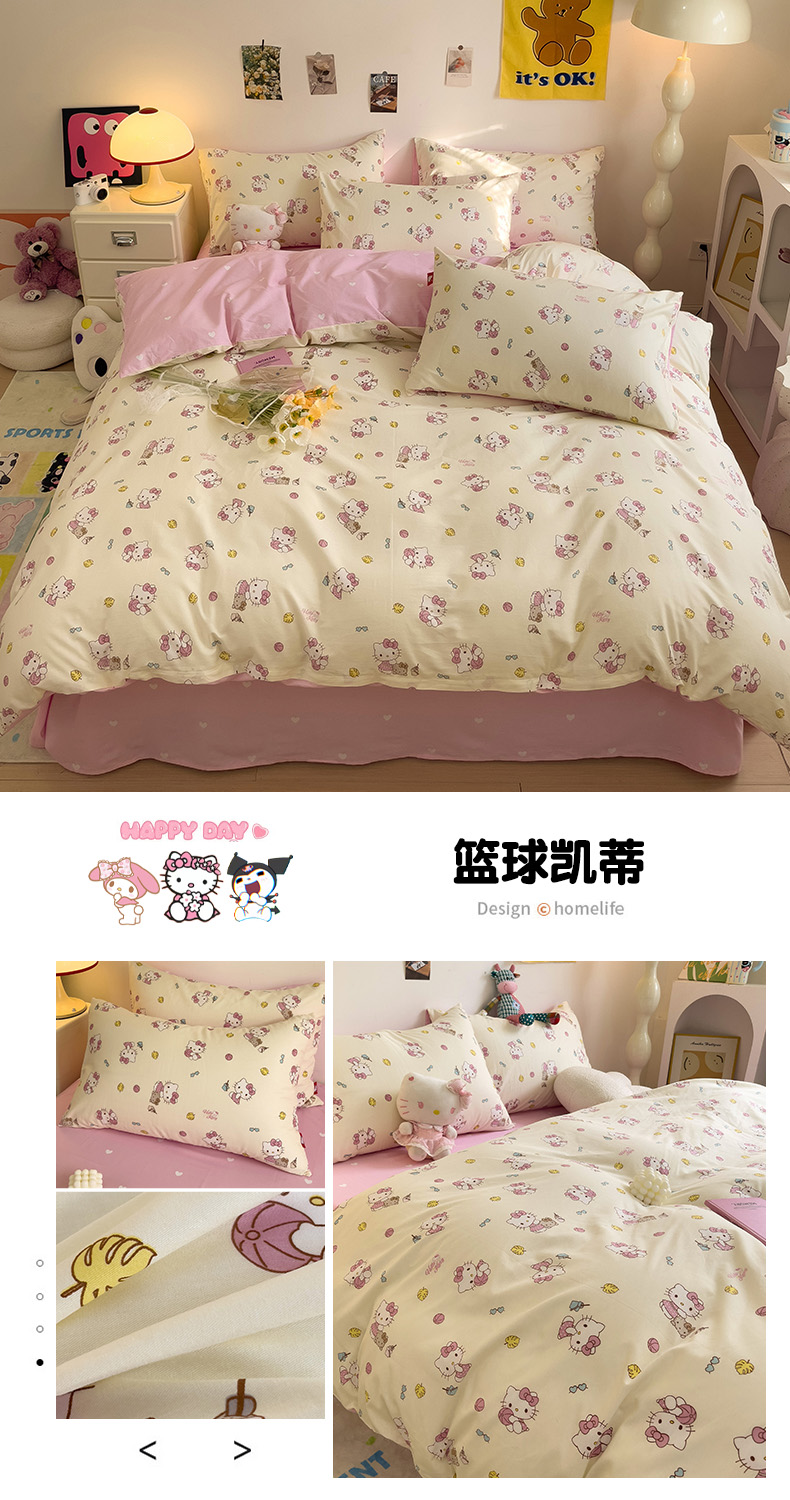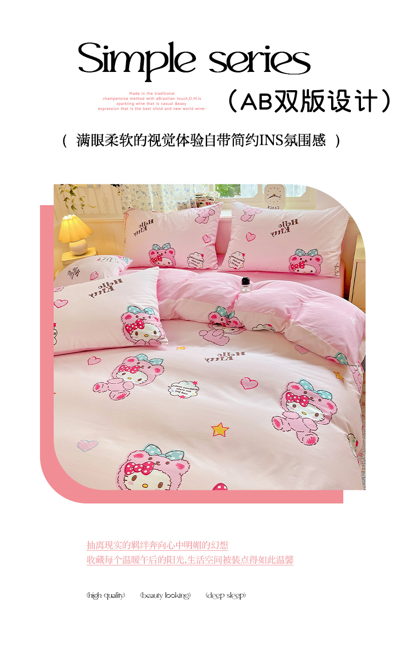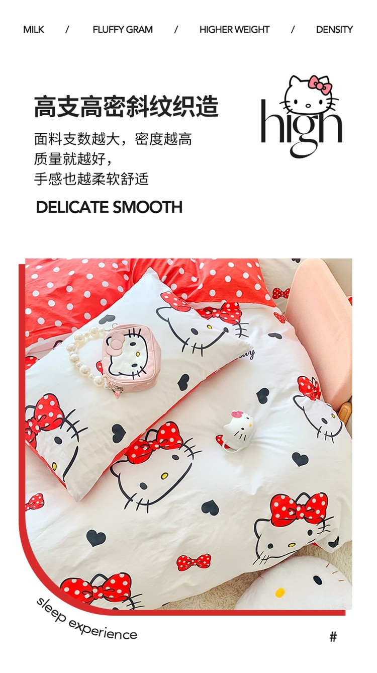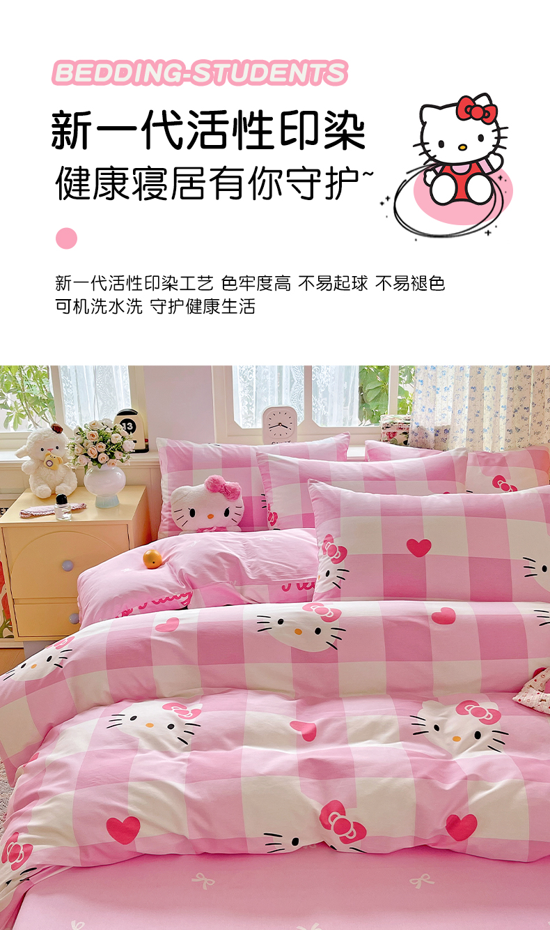 (总)朵希曼 2026新款三丽鸥全棉印花四件套系列,点点美乐蒂,红格凯蒂,蘑菇凯蒂,甜甜凯蒂,晚安大耳狗,樱桃凯蒂,元气美乐蒂,运动凯蒂