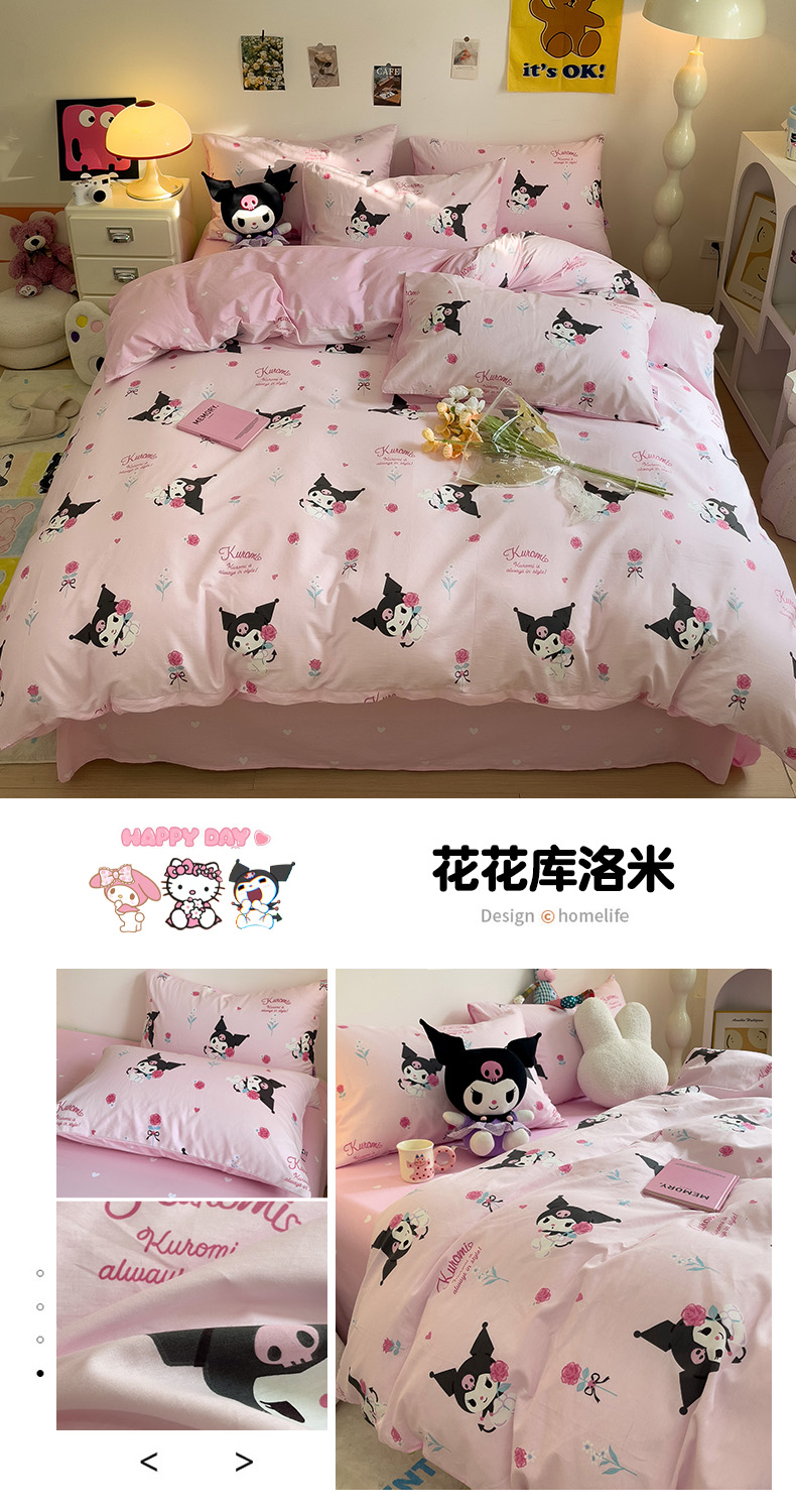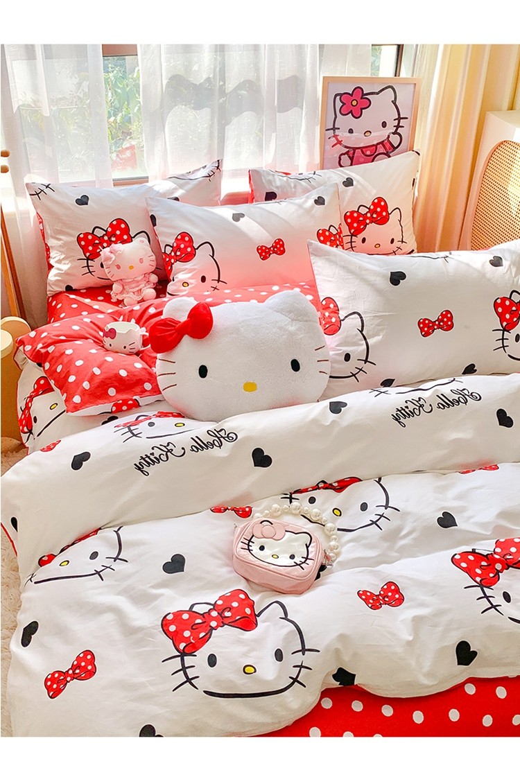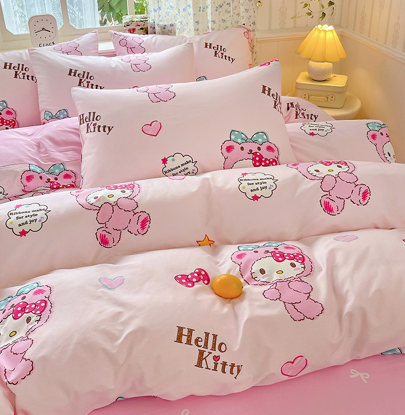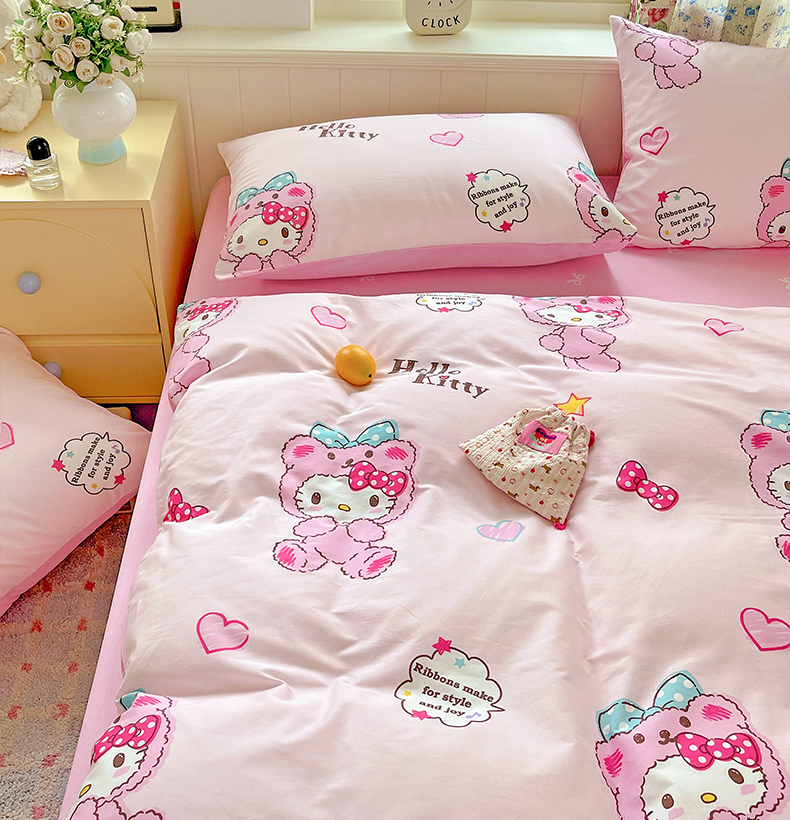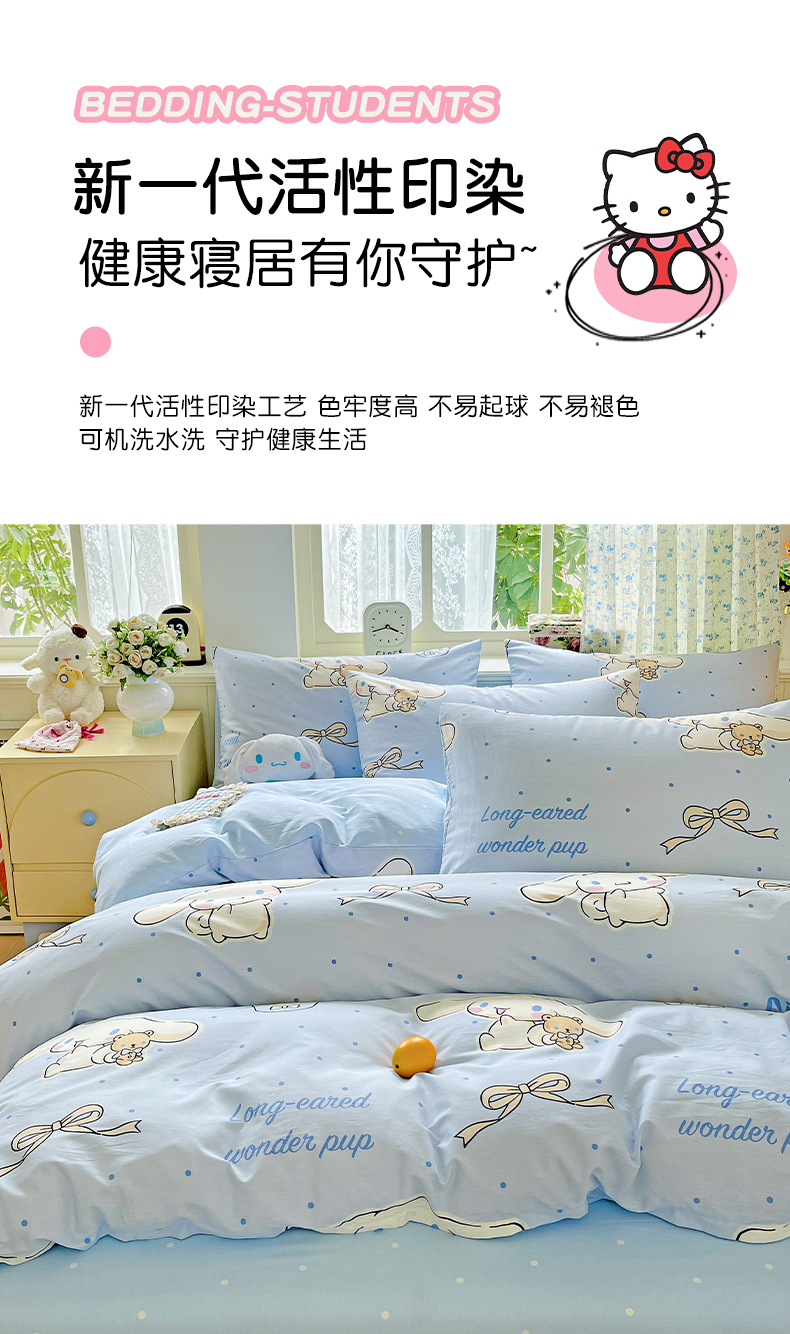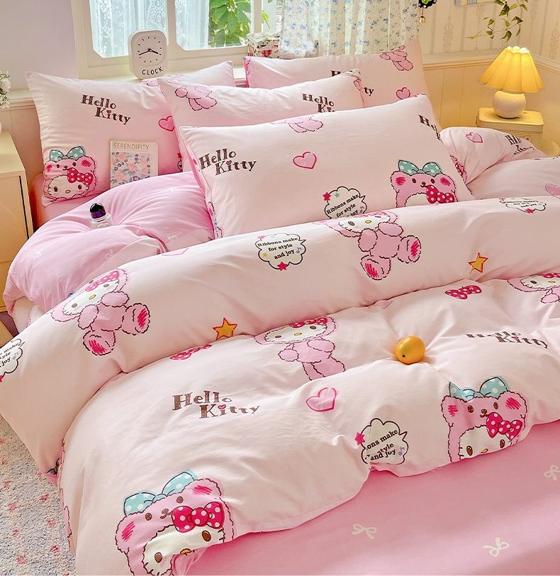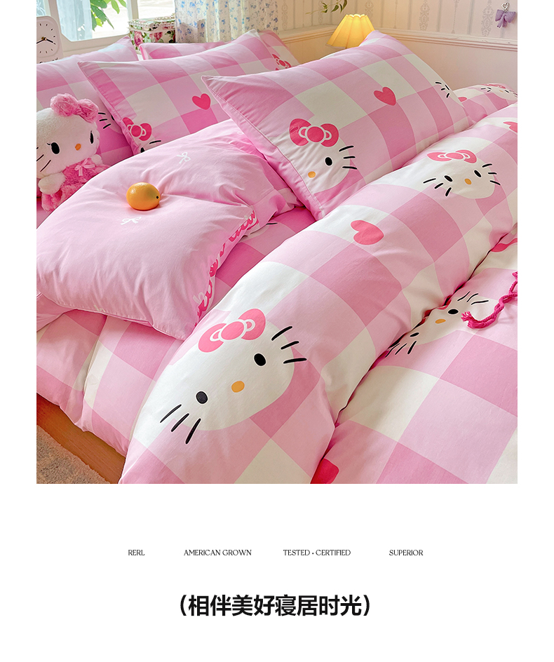 (总)朵希曼 2026新款三丽鸥全棉印花四件套系列,点点美乐蒂,红格凯蒂,蘑菇凯蒂,甜甜凯蒂,晚安大耳狗,樱桃凯蒂,元气美乐蒂,运动凯蒂