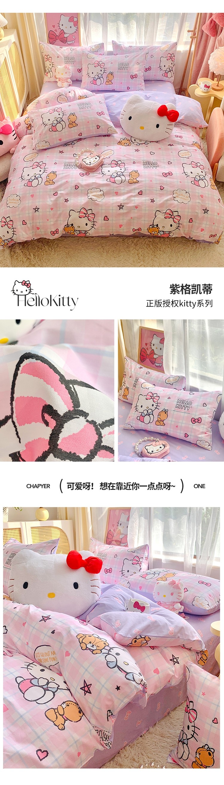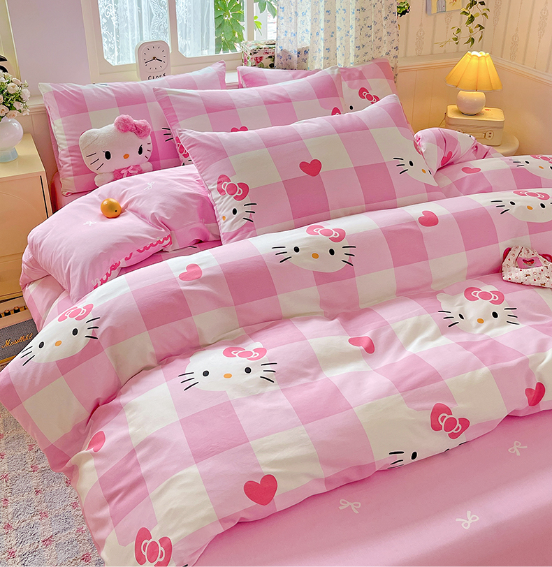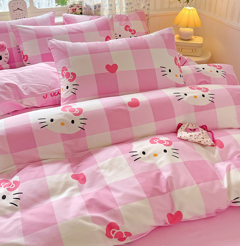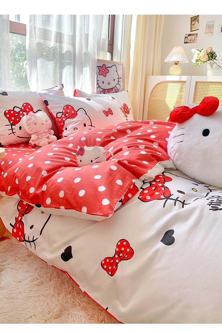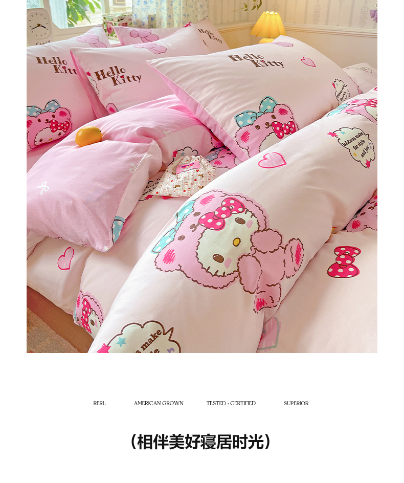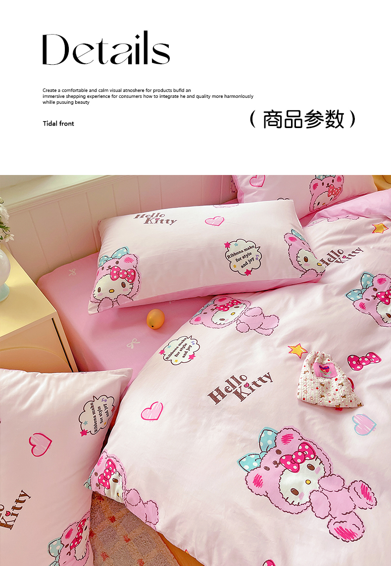 (总)朵希曼 2026新款三丽鸥全棉印花四件套系列,点点美乐蒂,红格凯蒂,蘑菇凯蒂,甜甜凯蒂,晚安大耳狗,樱桃凯蒂,元气美乐蒂,运动凯蒂