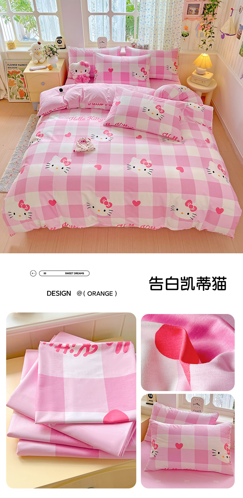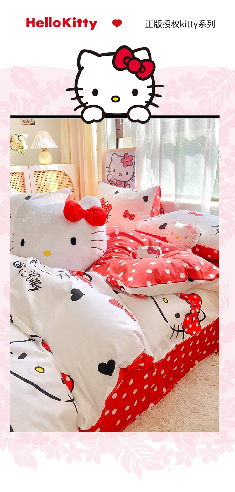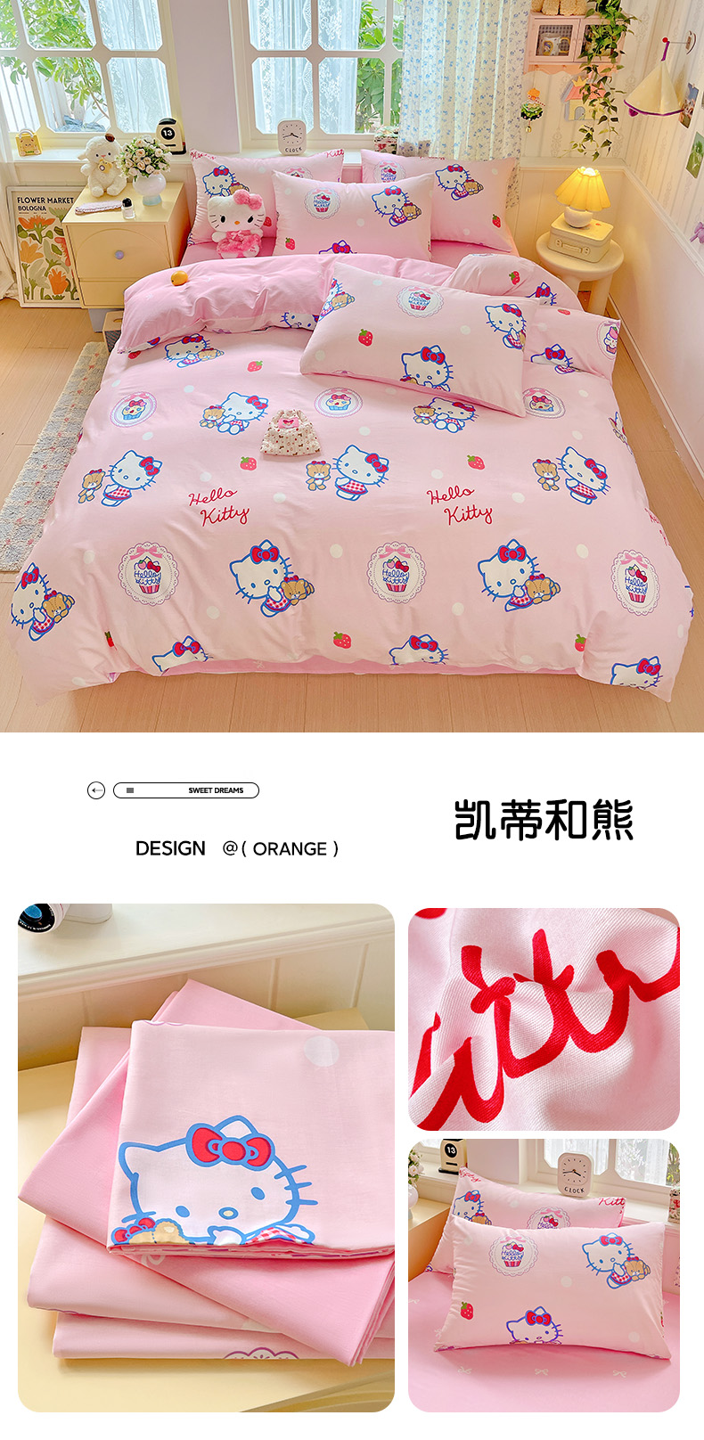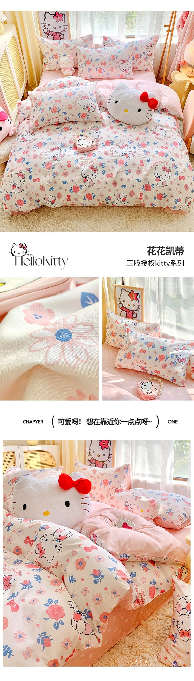 (总)朵希曼 2026新款三丽鸥全棉印花四件套系列,点点美乐蒂,红格凯蒂,蘑菇凯蒂,甜甜凯蒂,晚安大耳狗,樱桃凯蒂,元气美乐蒂,运动凯蒂