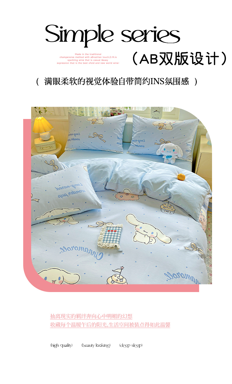 商品名称:总朵希曼 2025新款全棉三丽鸥卡通印花系列四件套