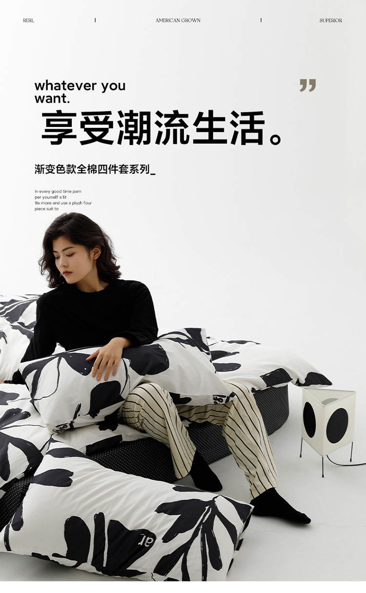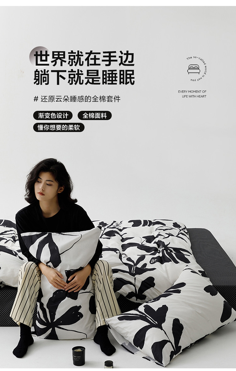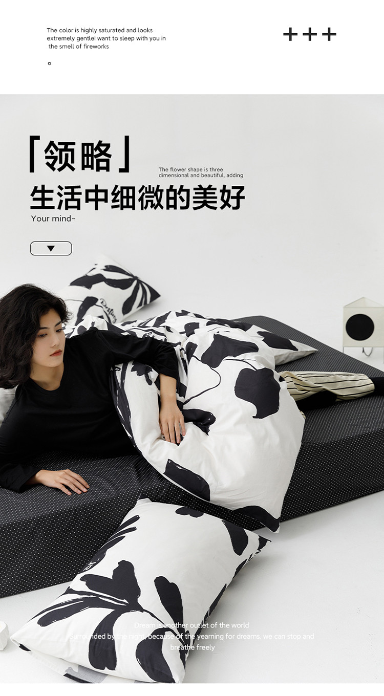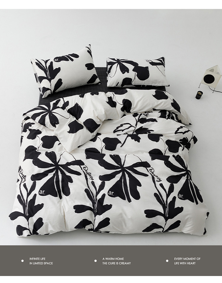 雅居纺 2023新款13070黑白系全棉四件套 月夜桂花
