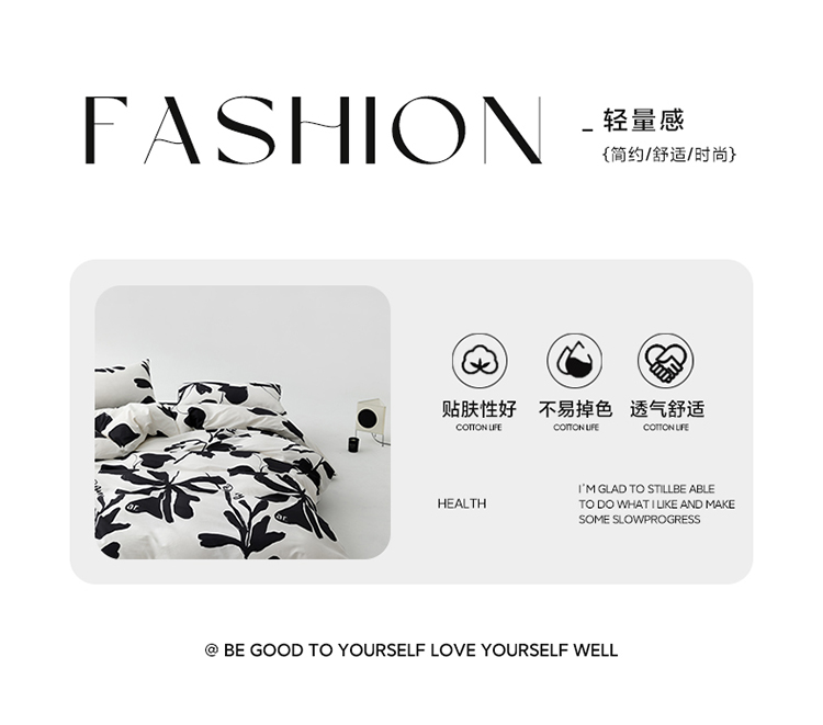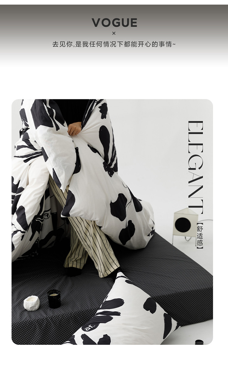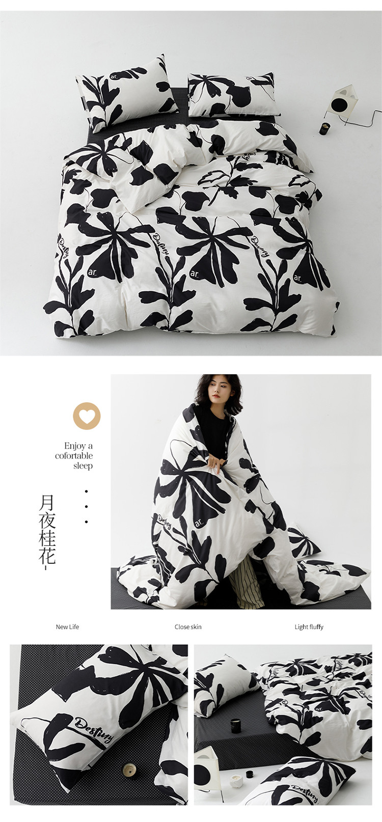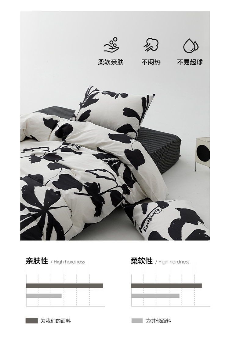 雅居纺 2023新款13070黑白系全棉四件套 月夜桂花