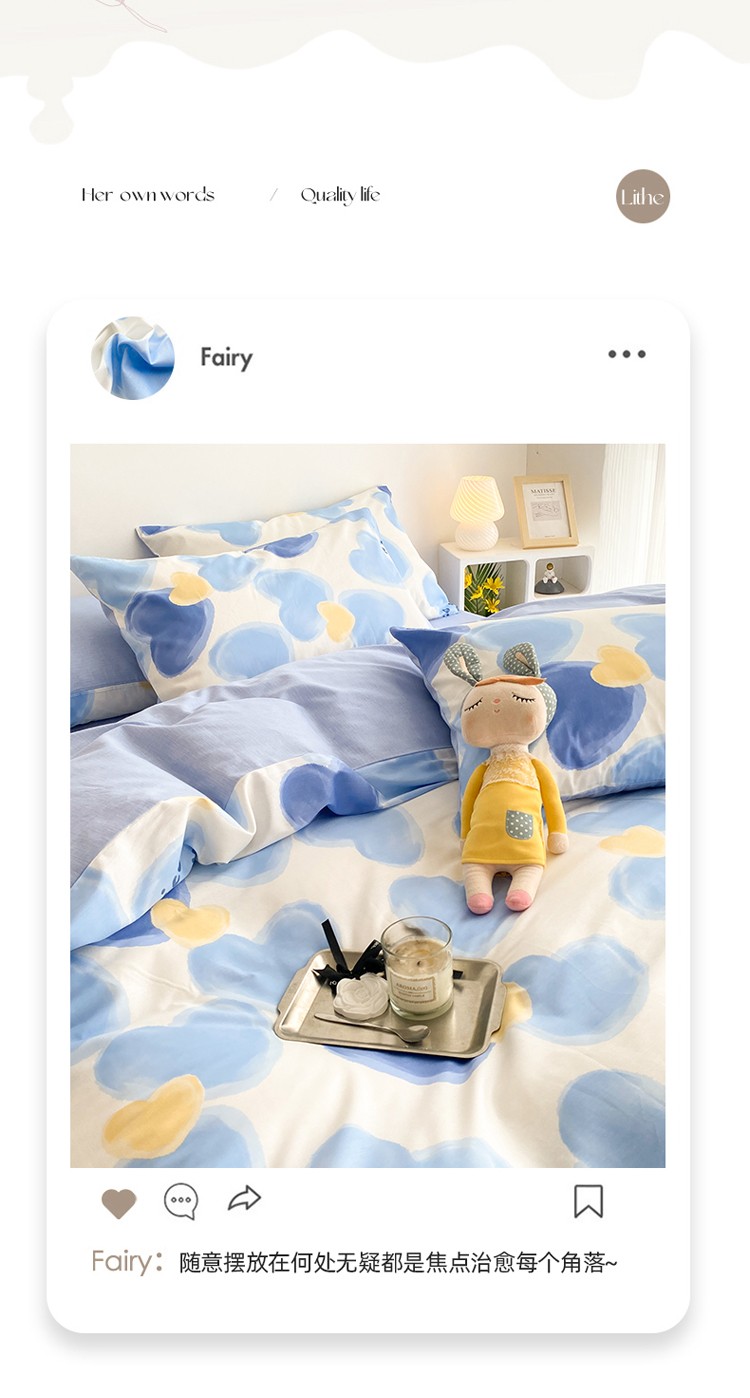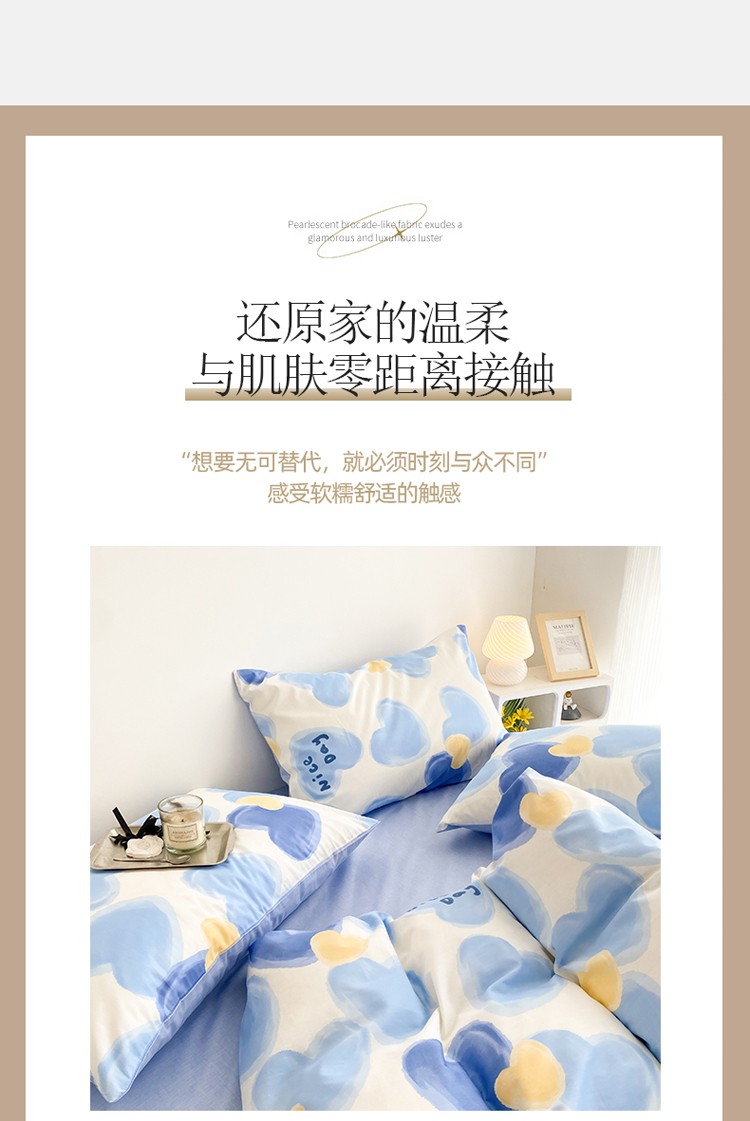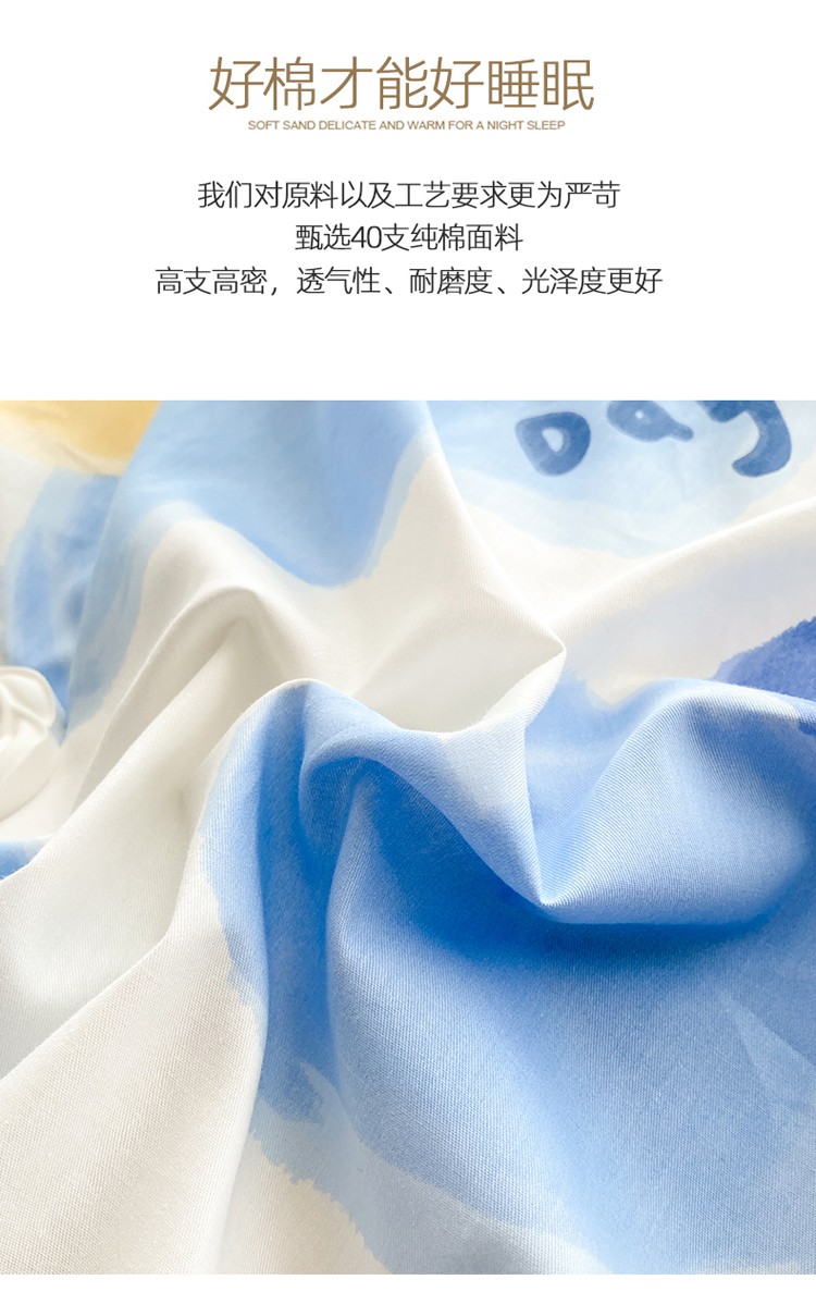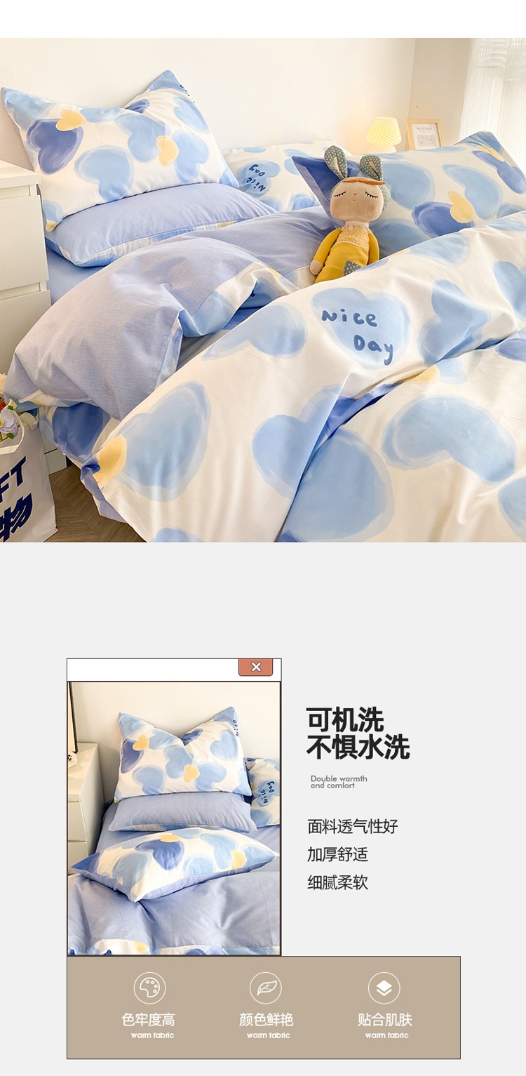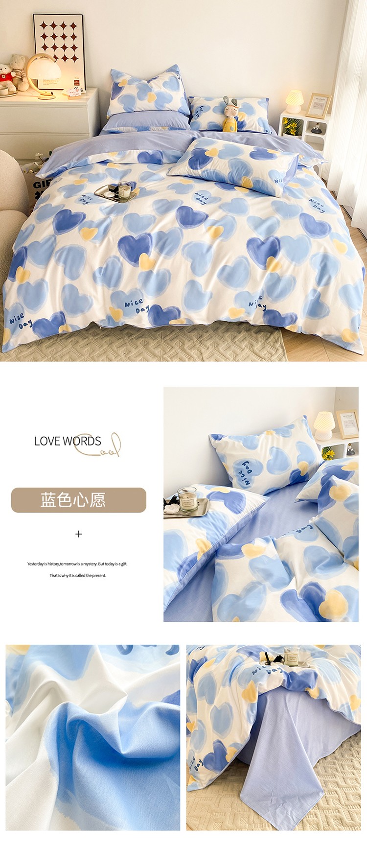 商品名称:简宜家居 2023新款小清新卡通纯棉全棉斜纹四件套 蓝色心愿