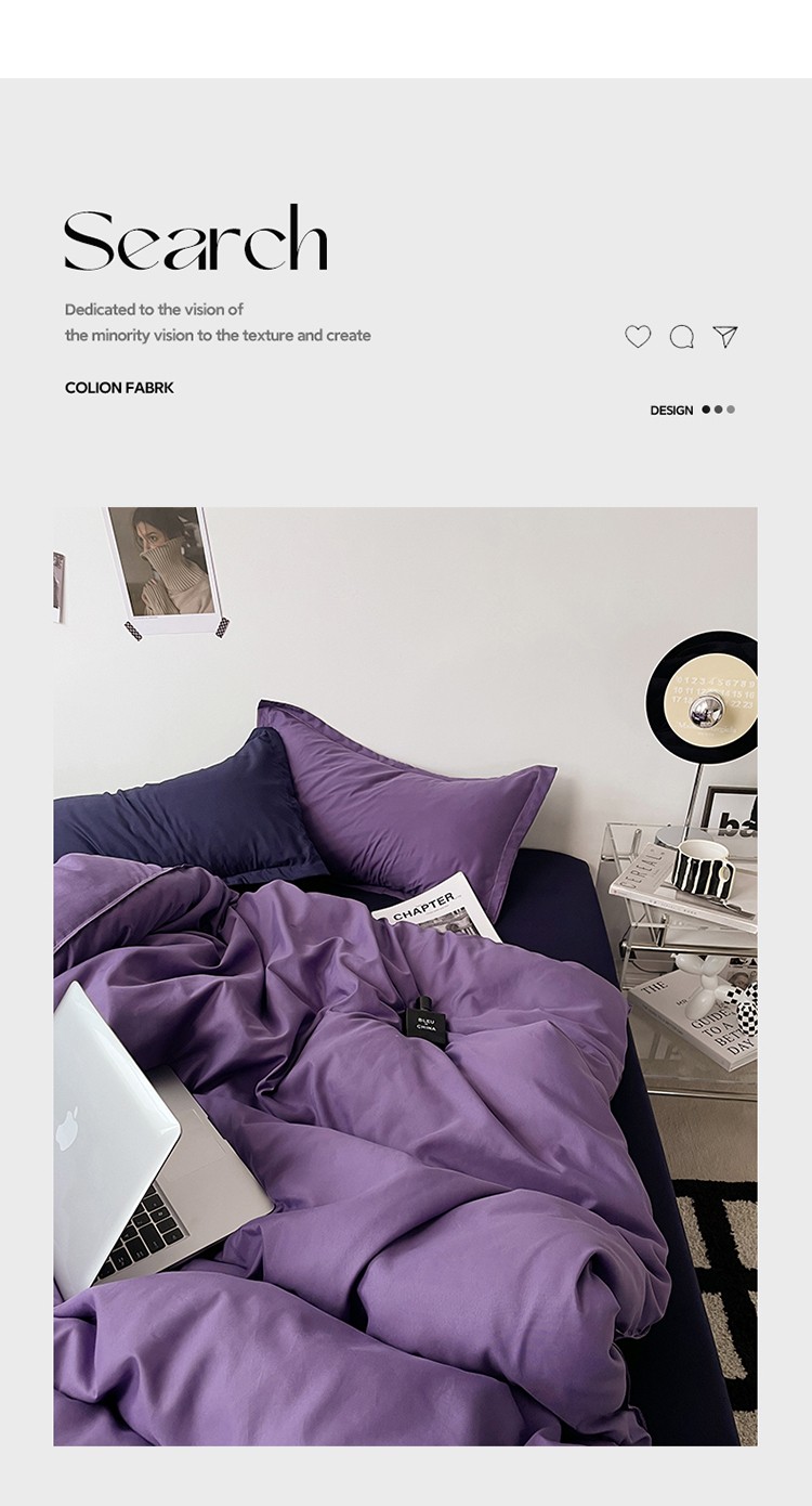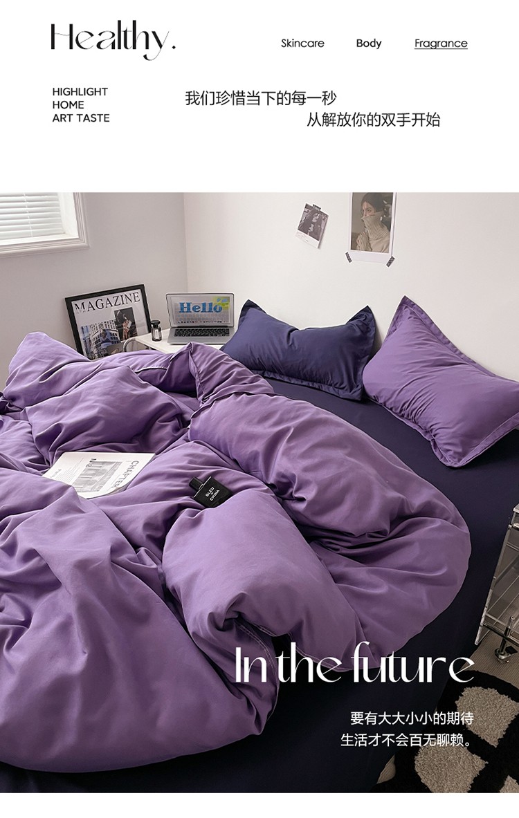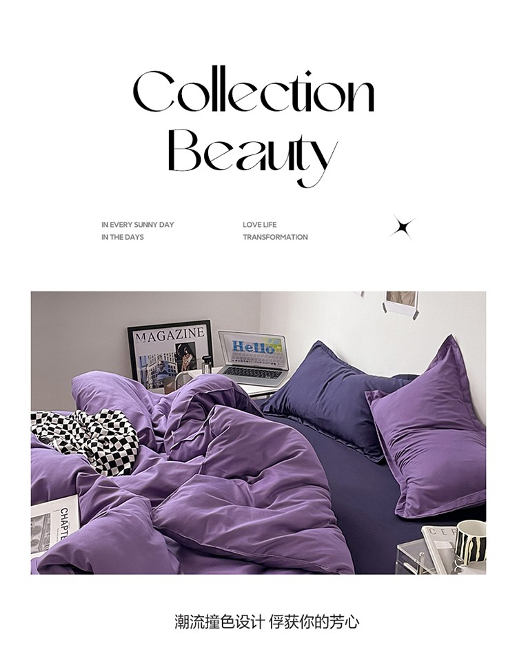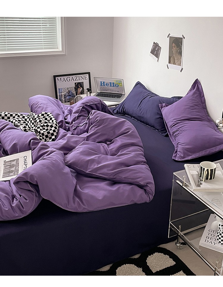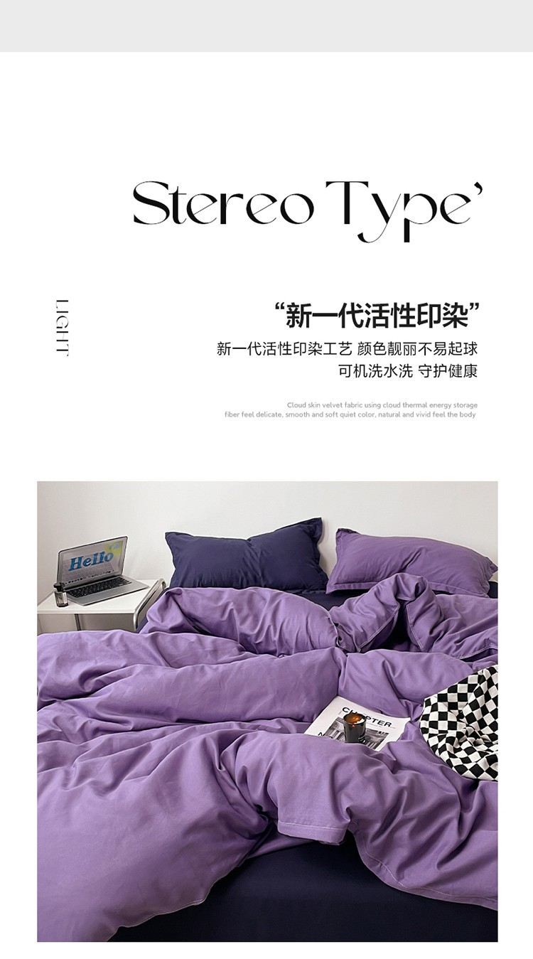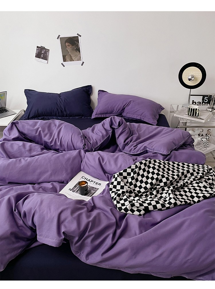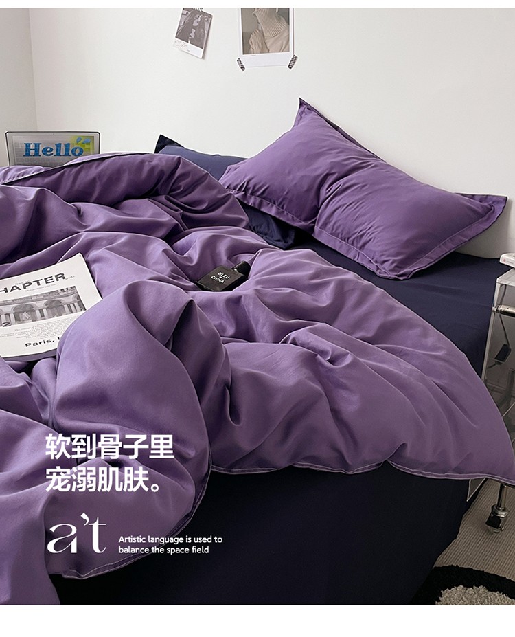 贝拉梦 2023款亲肤棉纯色拼色治 愈系四件套 柔雾紫+深空蓝