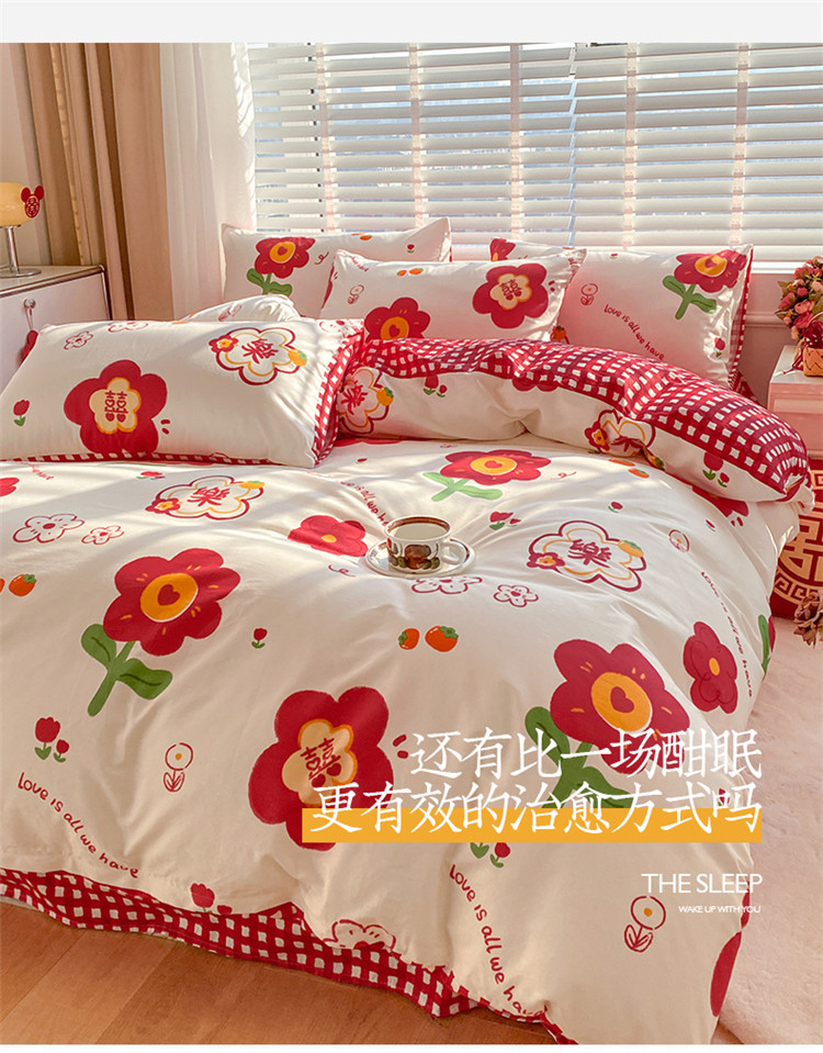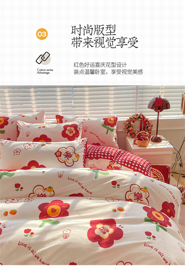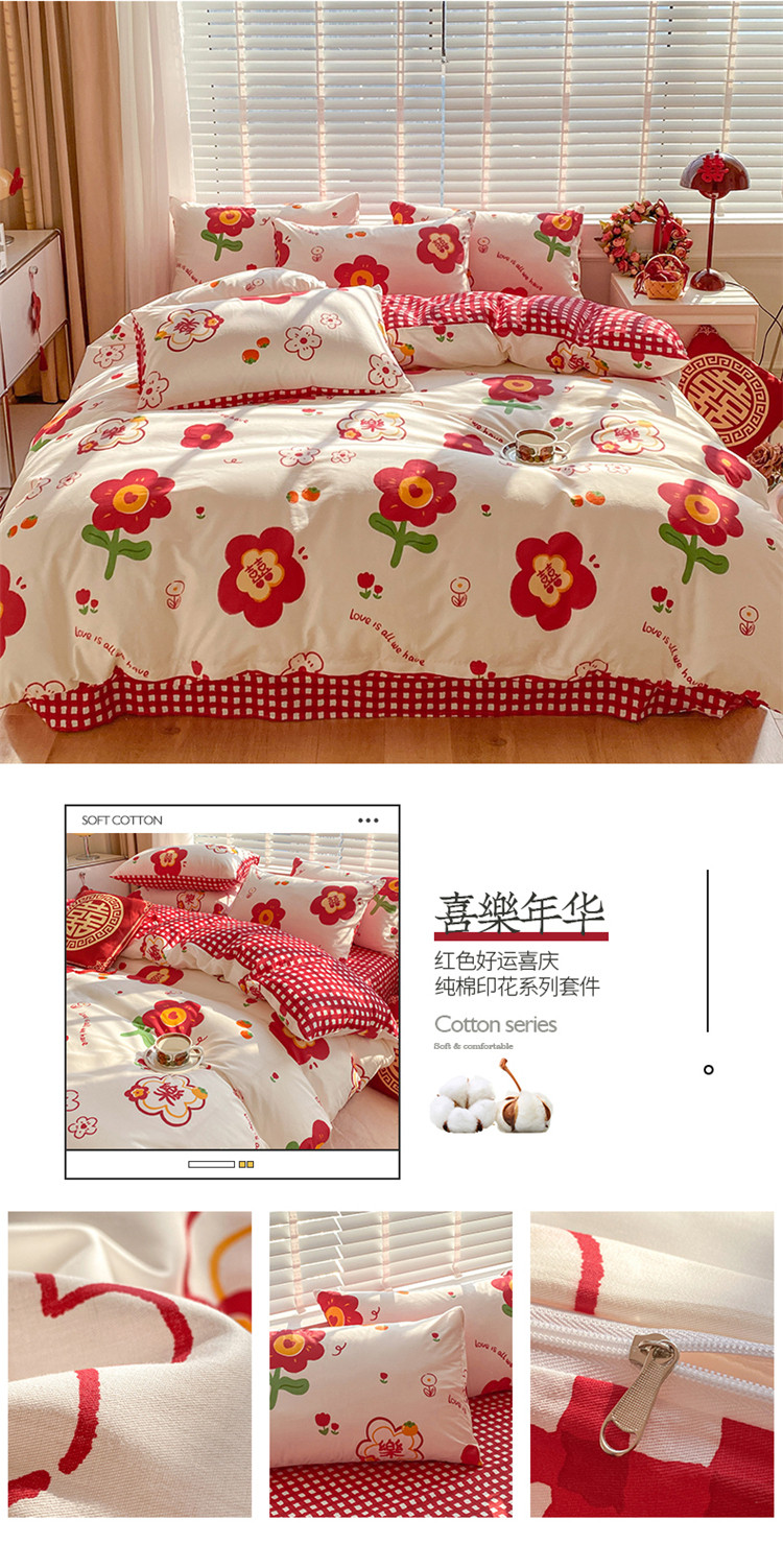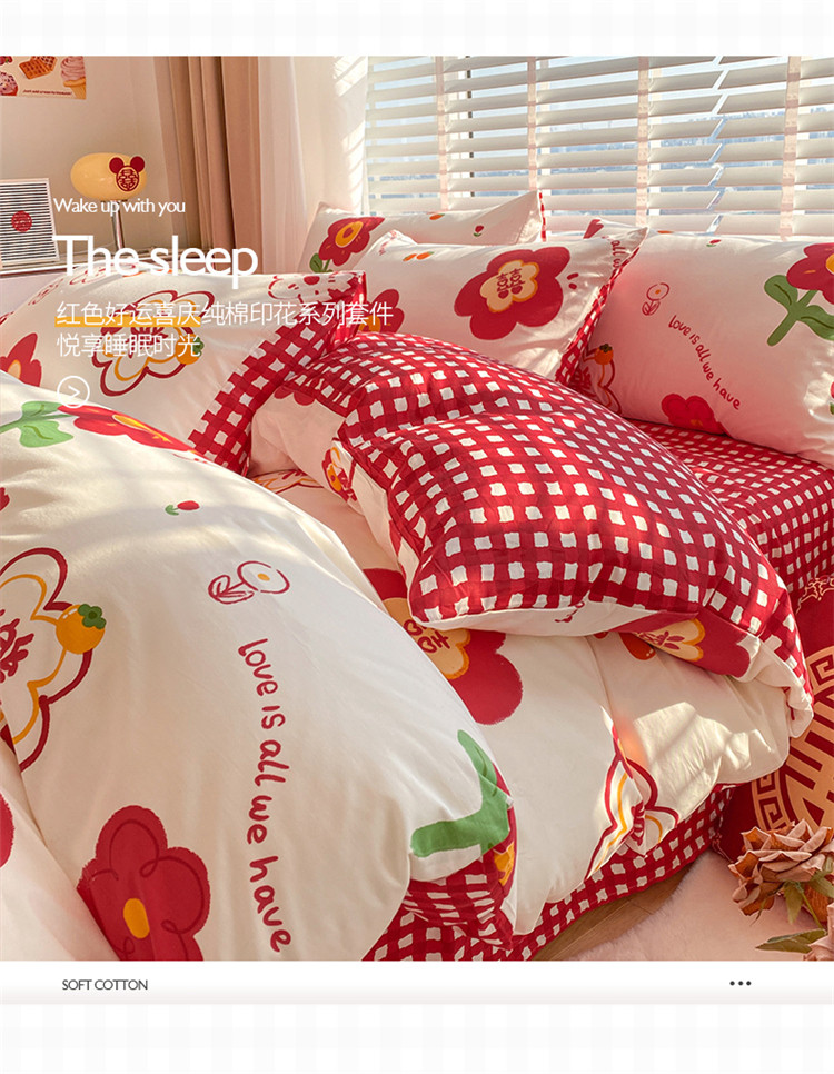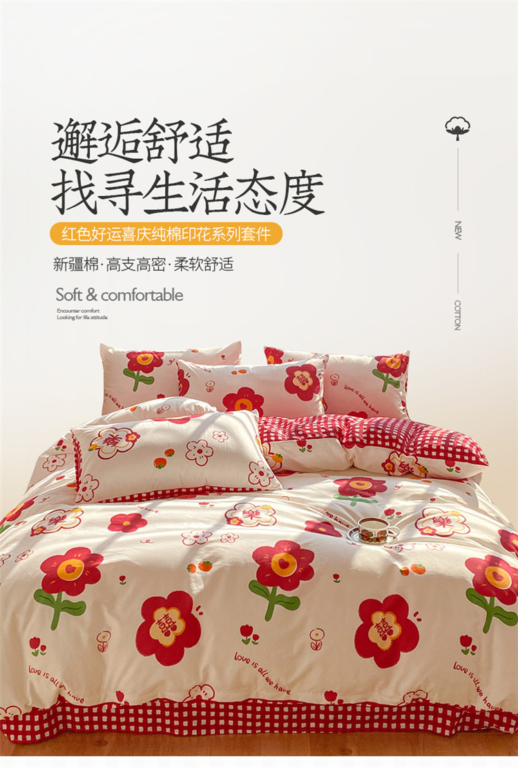 商品名称:桃子家居 2023新款红色好运喜庆纯棉印花系列四件套 喜樂年华