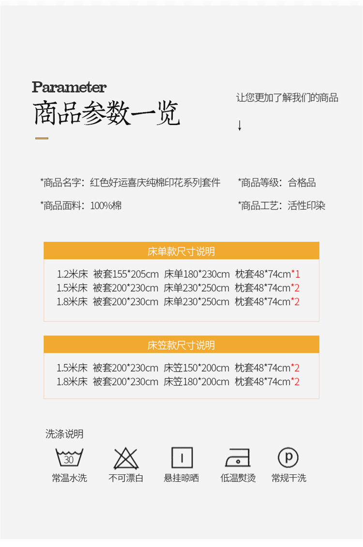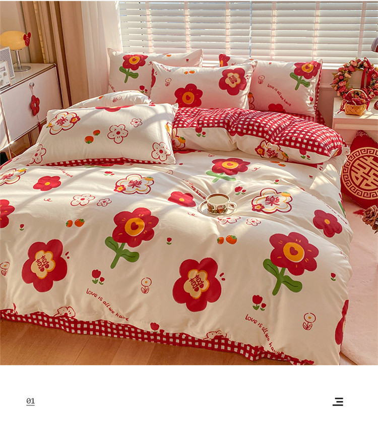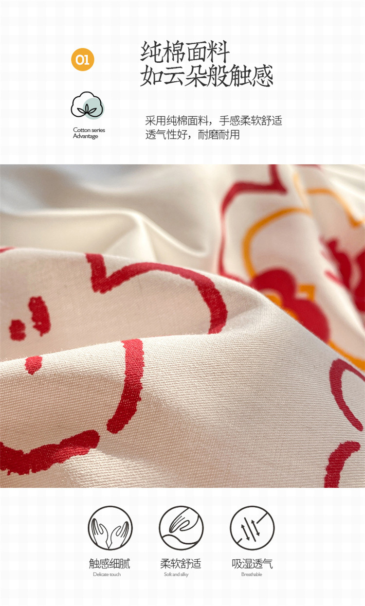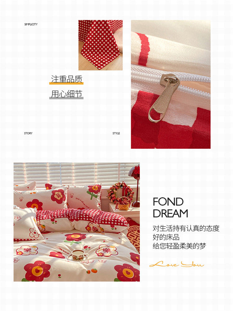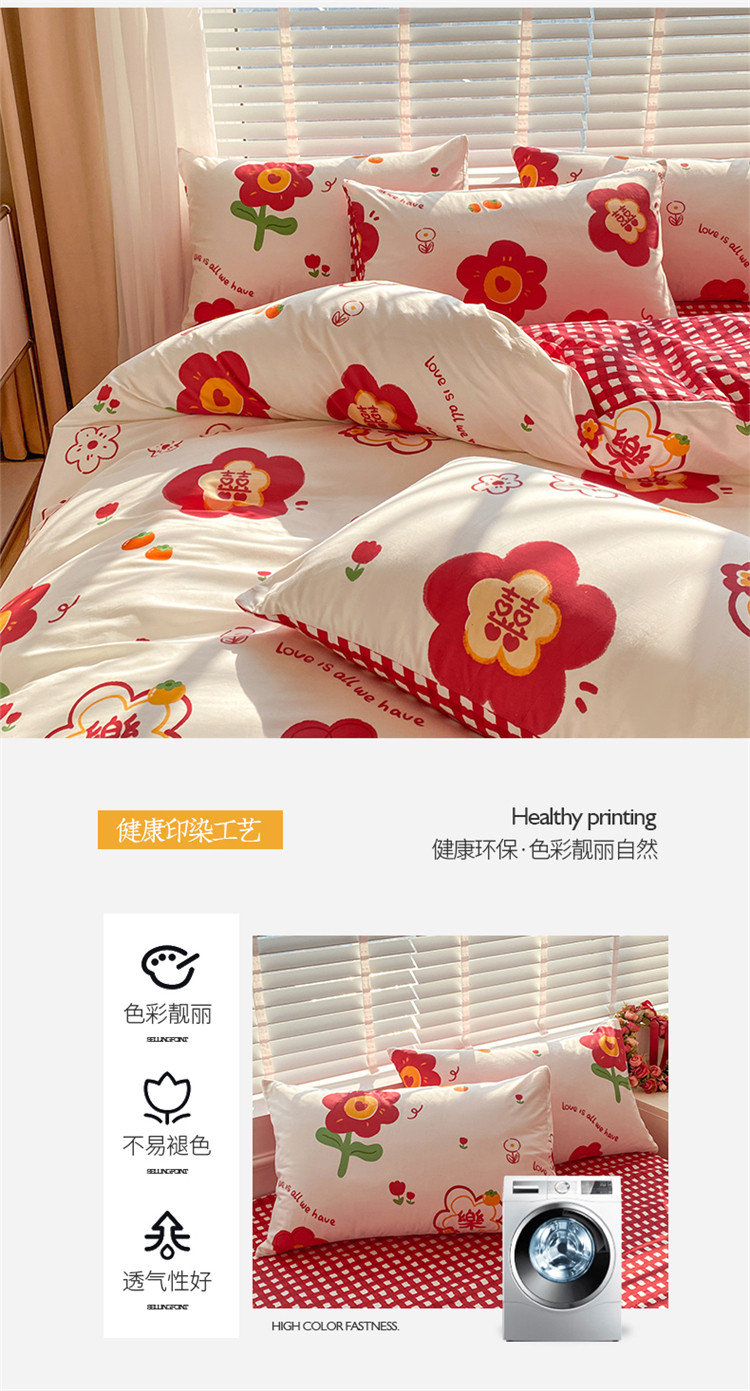 商品名称:桃子家居 2023新款红色好运喜庆纯棉印花系列四件套 喜樂年华