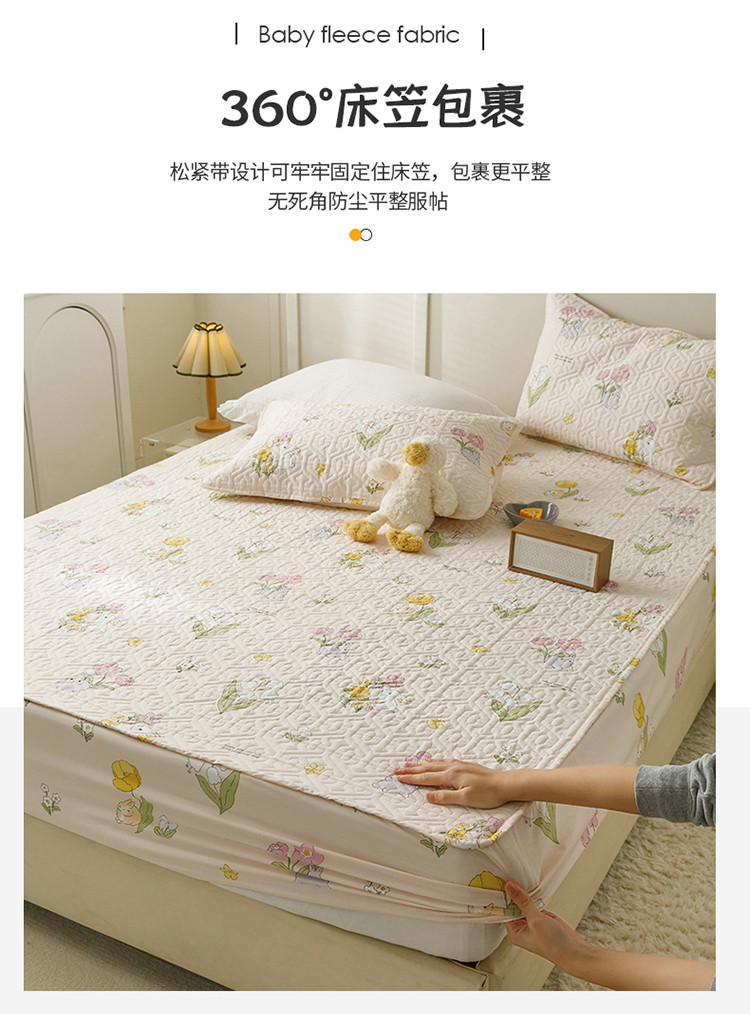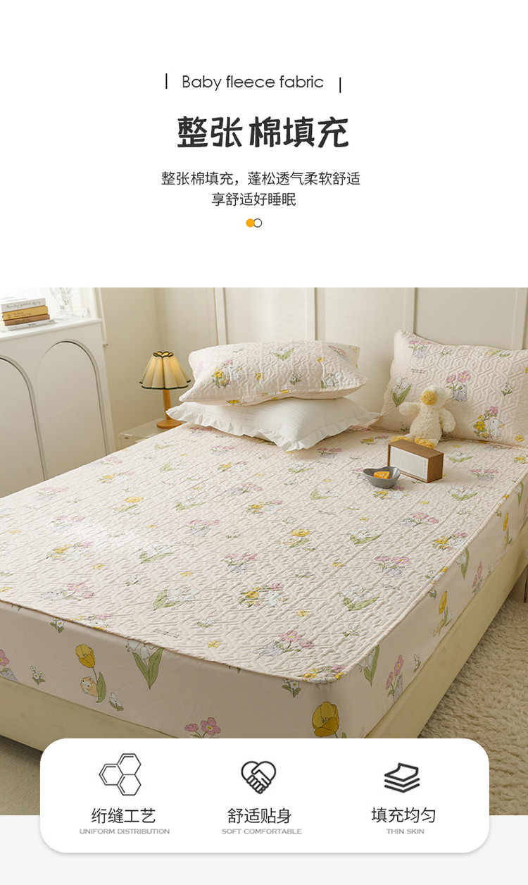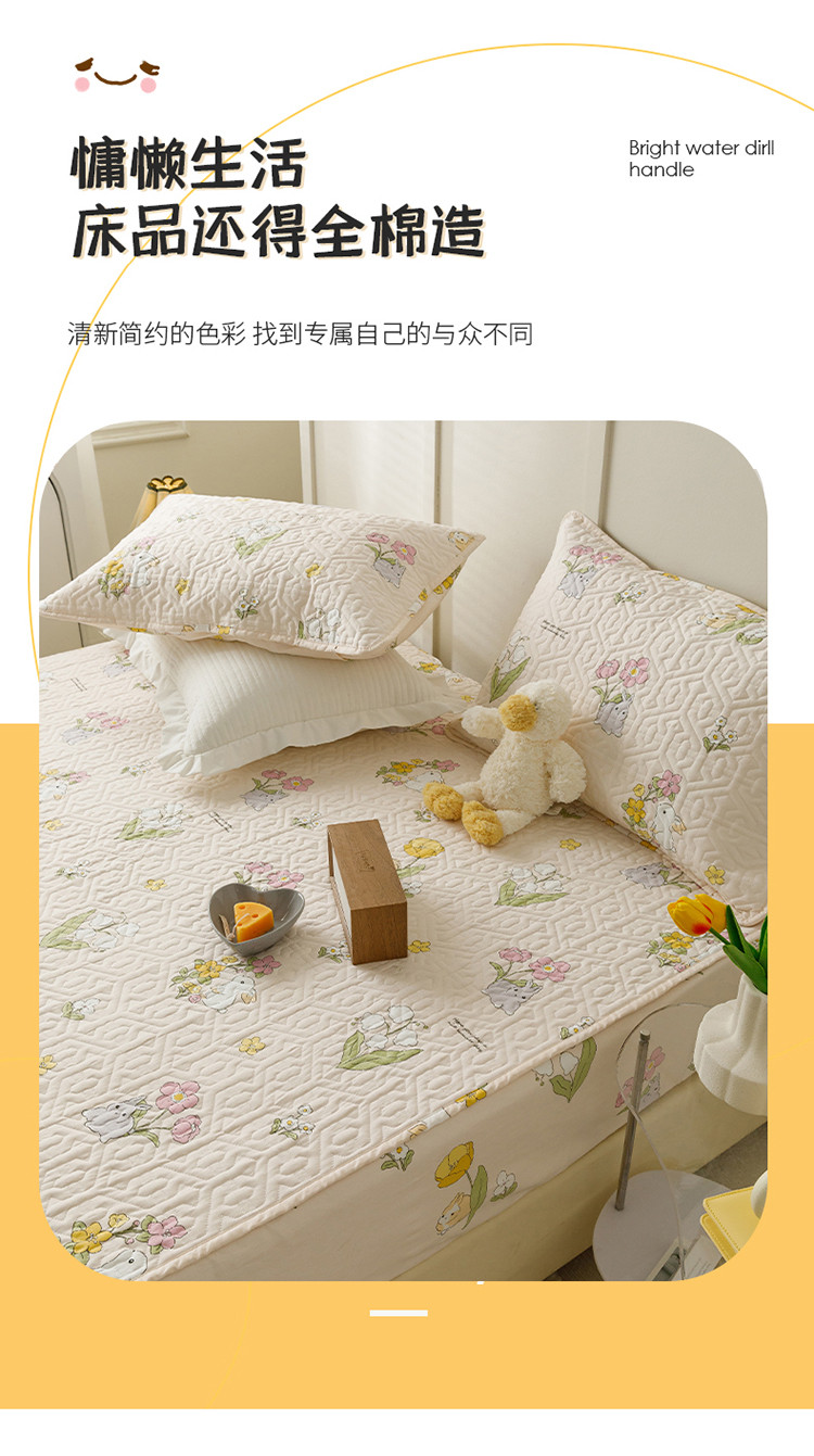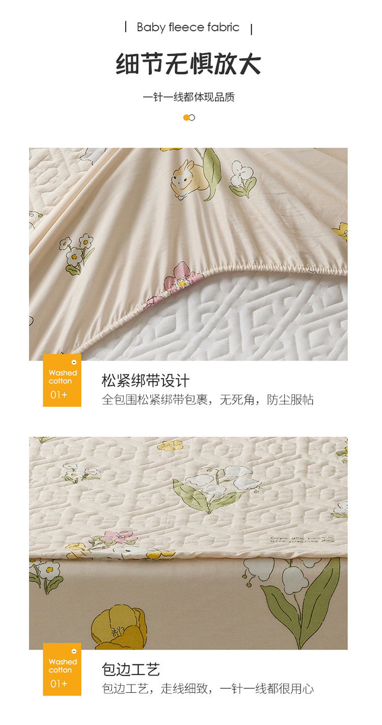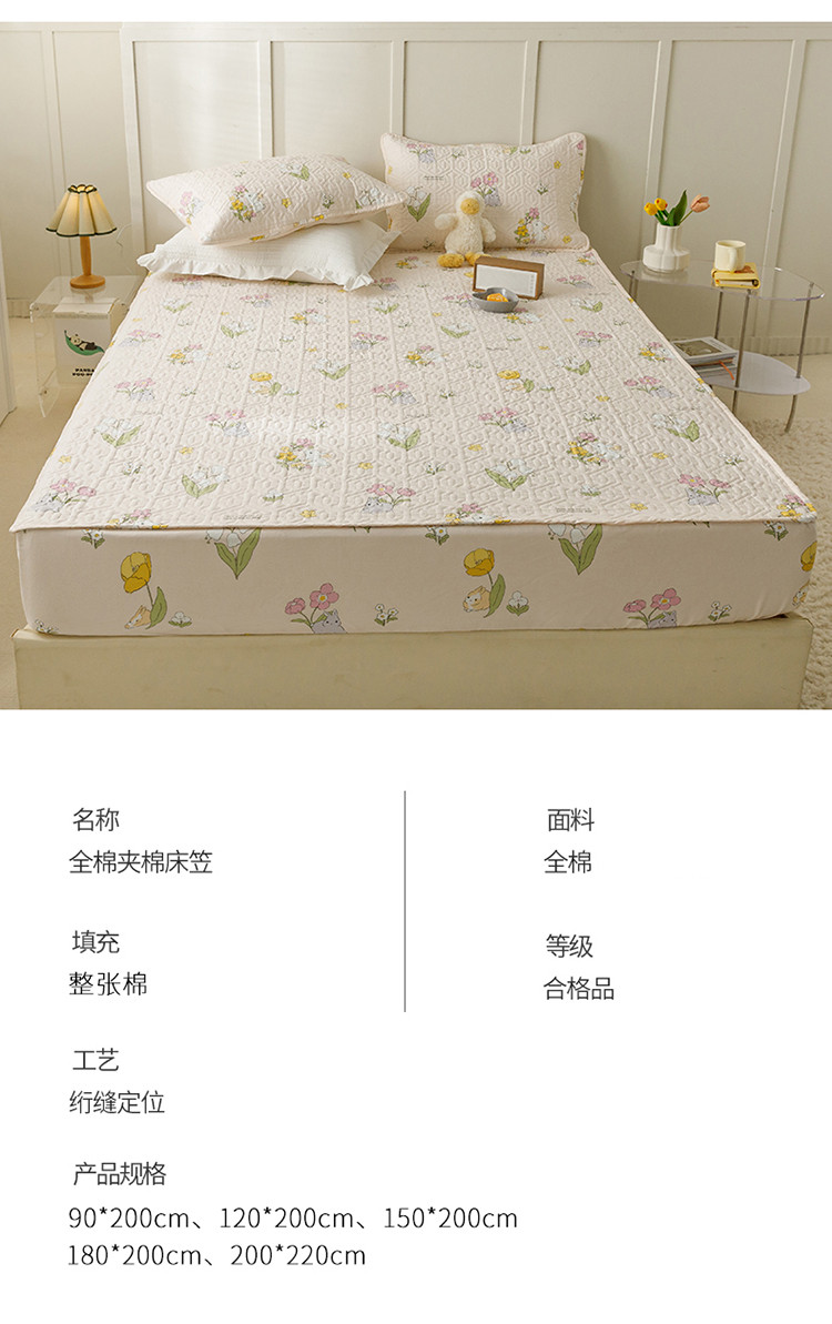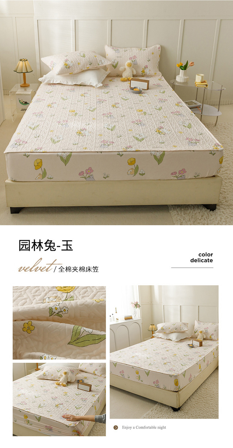• 91家纺网 家纺一手货源 找家纺 忘忧草 2023新款全棉夹棉床笠纯棉印花小清新花卉系列 园林兔-玉