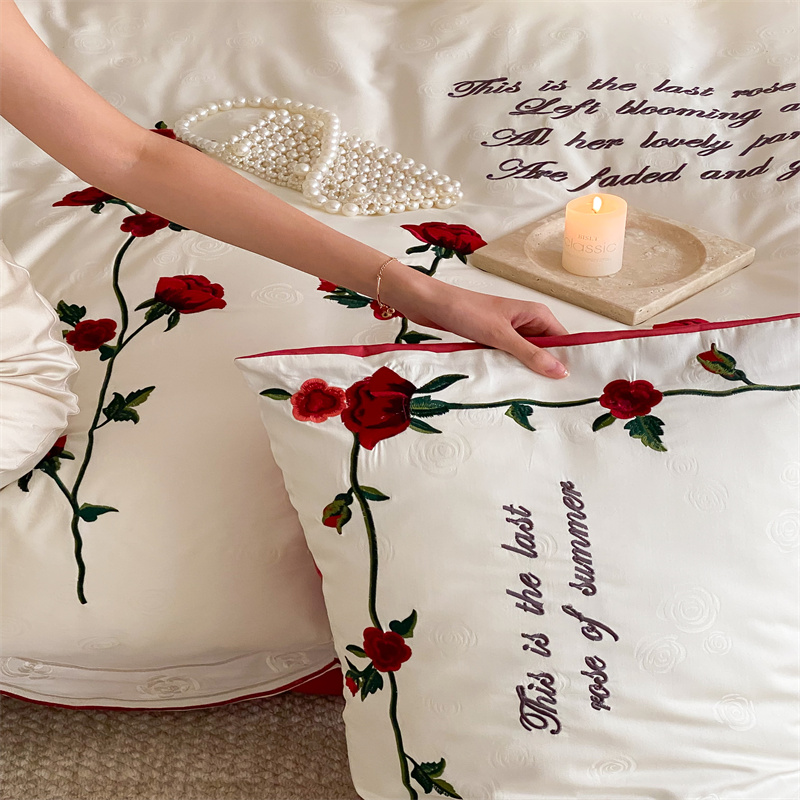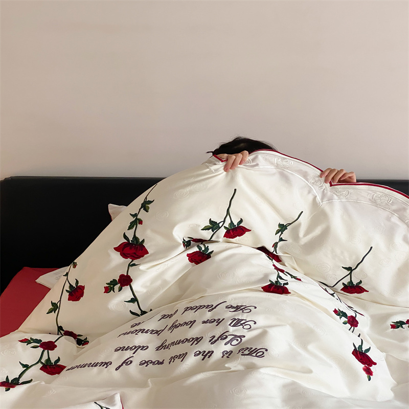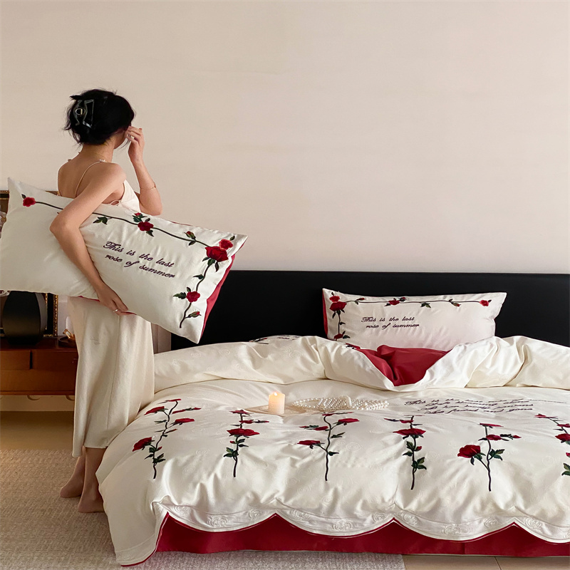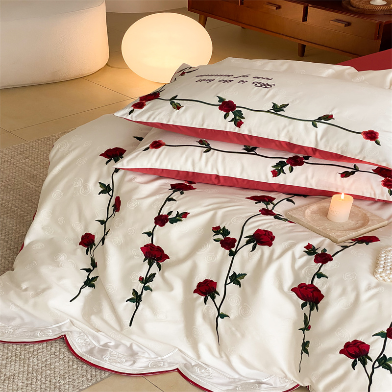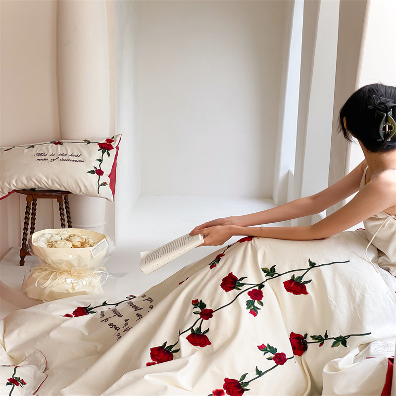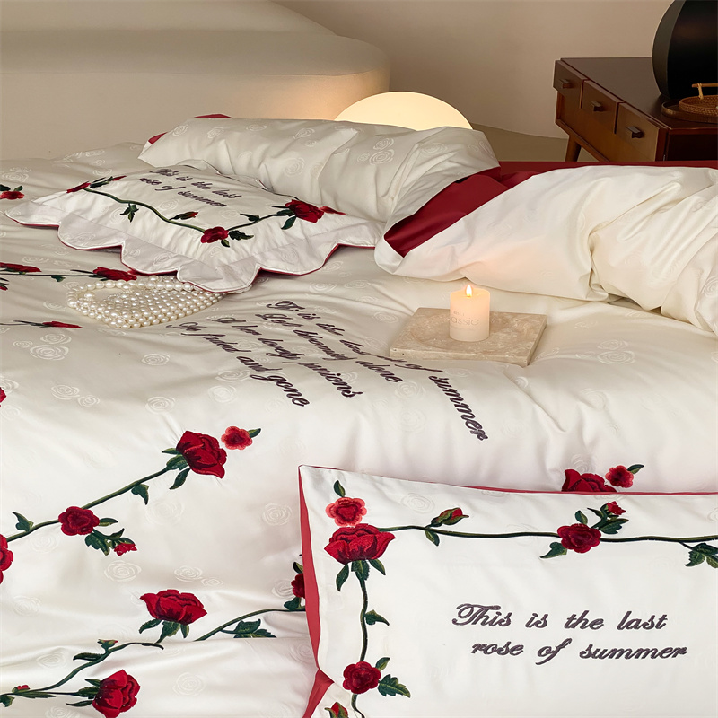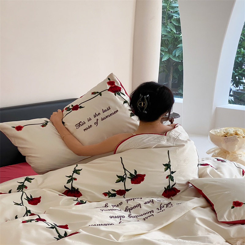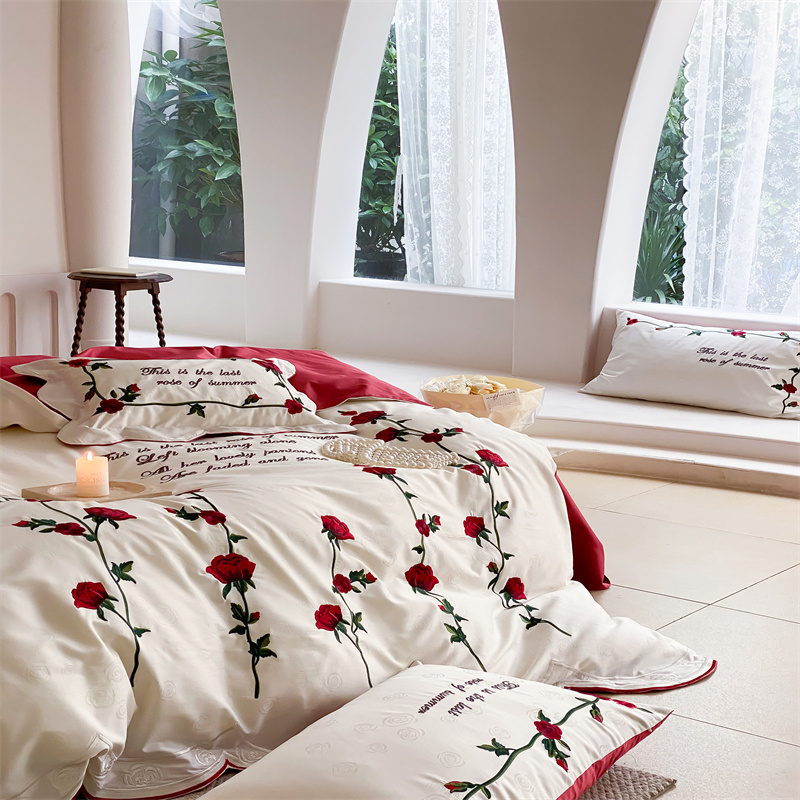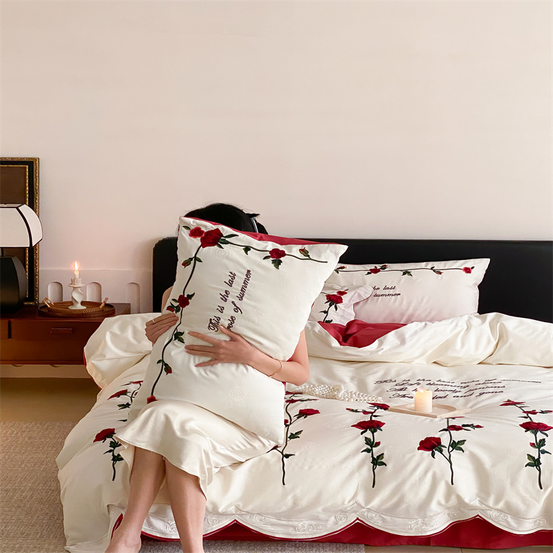 商品名称:(总)星野 2023新款100支双股澳棉提花四件套-法式玫瑰