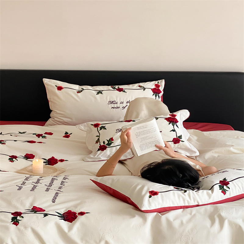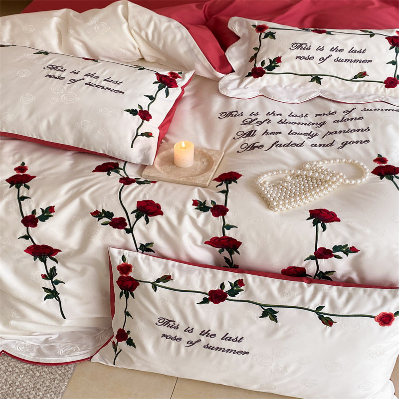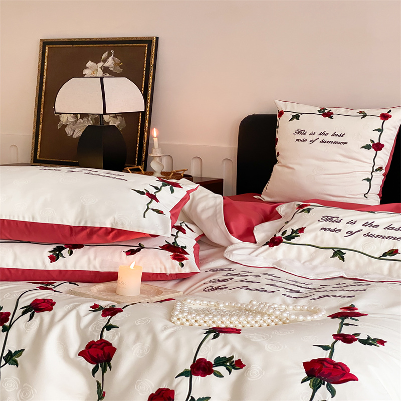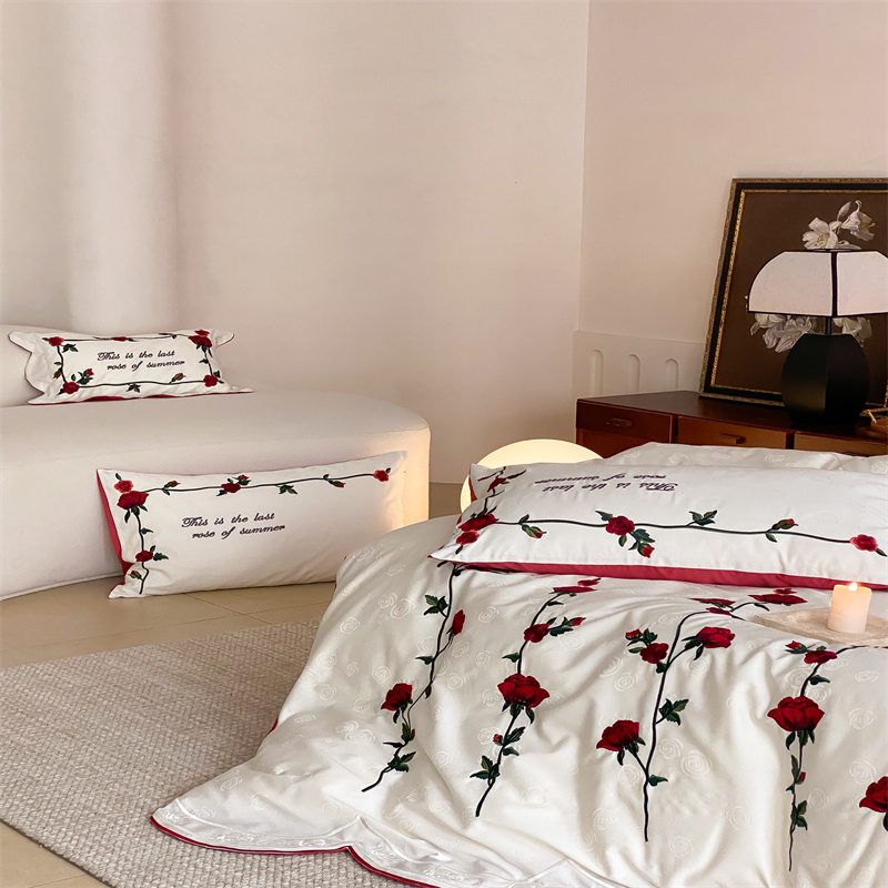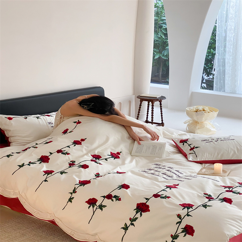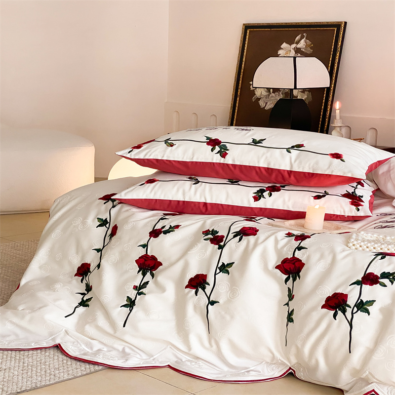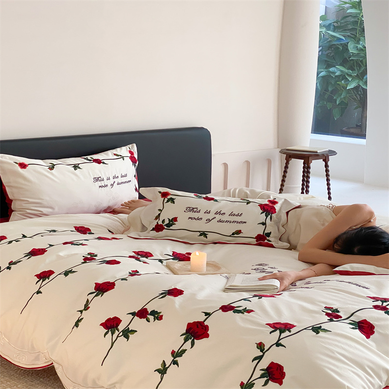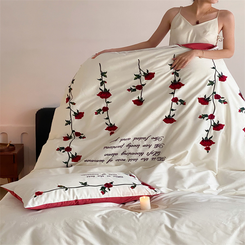 商品名称:(总)星野 2023新款100支双股澳棉提花四件套-法式玫瑰