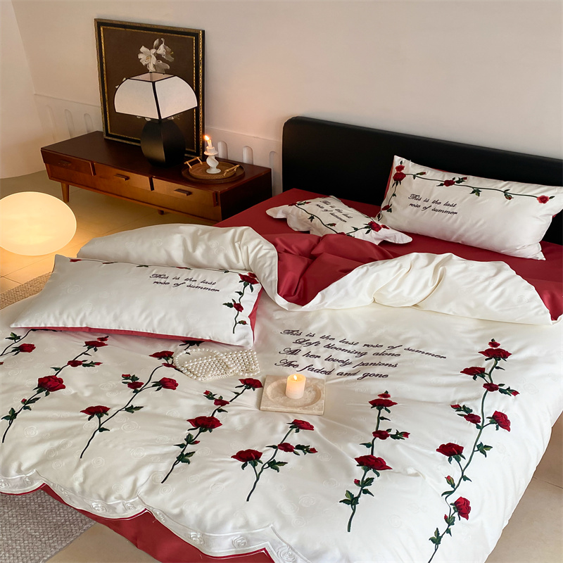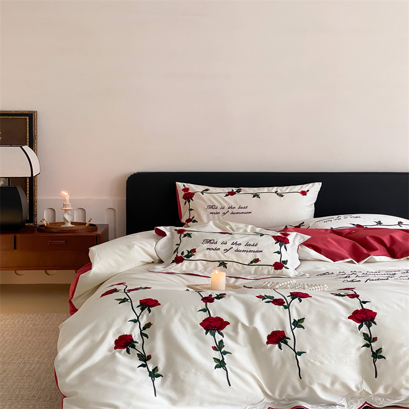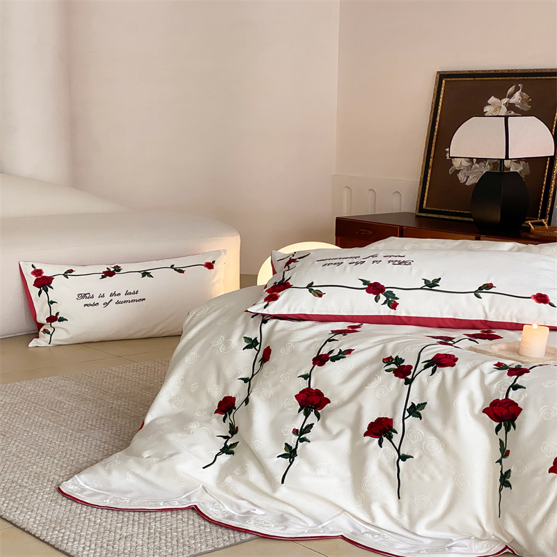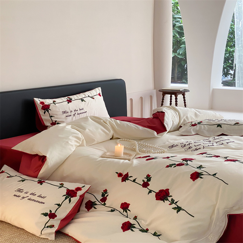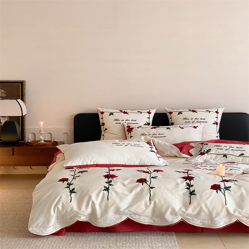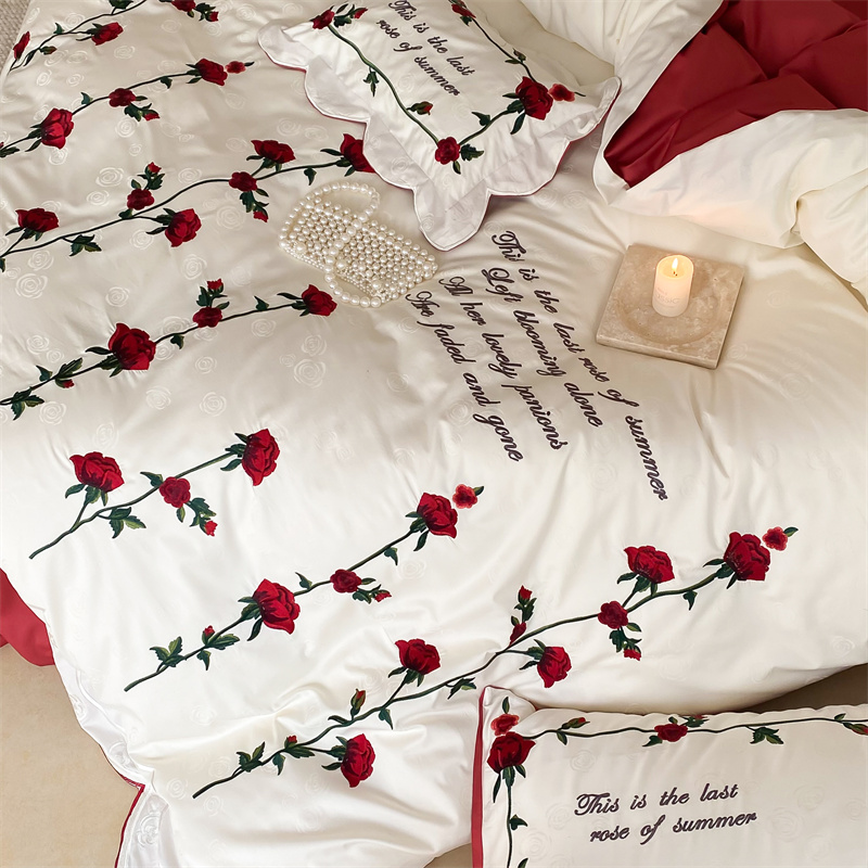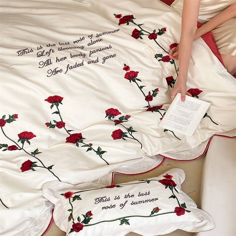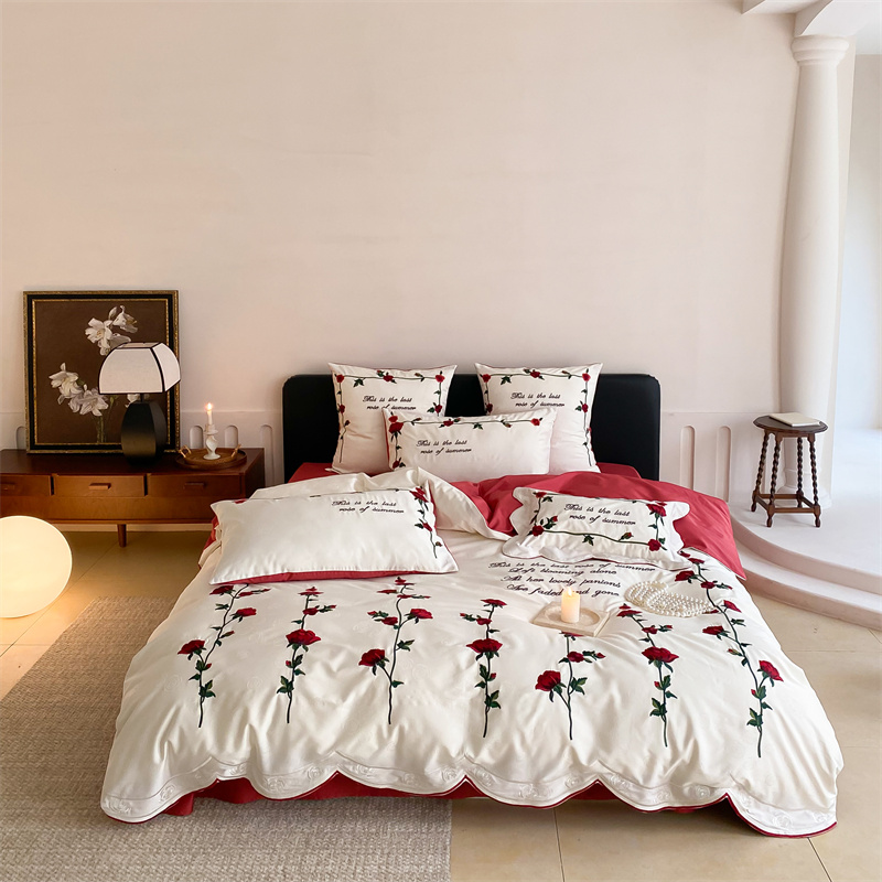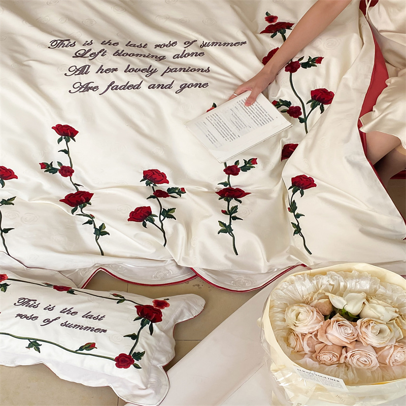 商品名称:(总)星野 2023新款100支双股澳棉提花四件套-法式玫瑰