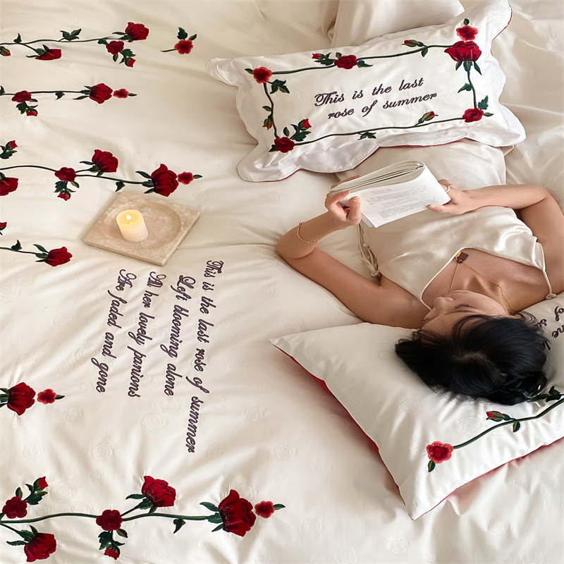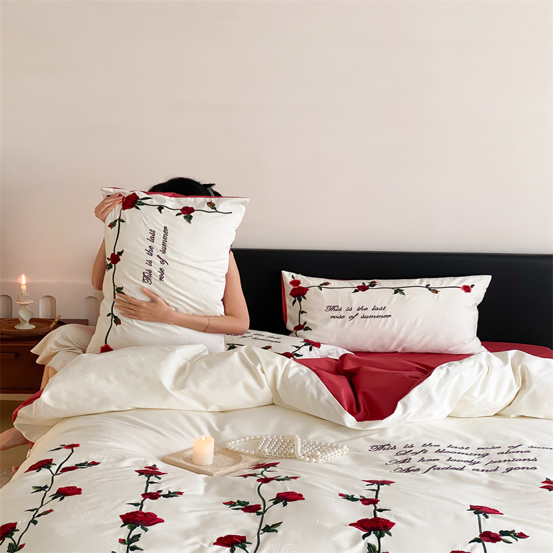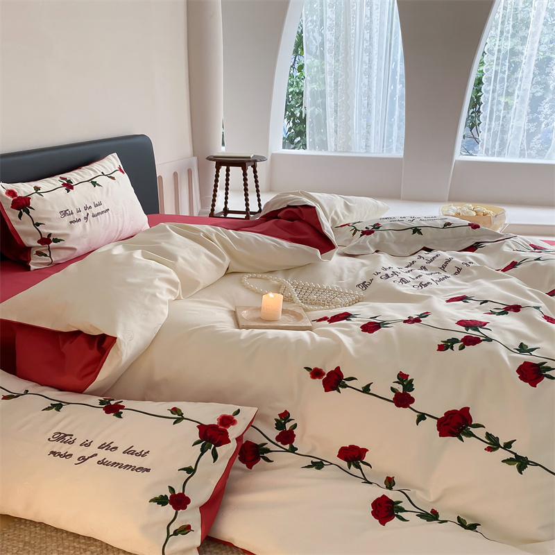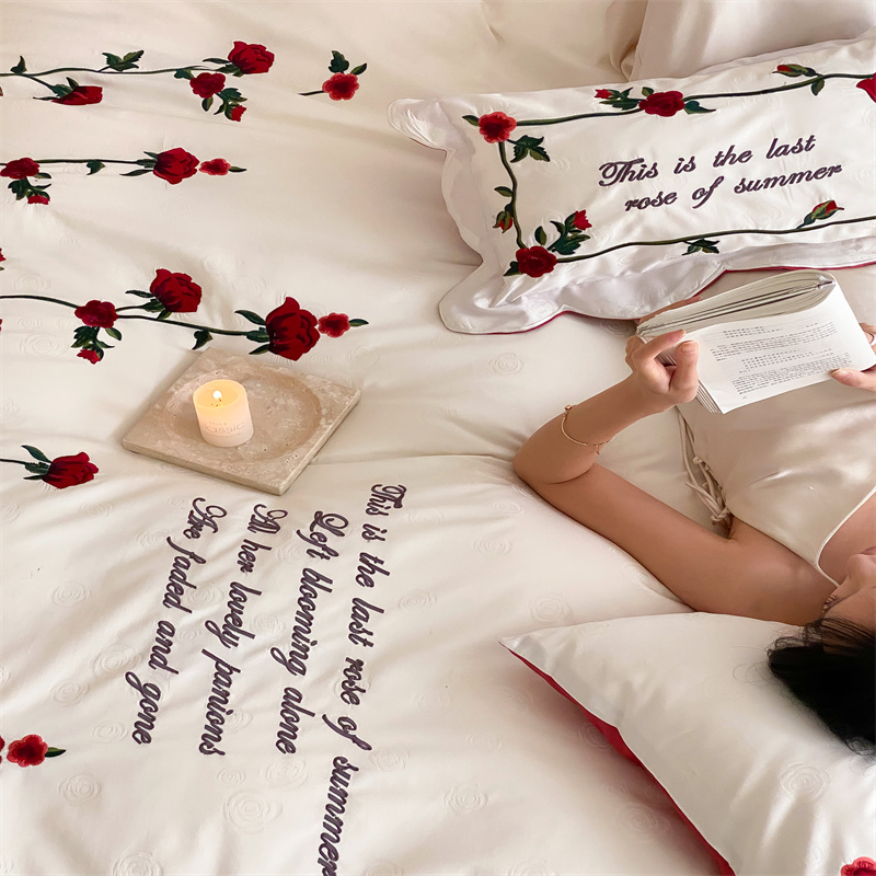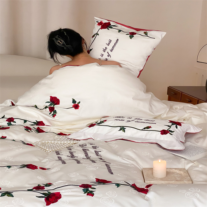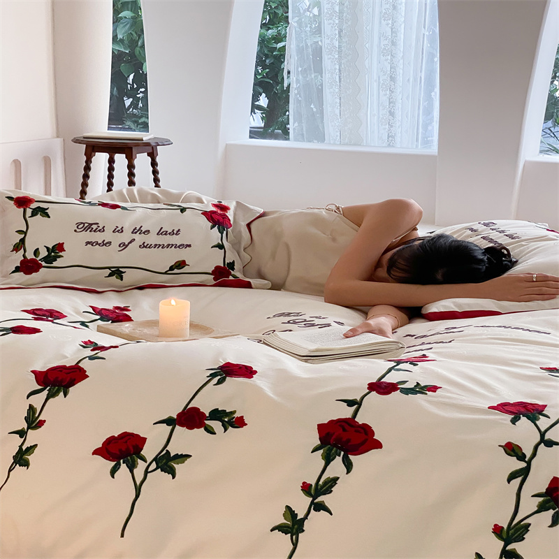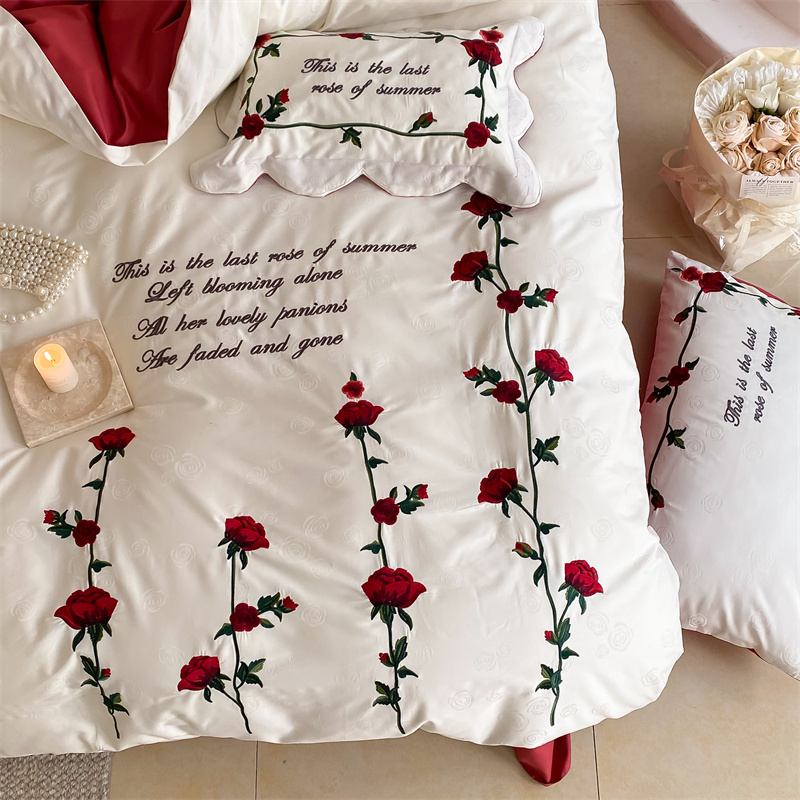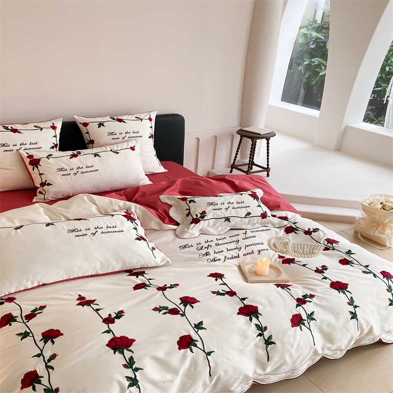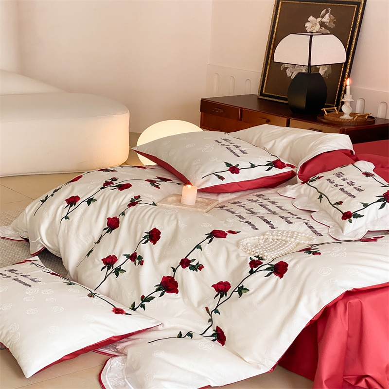 商品名称:(总)星野 2023新款100支双股澳棉提花四件套-法式玫瑰
