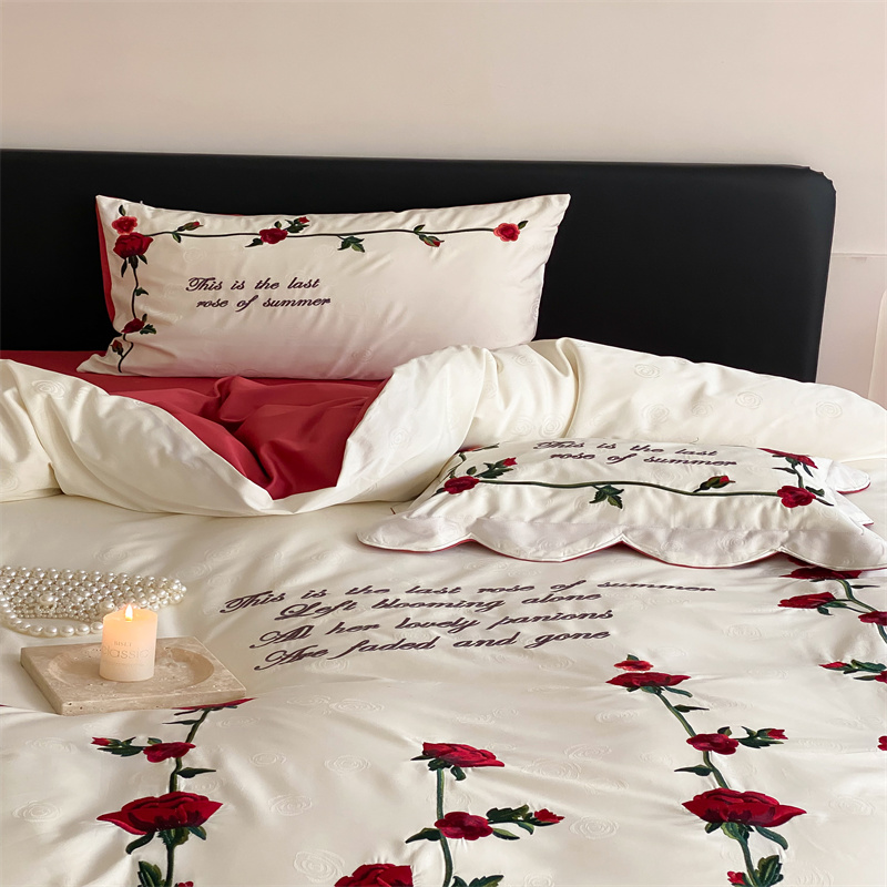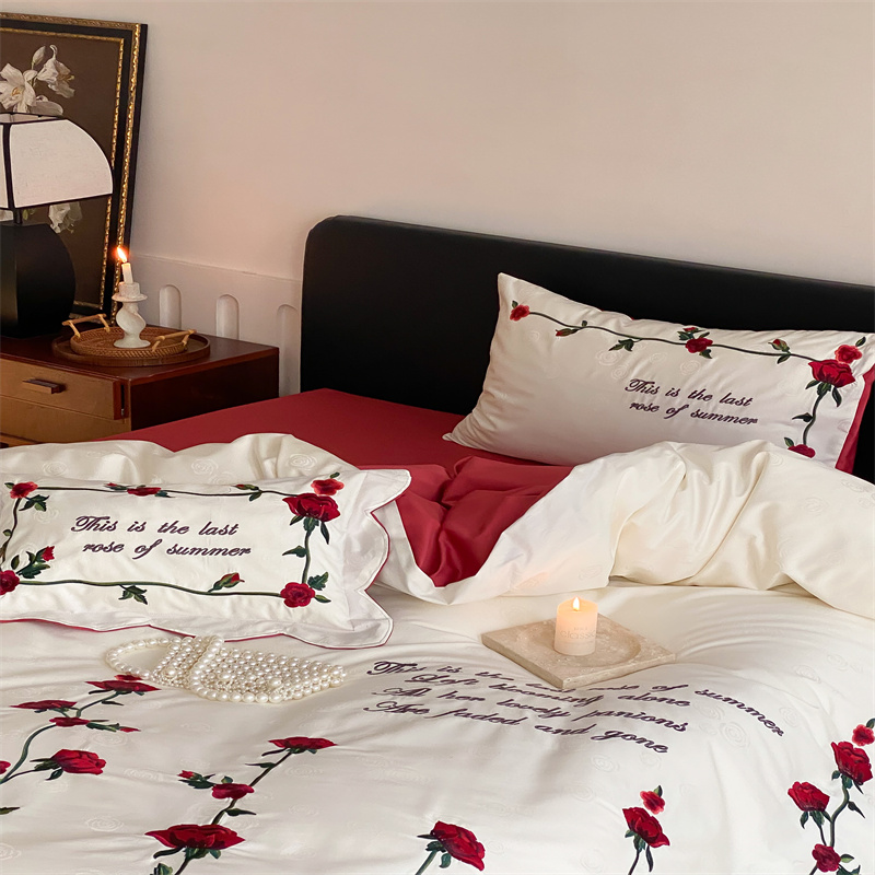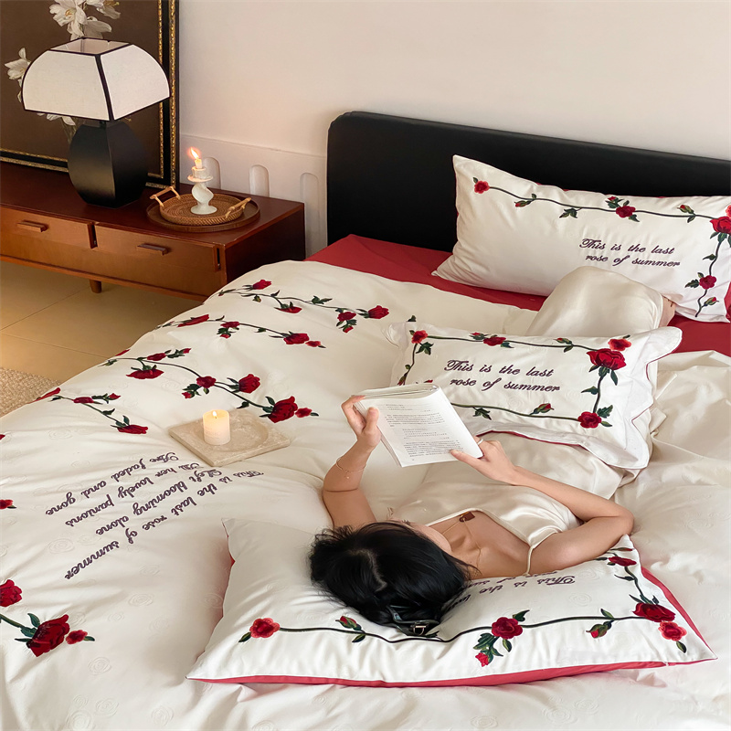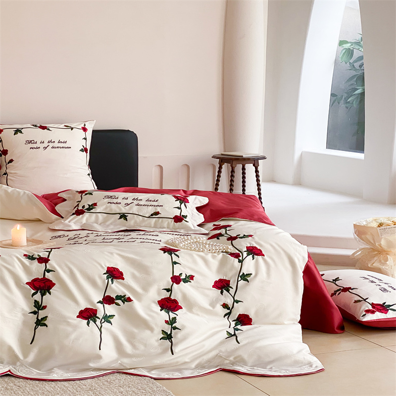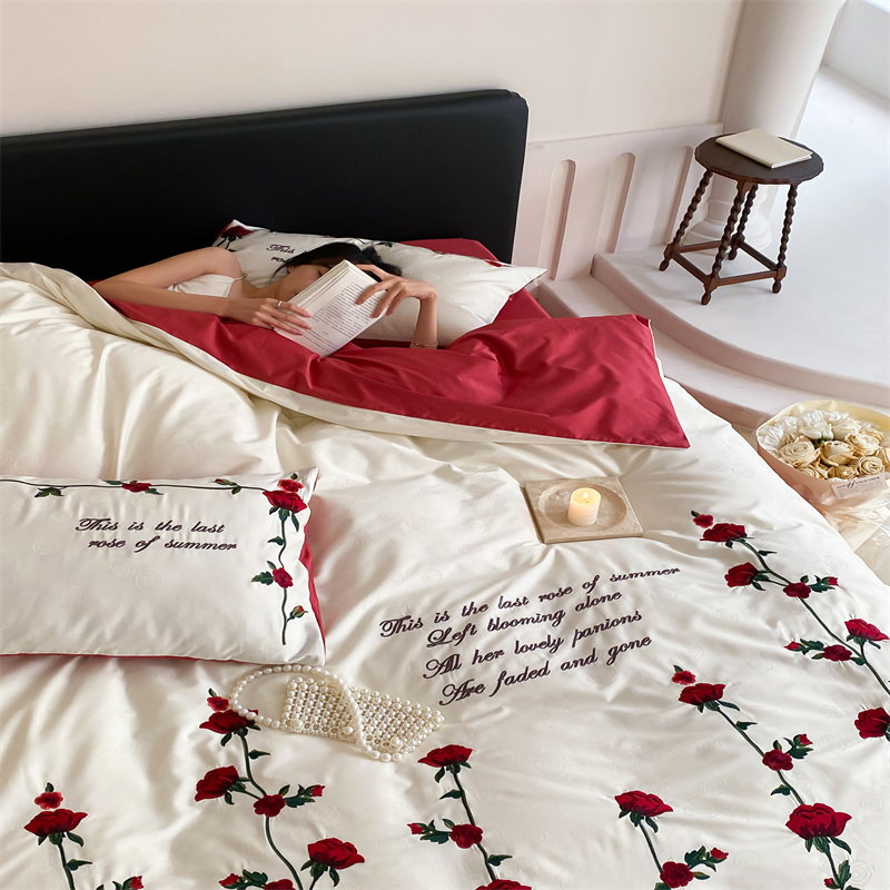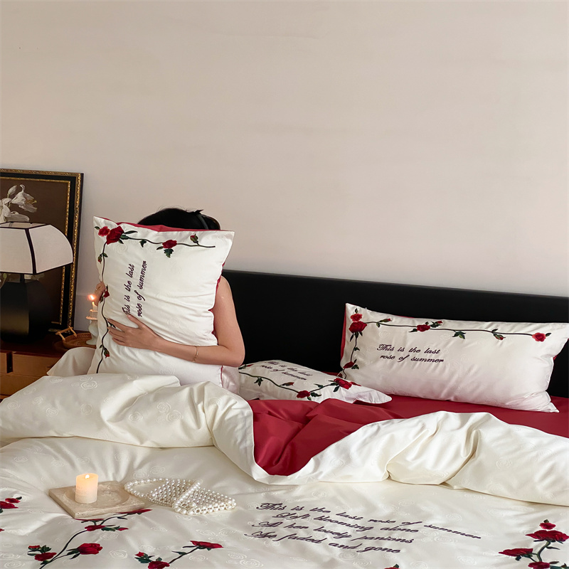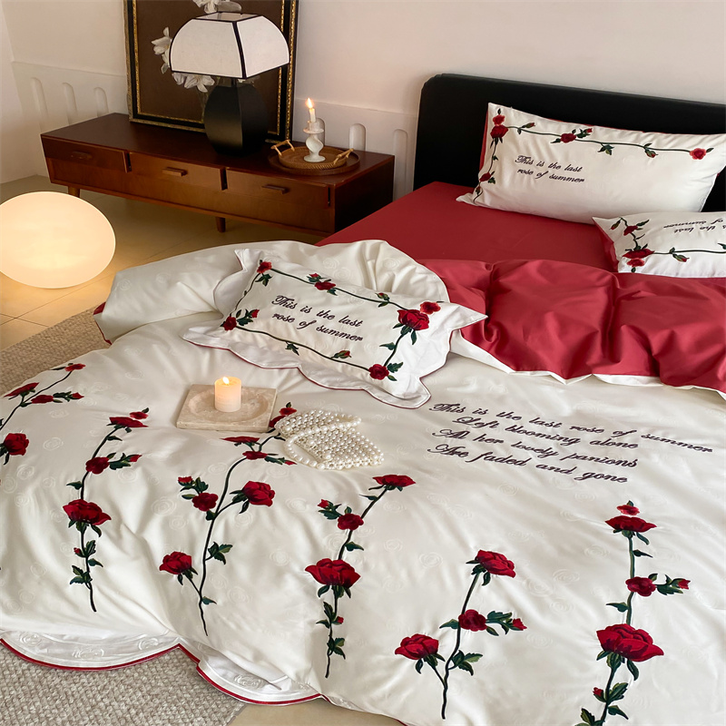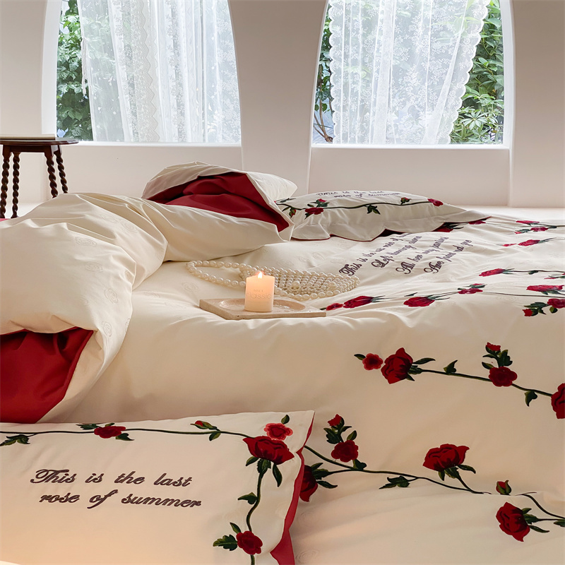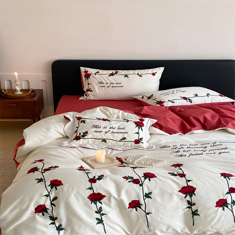 商品名称:(总)星野 2023新款100支双股澳棉提花四件套-法式玫瑰