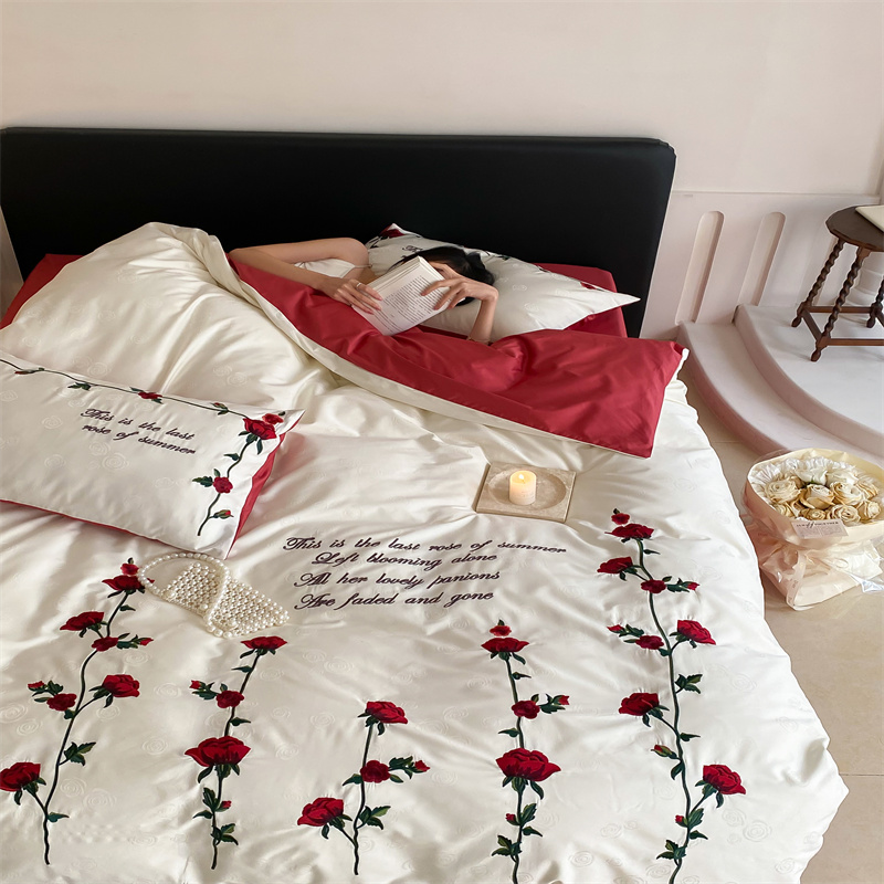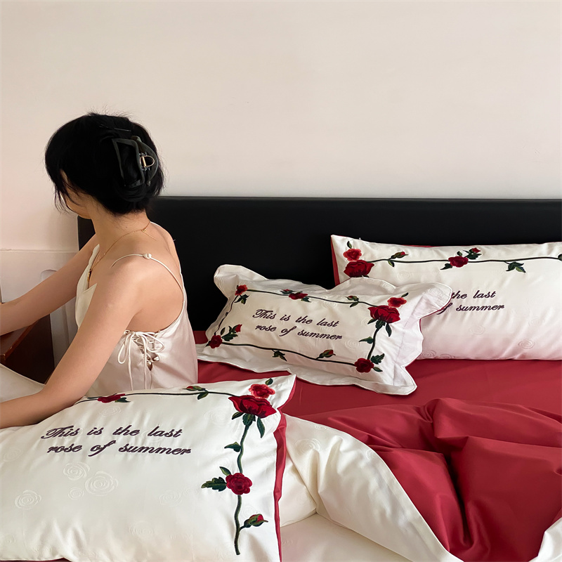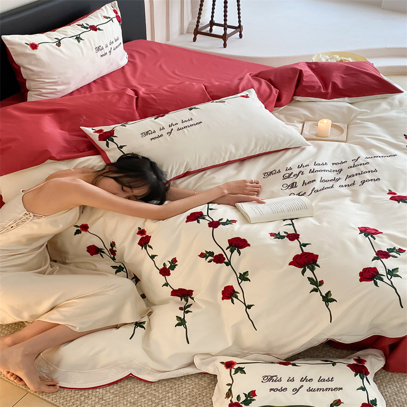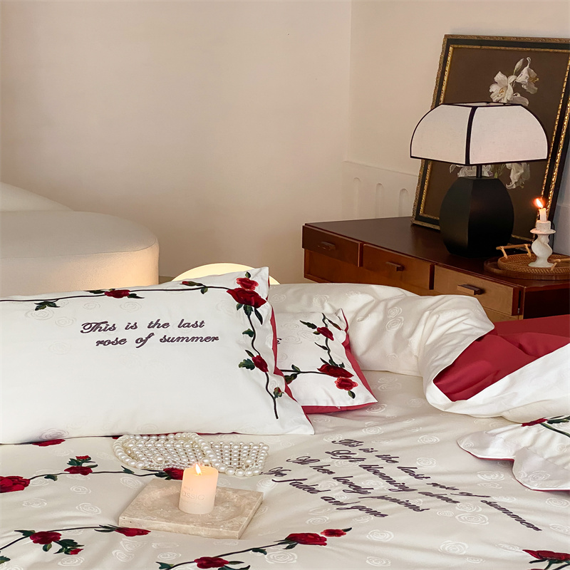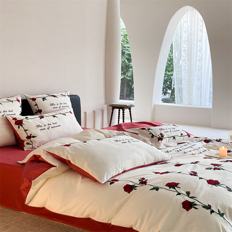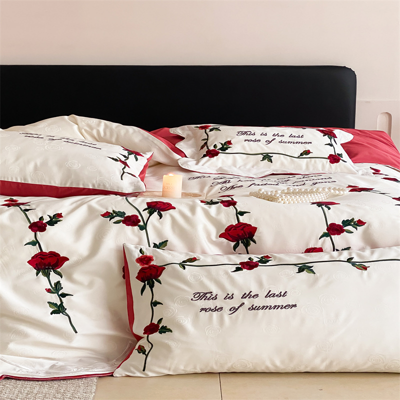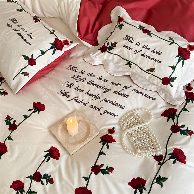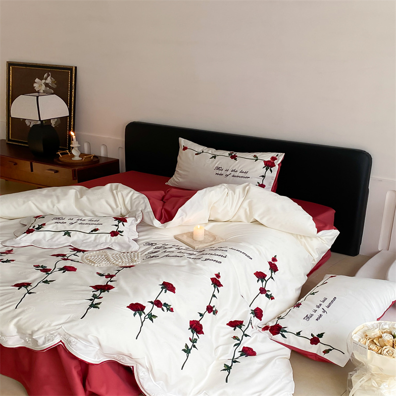 商品名称:(总)星野 2023新款100支双股澳棉提花四件套-法式玫瑰