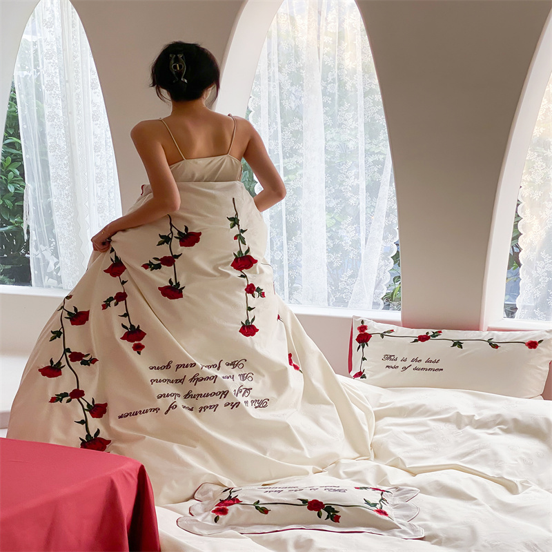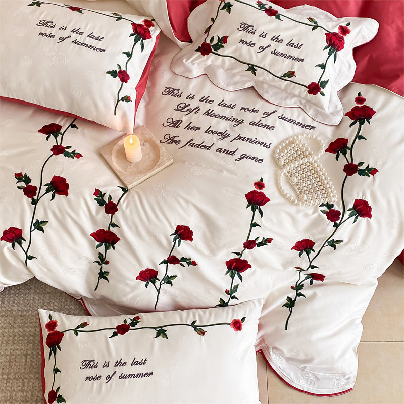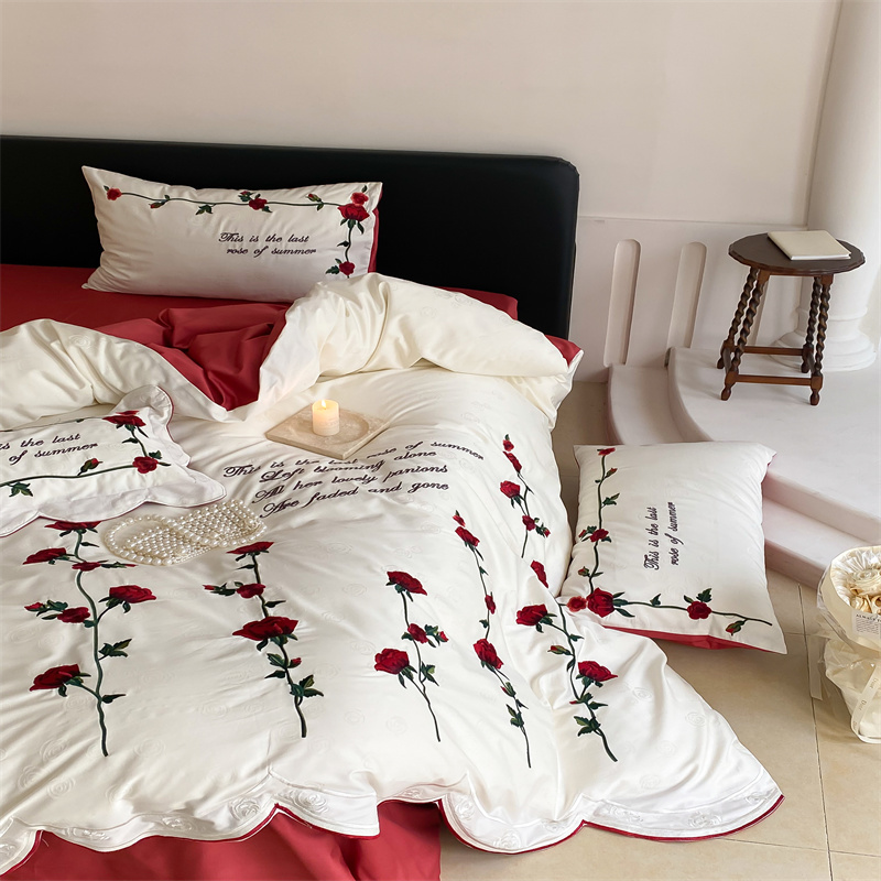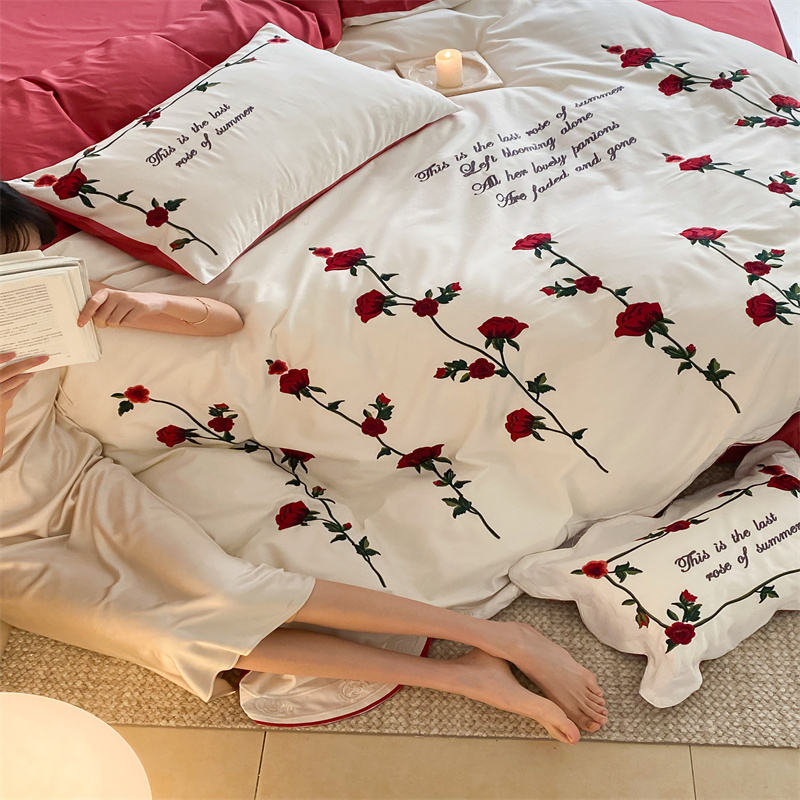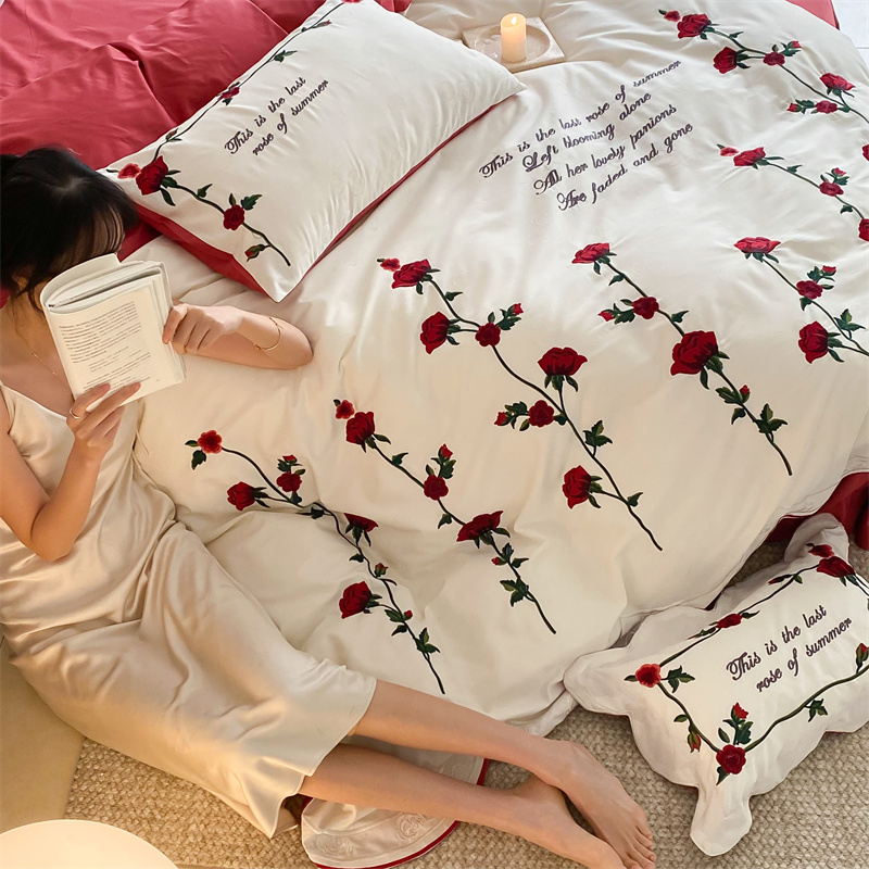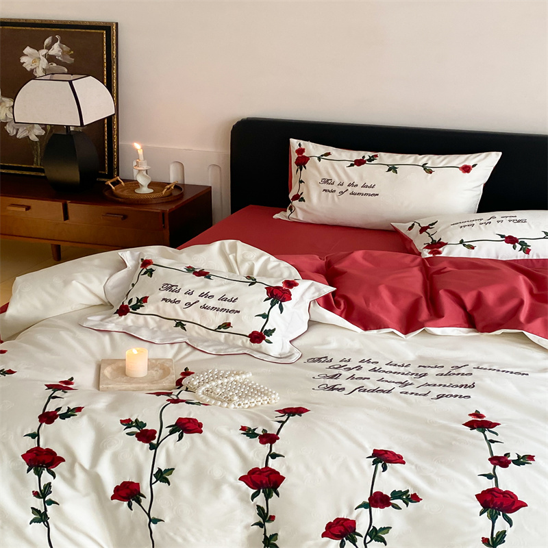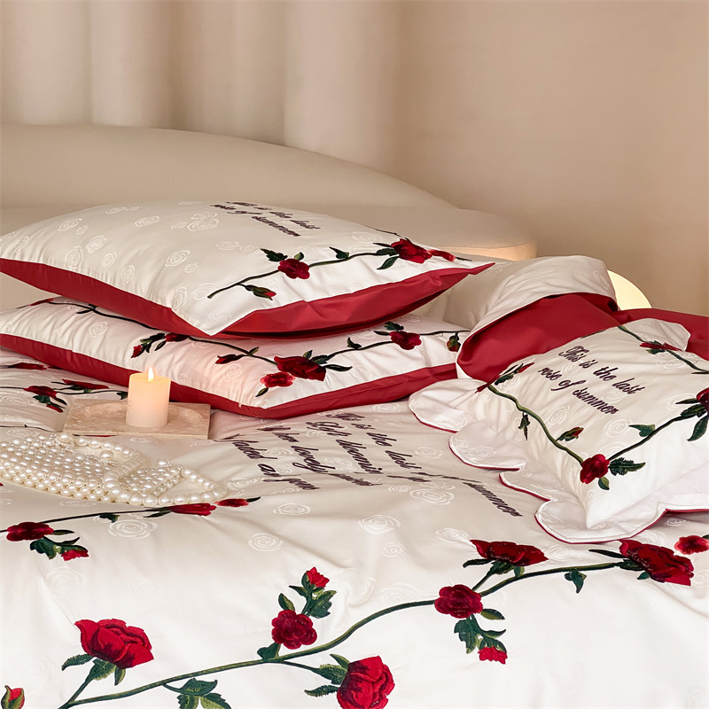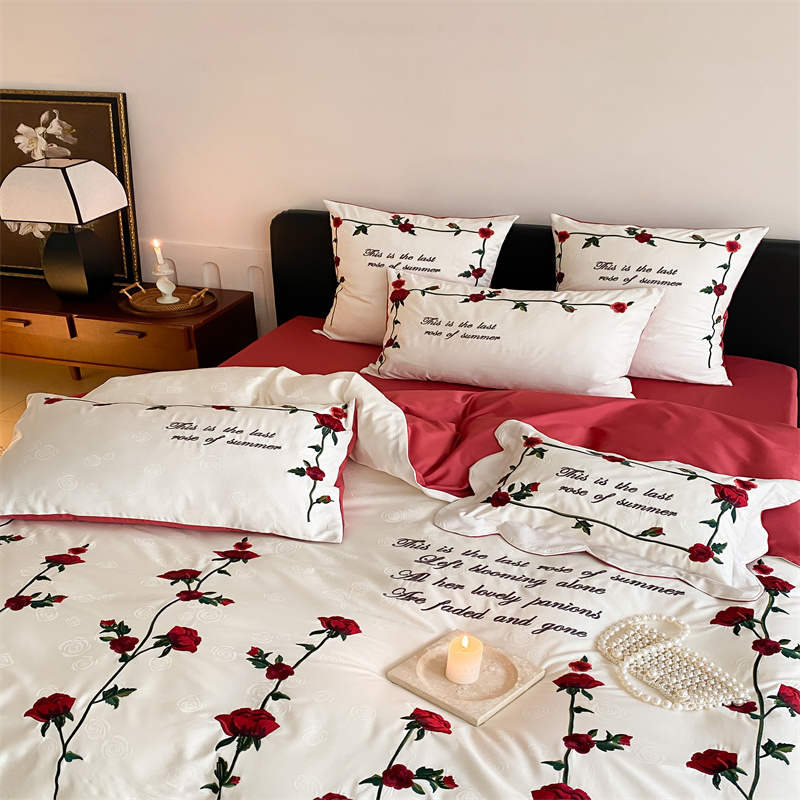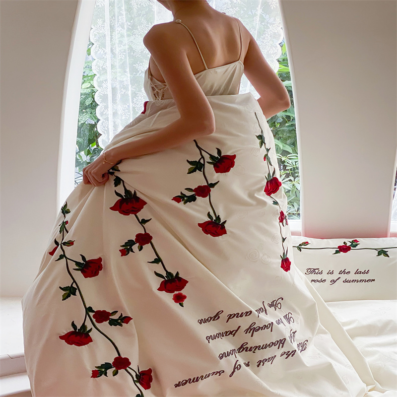 商品名称:(总)星野 2023新款100支双股澳棉提花四件套-法式玫瑰
