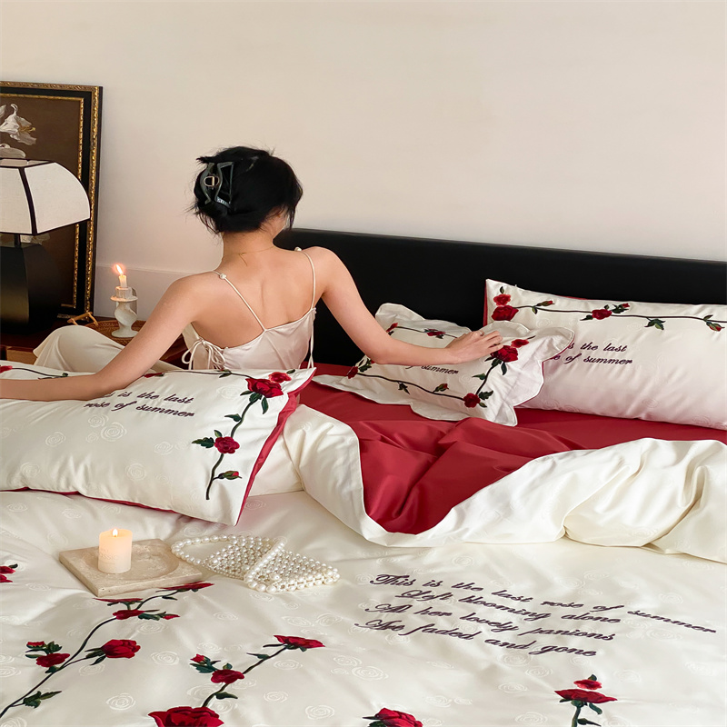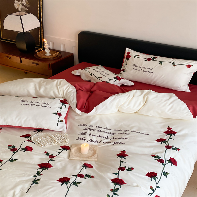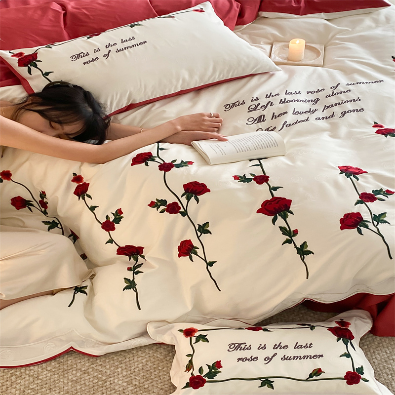 (总)星野 2023新款100支双股澳棉提花四件套-法式玫瑰