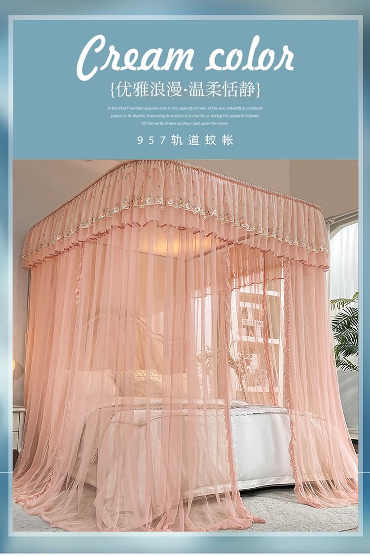 (总)梦尔佳蚊帐2025新款U型导轨蚊帐-861荣华富贵系列,宛如玉,婚纱白,天空蓝,温柔黄,喜庆粉