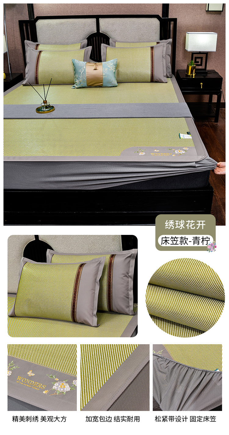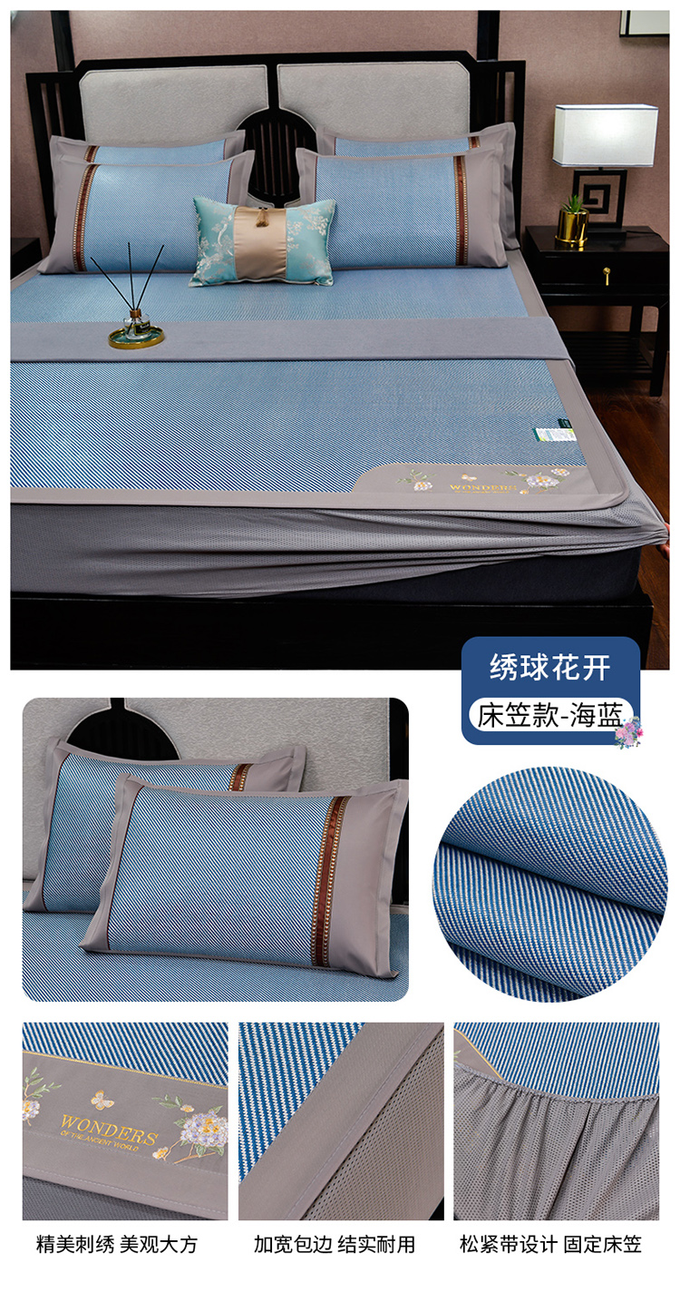 (总)2023新款超精密冰丝席-小斜纹系列-床笠款藤席凉席竹席,粉色,蓝色,绿色,银灰