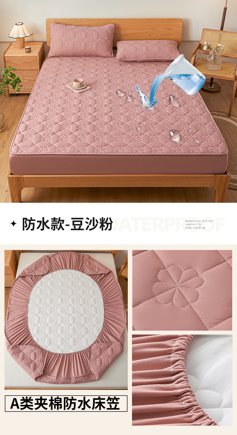 • 91家纺网 家纺一手货源 找家纺 九亭 2023新款A类原棉夹棉防水款床笠床罩 防水款-豆沙粉