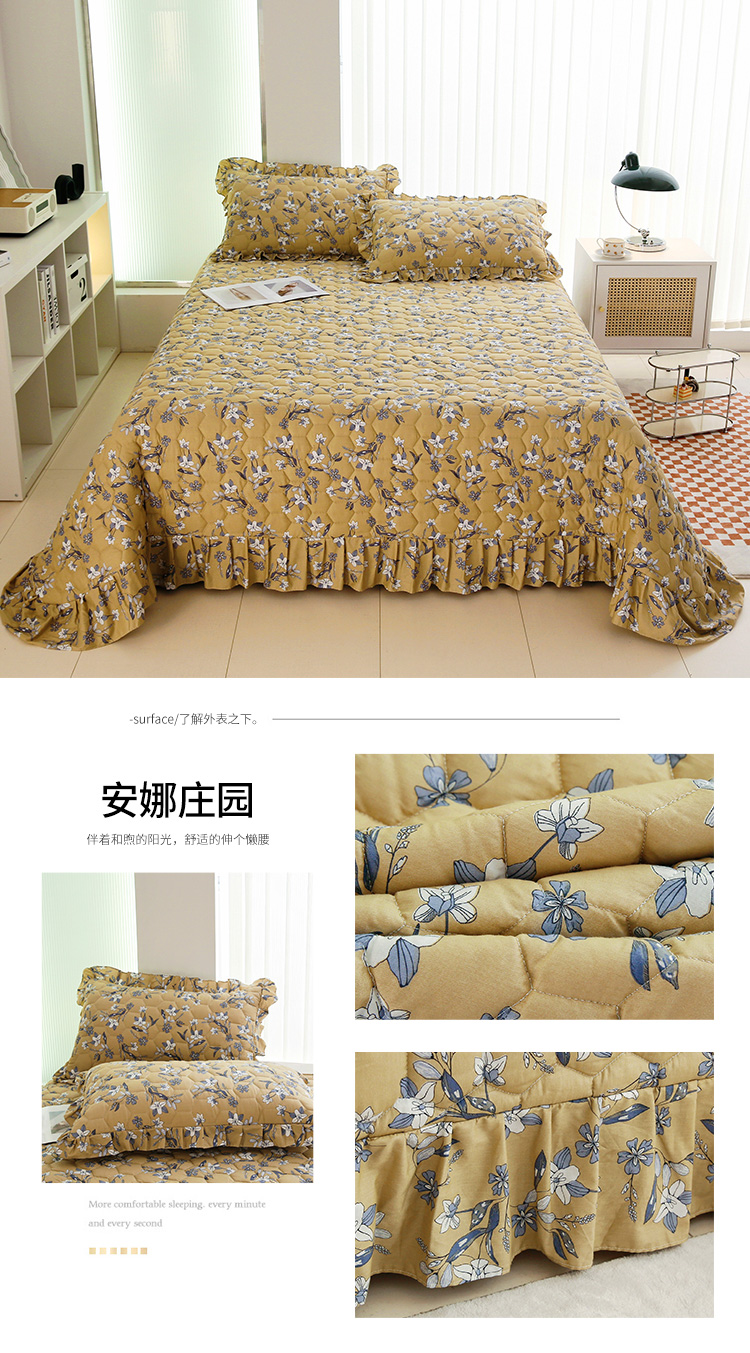 情煊家纺 2023新款全棉夹棉印花床盖三件套(可定制尺寸) 安娜花园