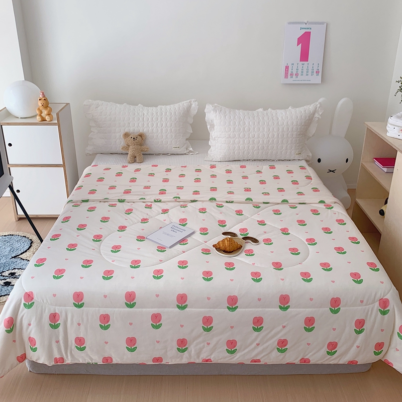 • 91家纺网 家纺一手货源 找家纺 美乐迪 2023新款针织棉夏被 爱心郁金香
