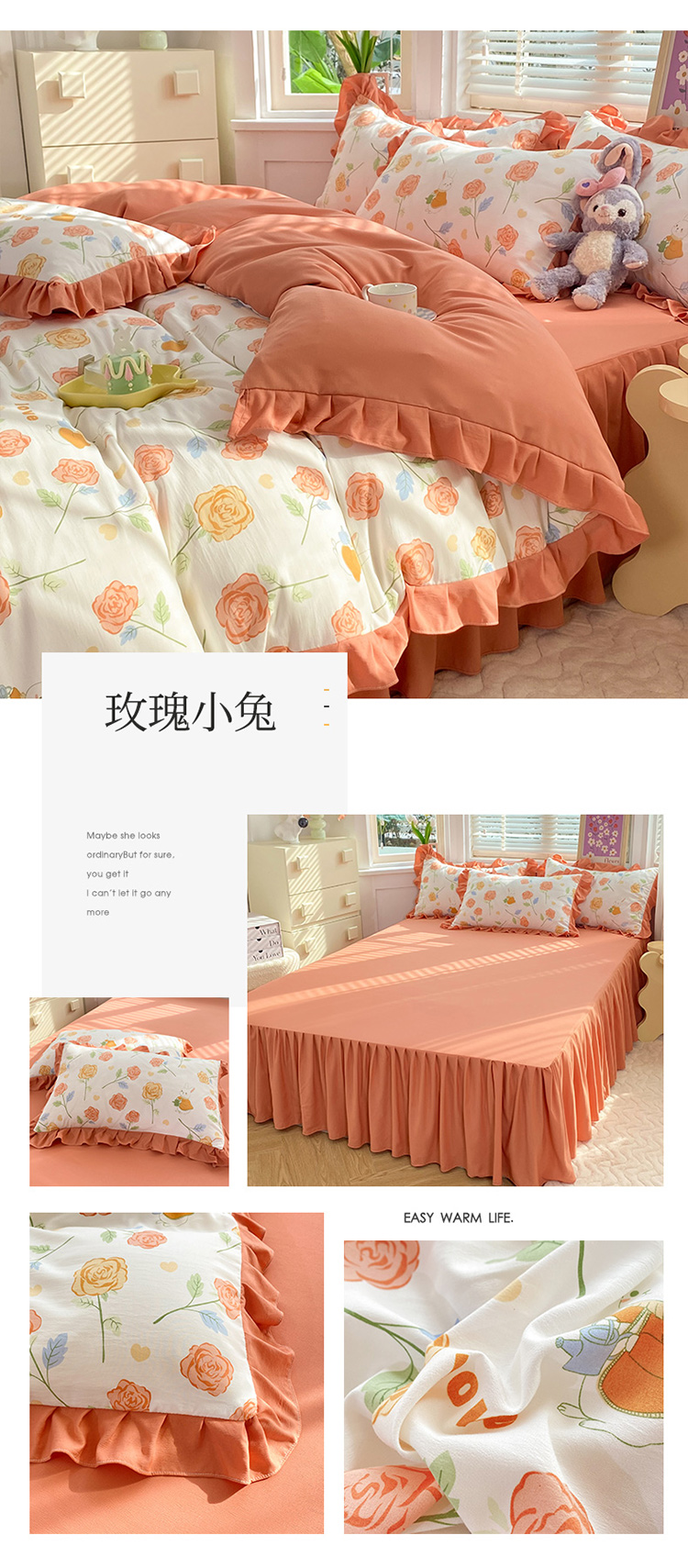 (总)梦之岛 2023新款棉麻水洗双层纱床裙四件套,草莓恋,初春,大展宏兔,芳菲,花语,玫瑰小兔,慕青,唯美,幸运熊,郁金香