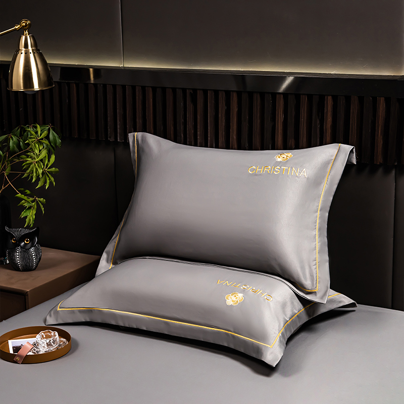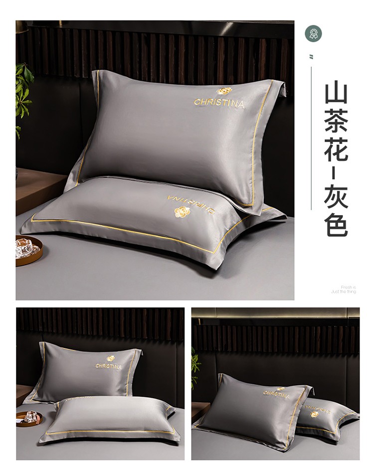 丽美人家纺 2023新款山茶花枕套 山茶花-灰色