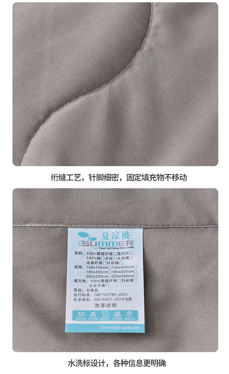 商品名称:宇豪 2023新款水洗棉夏被 LOVE-高级灰