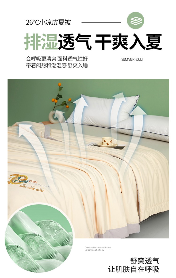 (总)伊被源 2023新款26℃小凉皮蚕蛹蛋白夏被,玫瑰粉,奶油黄,宁静蓝,青果绿,月光灰