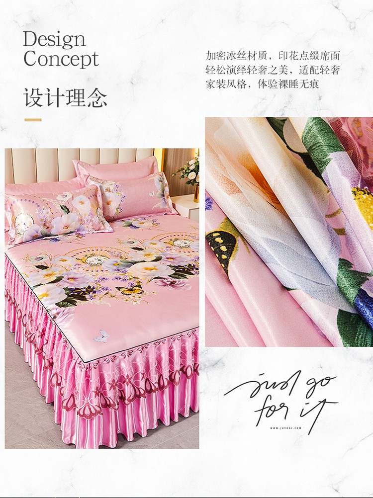 当前位置: 91家纺网 > 商品网购 > 床品套件 > 三件套 > 艾裙海 2025新款冰丝凉席三件套系列-床裙款 春香满园-粉