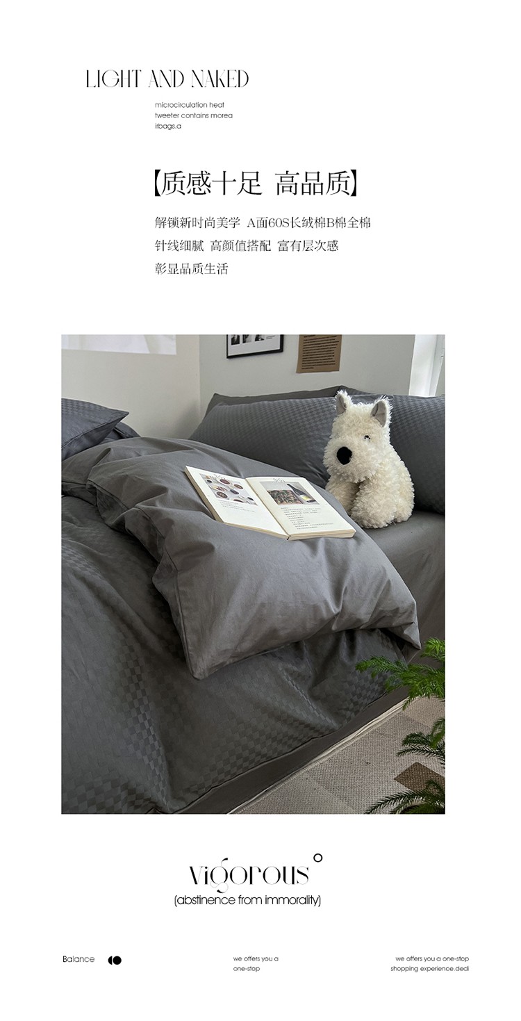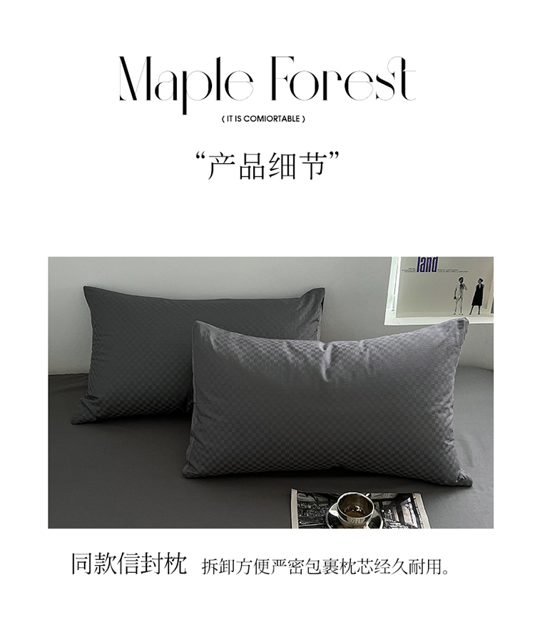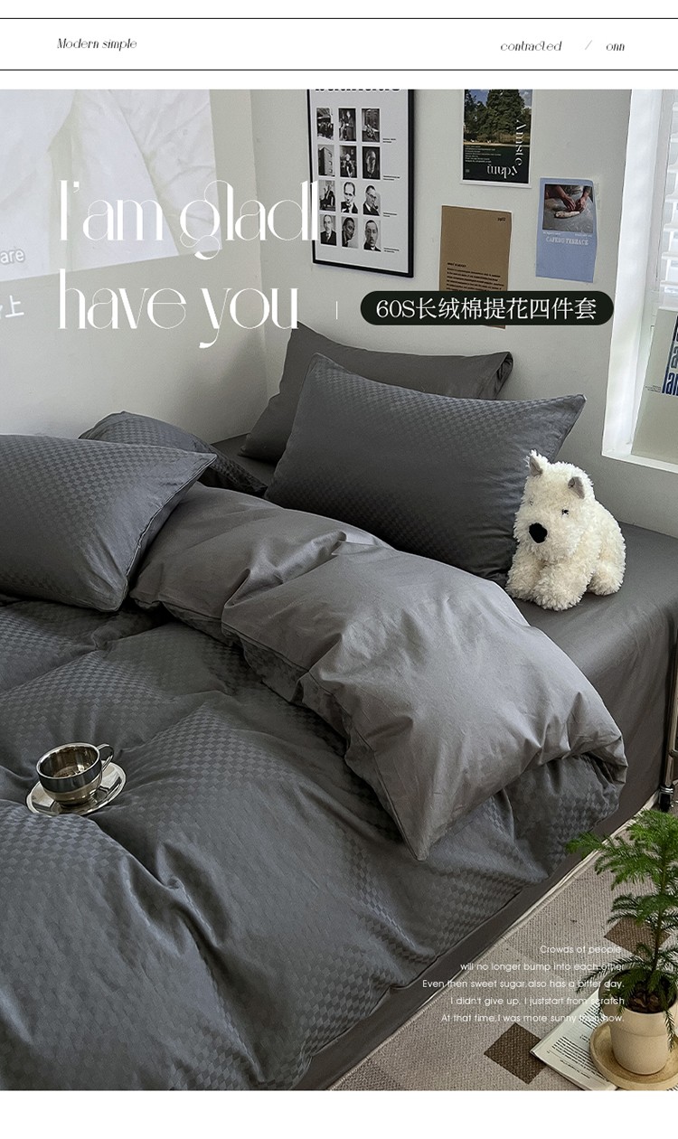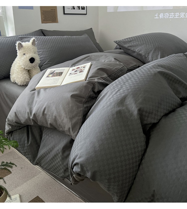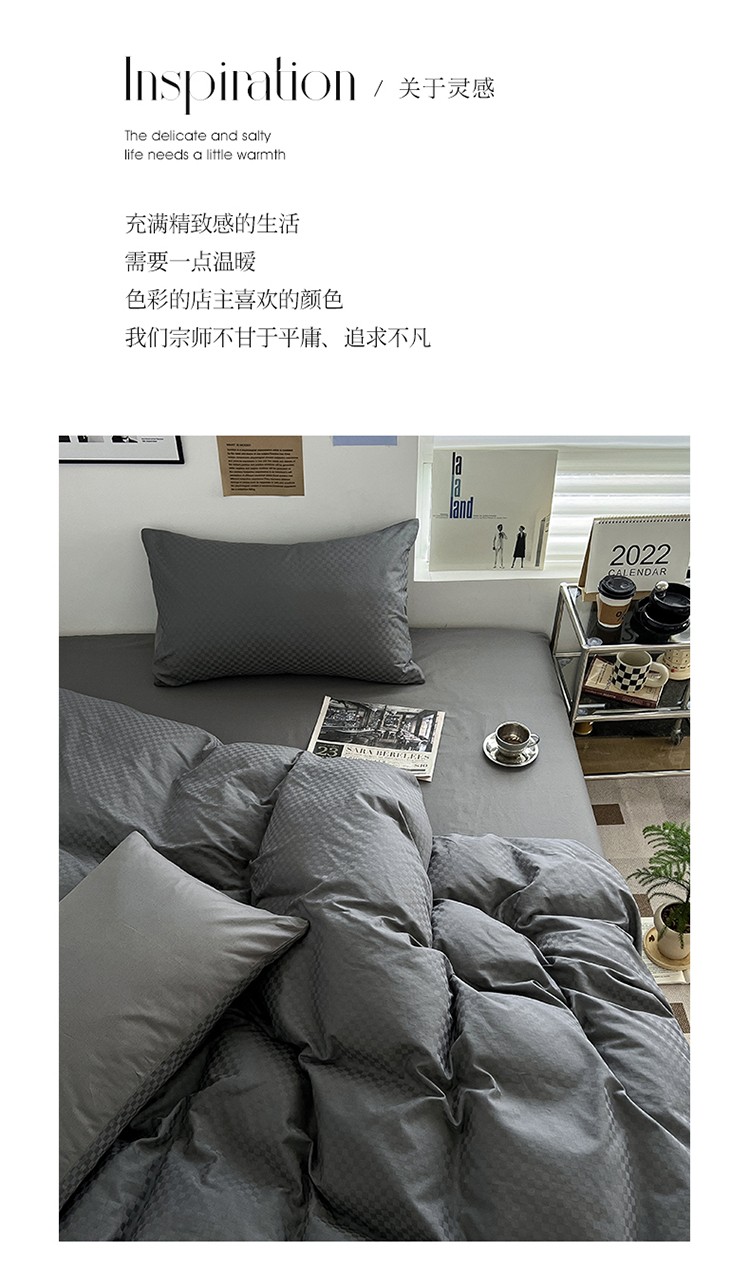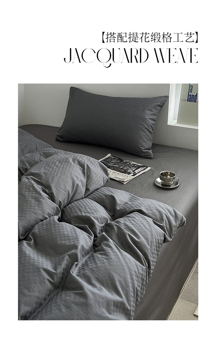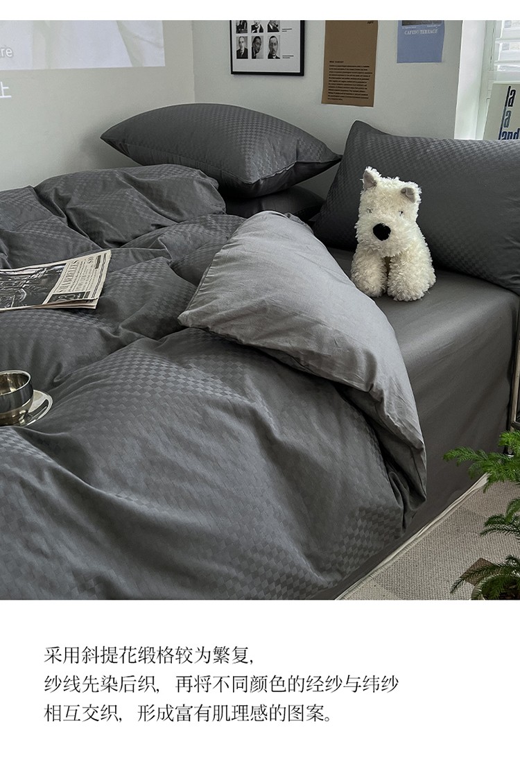 三朵 2023新款提花混搭缎格DG系列四件套 相思灰