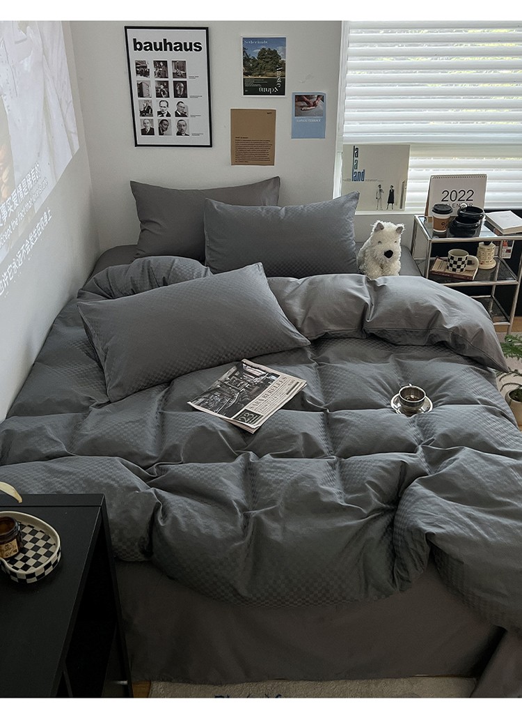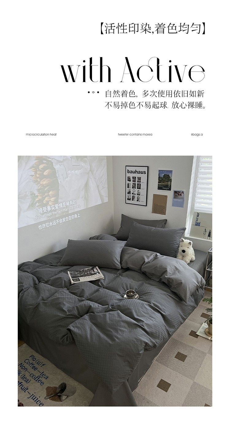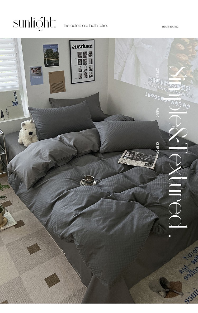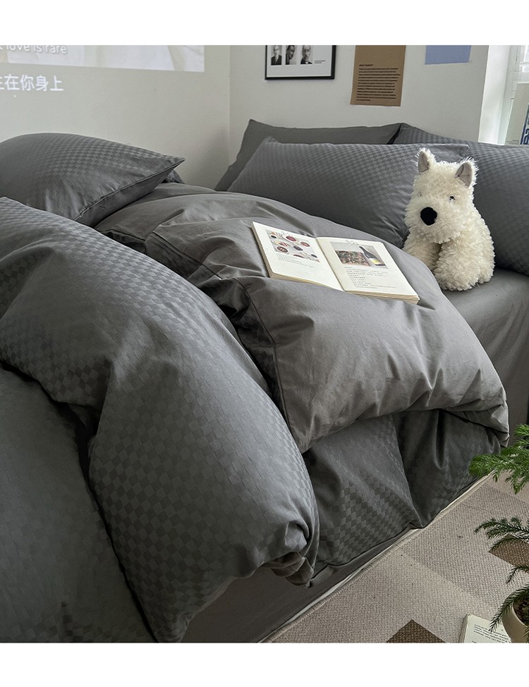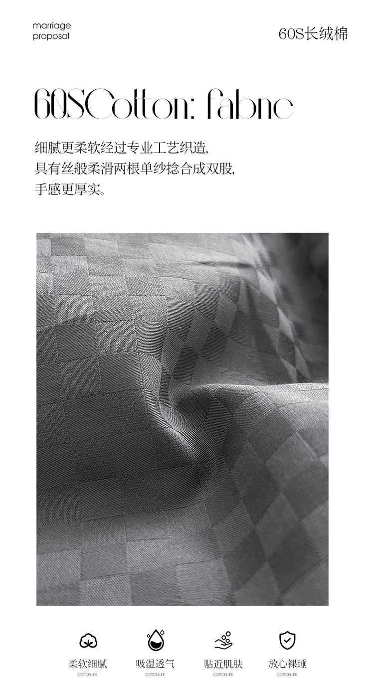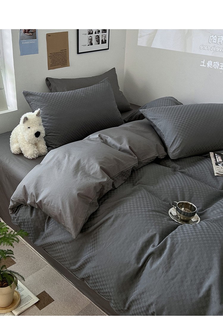 三朵 2023新款提花混搭缎格DG系列四件套 相思灰