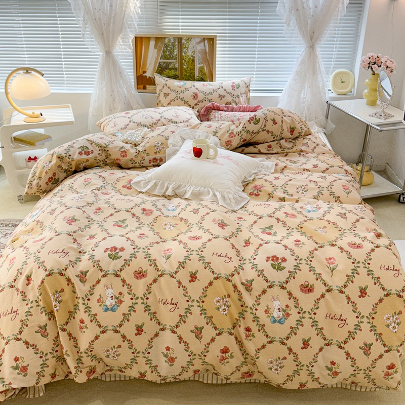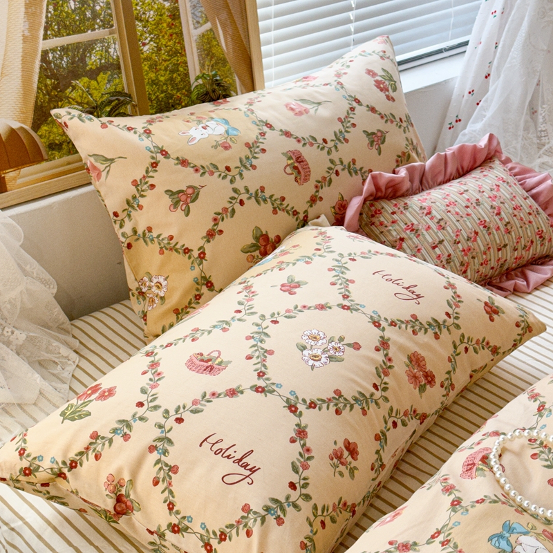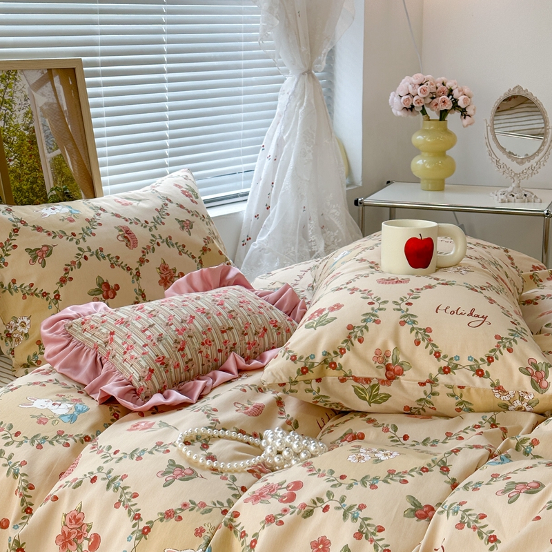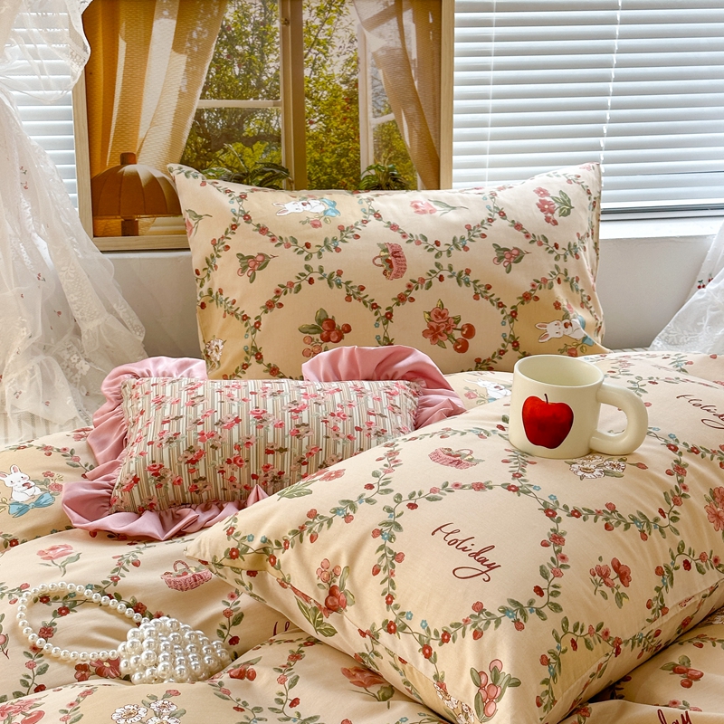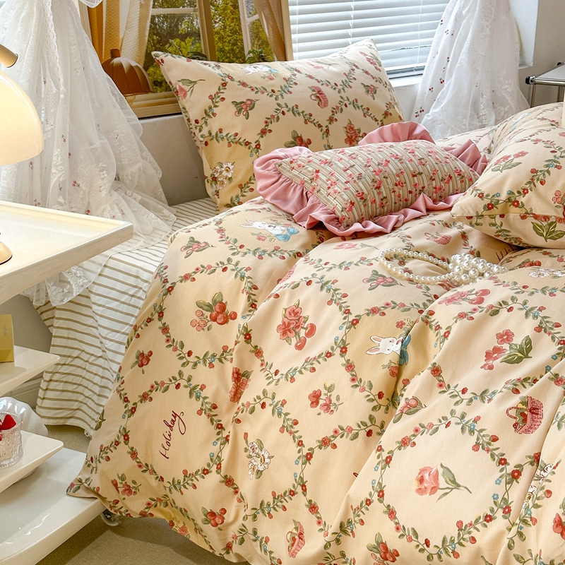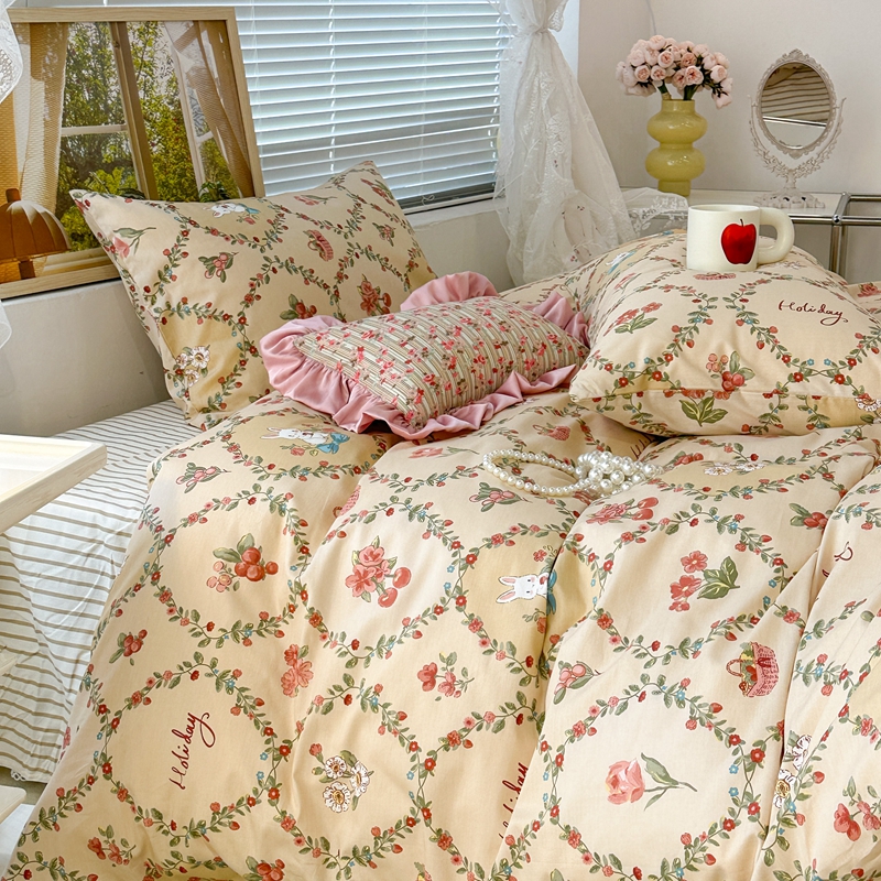 昔可2023新款3月春日全棉四件套 花环樱桃兔