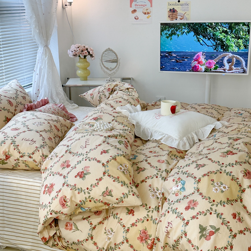 (总)昔可 2023新款学生季全棉四件套-小花系列,柏林少女,花野迷踪,少女粉草莓,微熏海棠,夏茉莉,小兰花,小小的樱桃,紫色果果,紫色葡萄