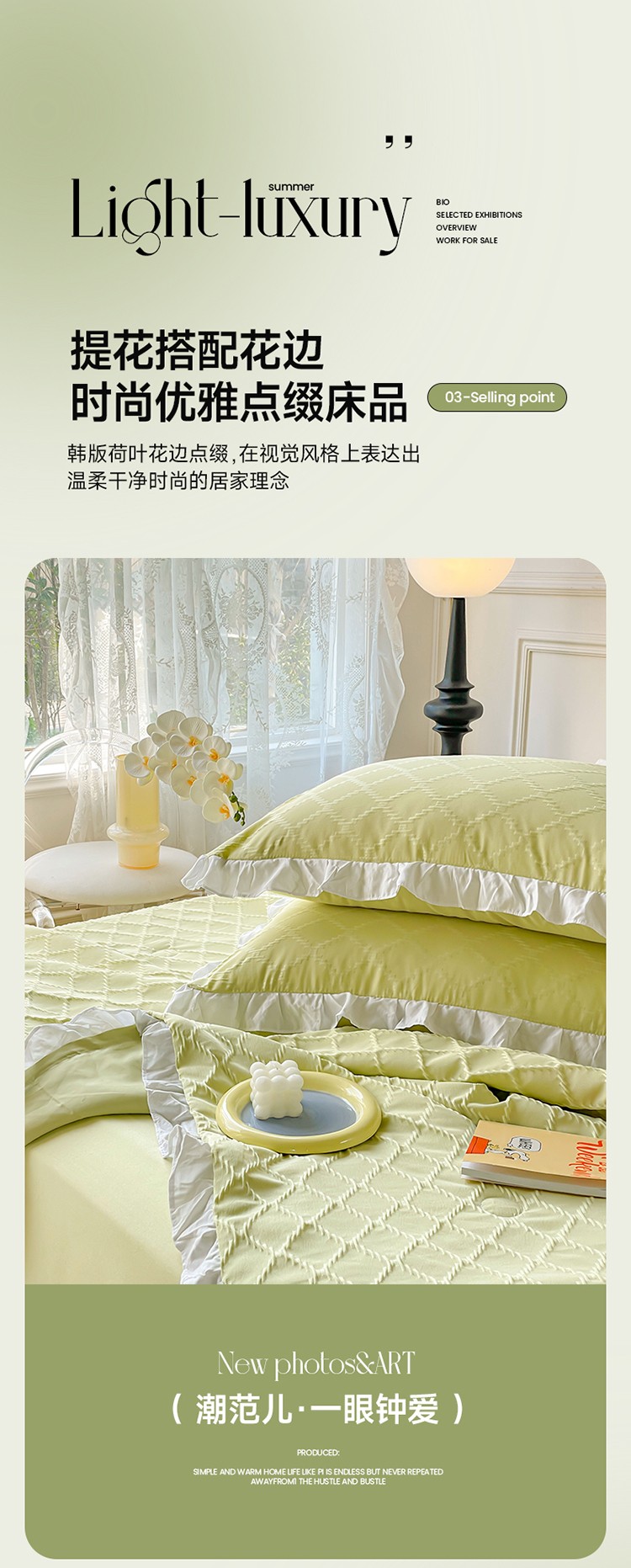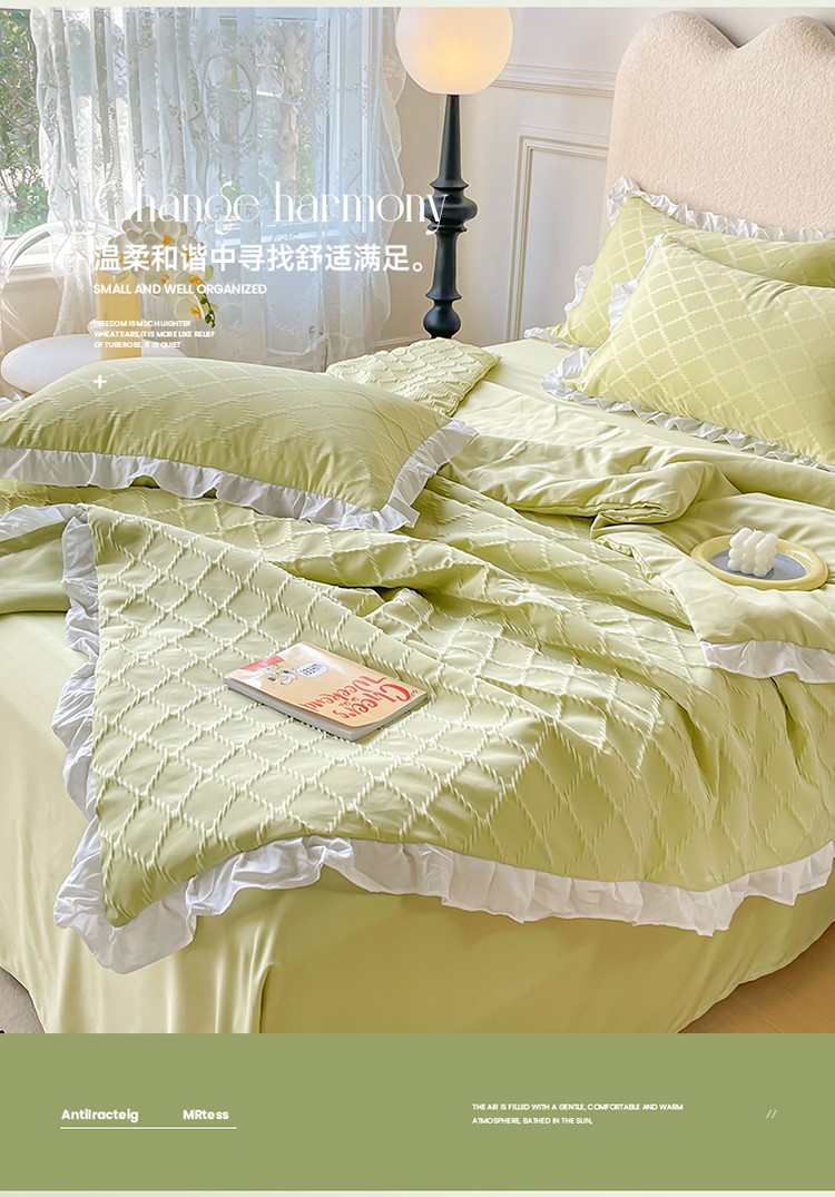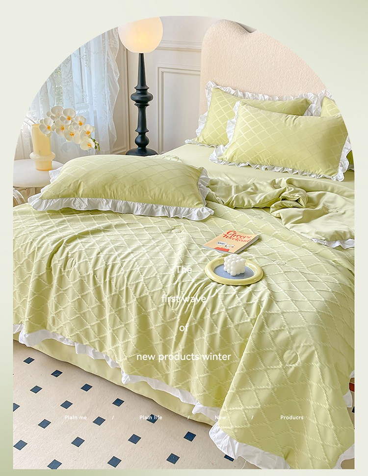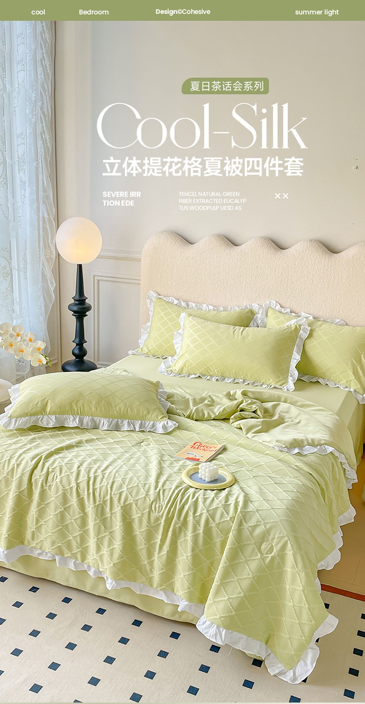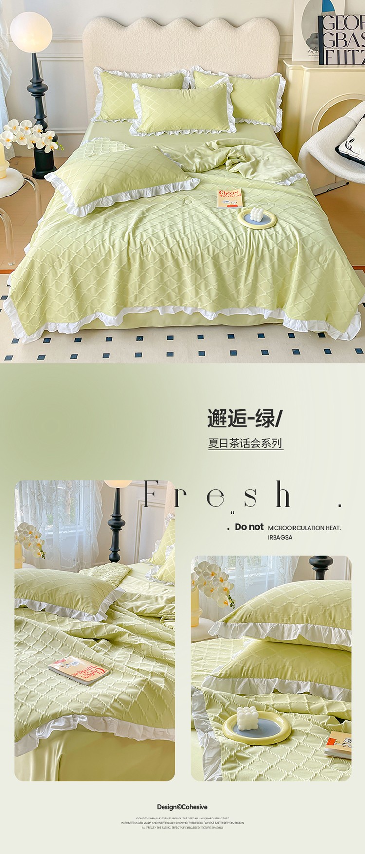 当前位置: 91家纺网 > 商品网购 > 床品套件 > 四件套 > 夏被四件套 > 澳梵 2023新款【夏日茶话会】系列-立体提花格夏被四件套 邂逅-绿