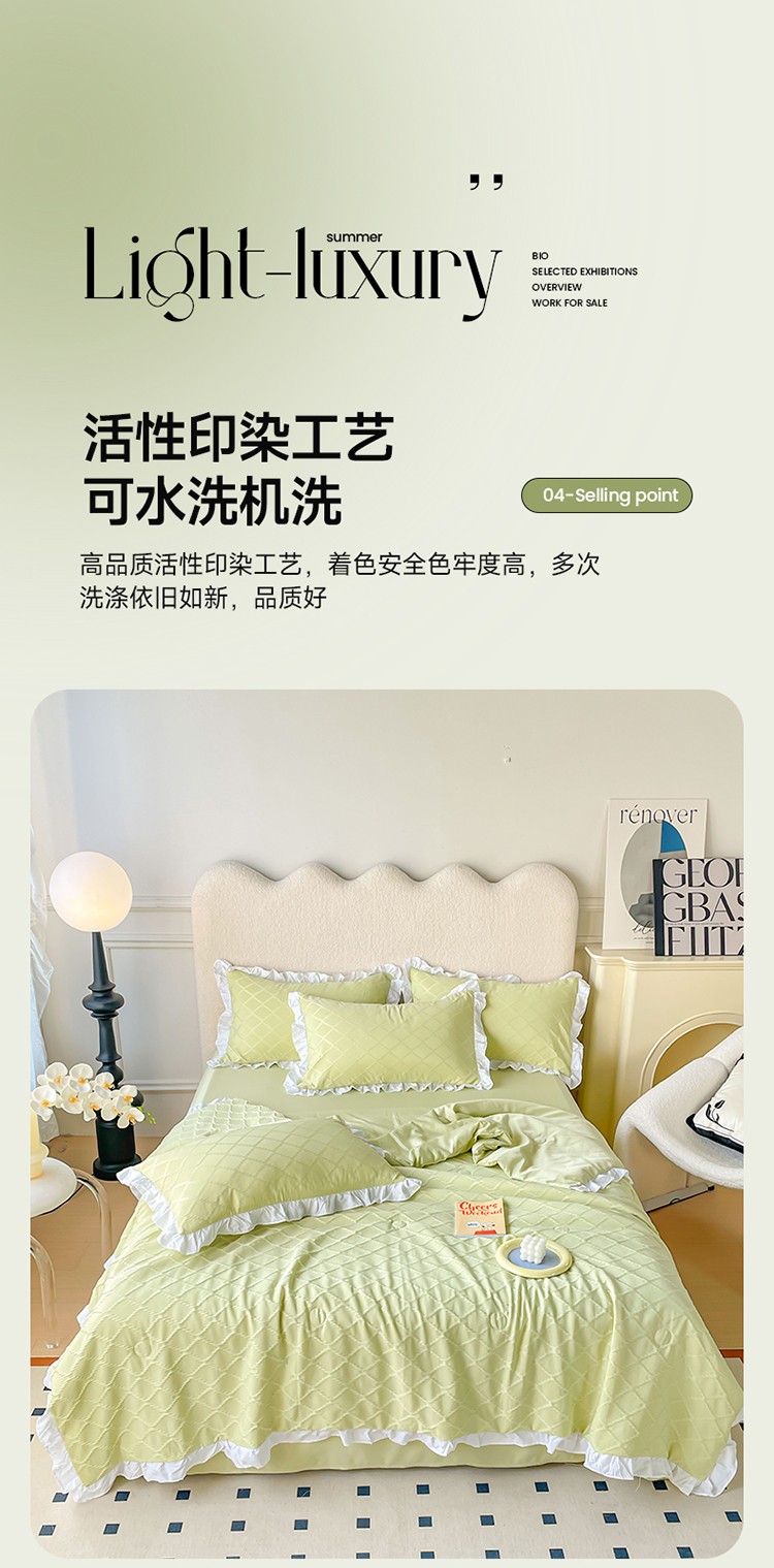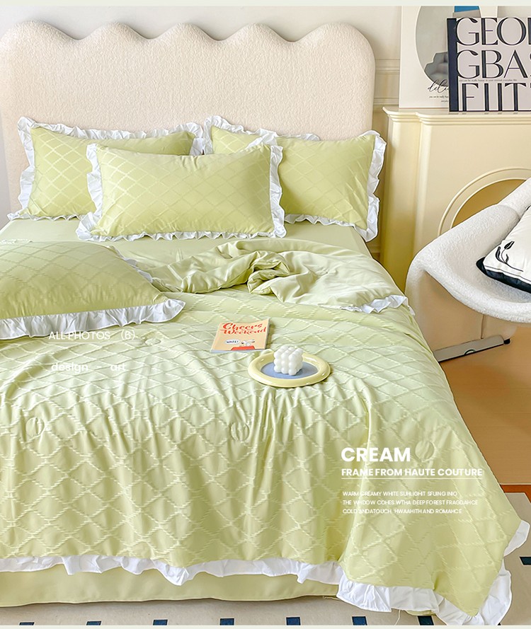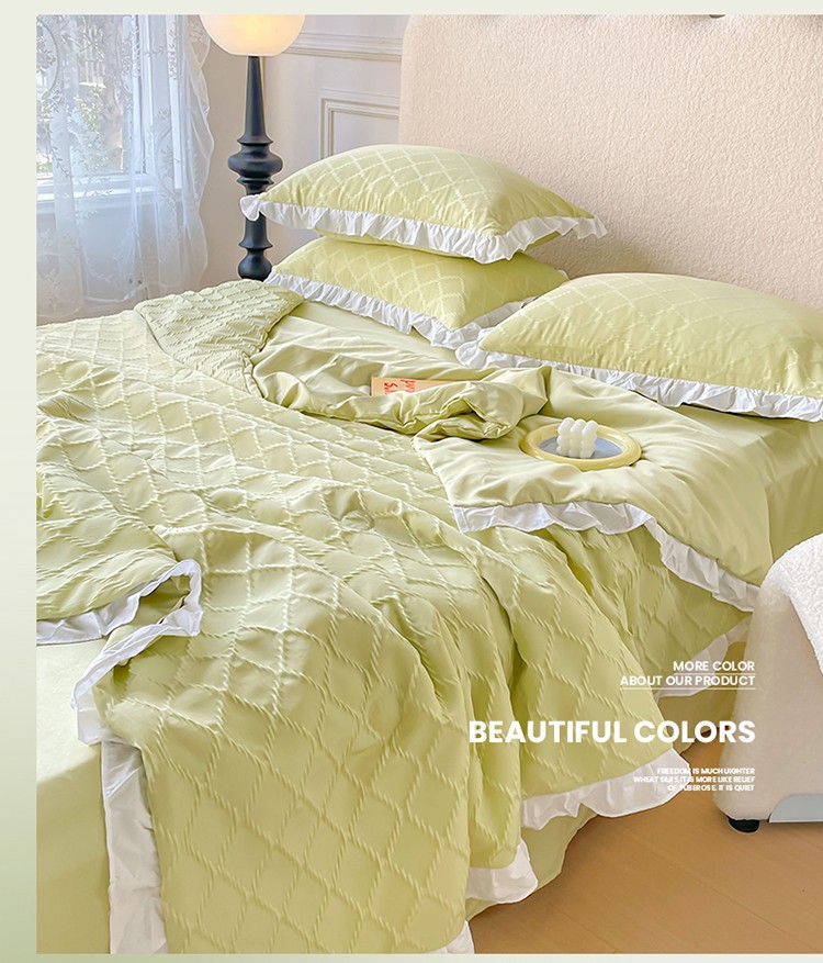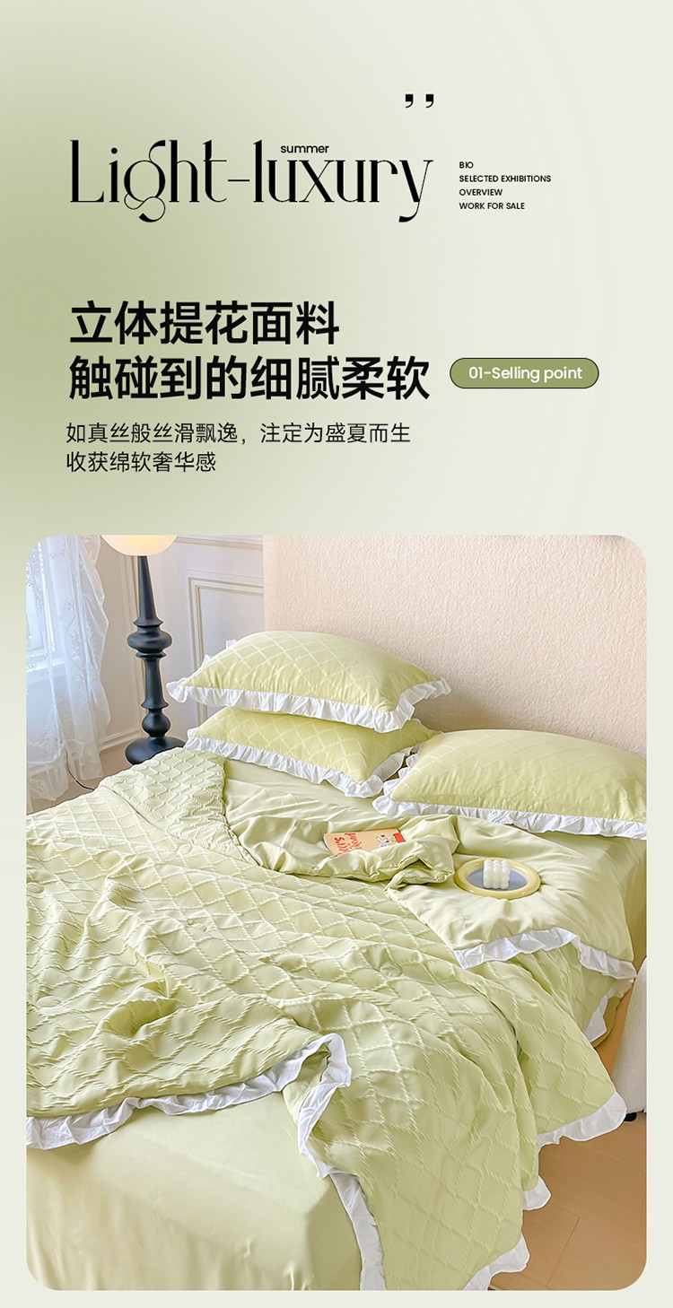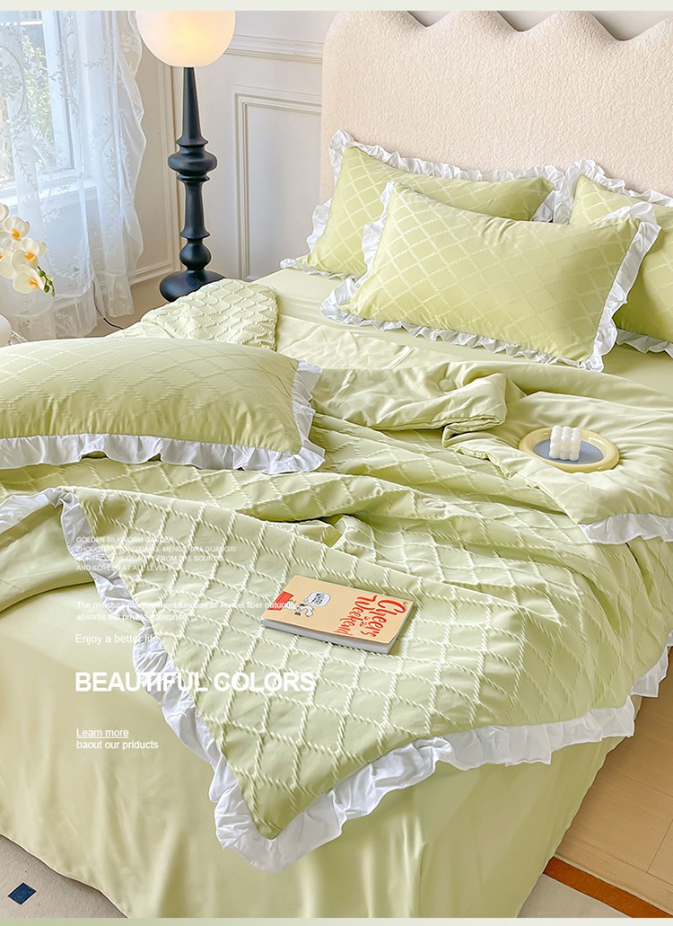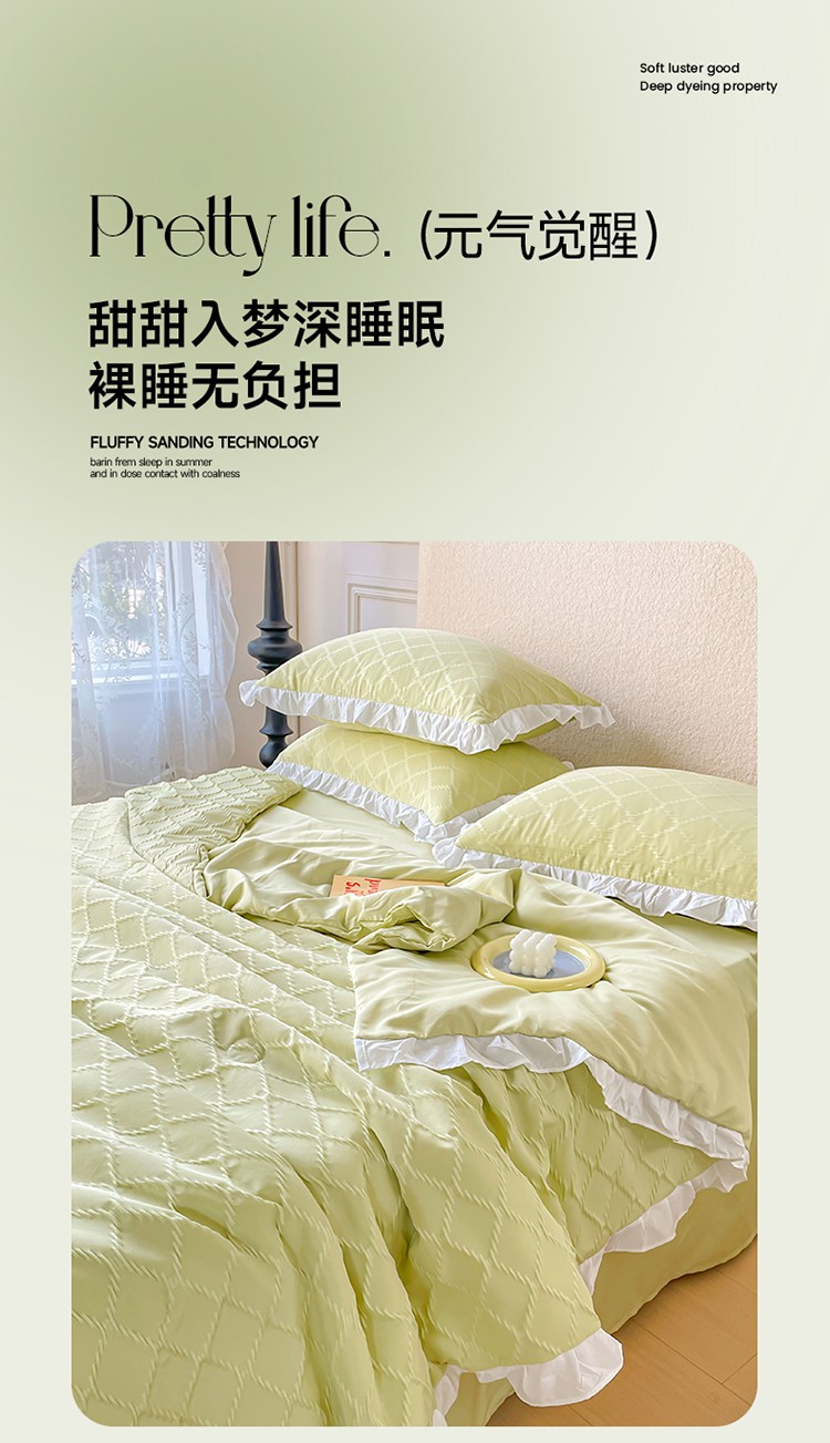 当前位置: 91家纺网 > 商品网购 > 床品套件 > 四件套 > 夏被四件套 > 澳梵 2023新款【夏日茶话会】系列-立体提花格夏被四件套 邂逅-绿
