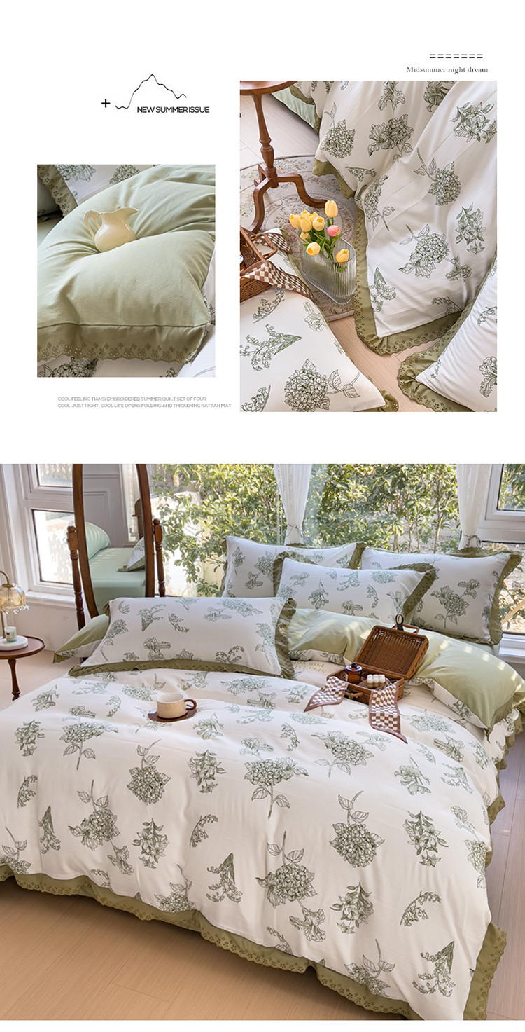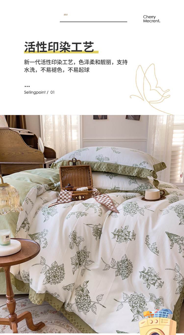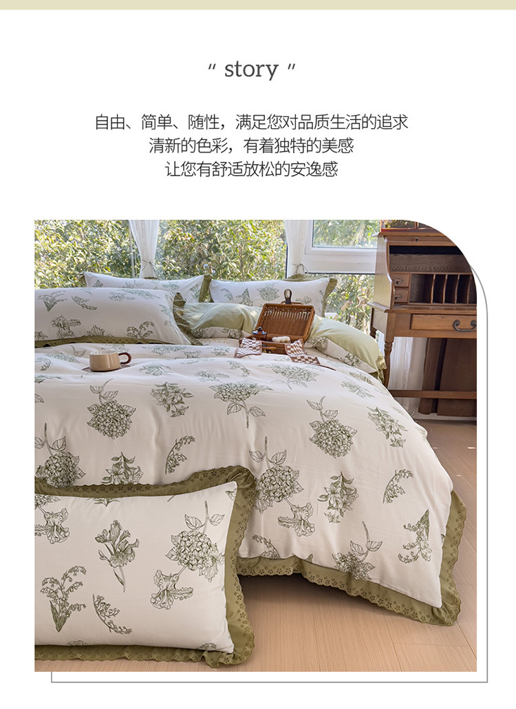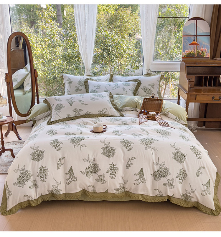 当前位置: 91家纺网 > 商品网购 > 床品套件 > 四件套 > 水洗棉四件套 > 大米 2023新款复古花边A类印花水洗棉麻四件套 海岛来信