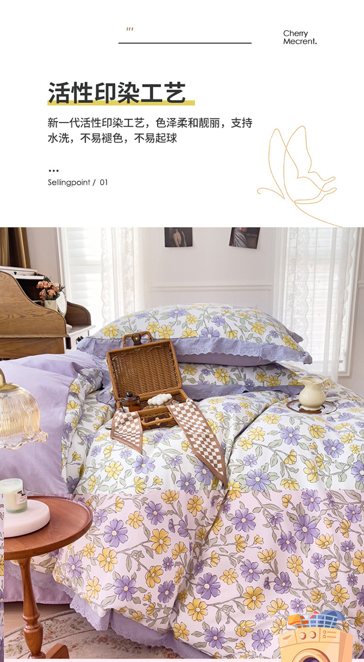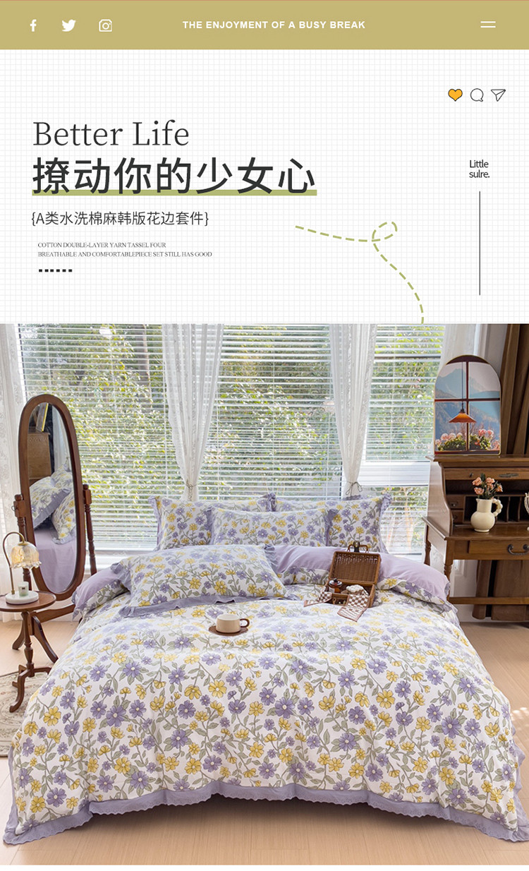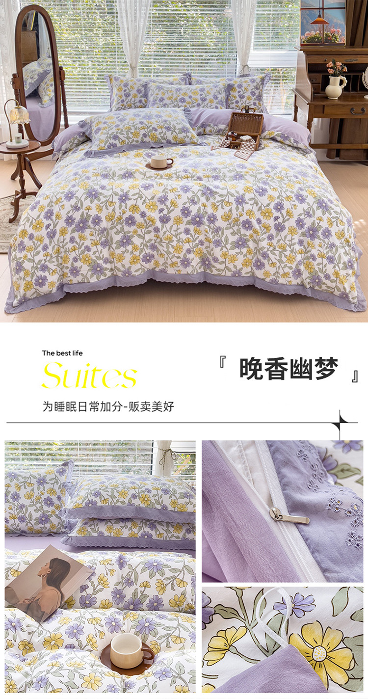 当前位置: 91家纺网 > 商品网购 > 床品套件 > 四件套 > 水洗棉四件套 > 大米 2023新款复古花边A类印花水洗棉麻四件套 晚香幽梦