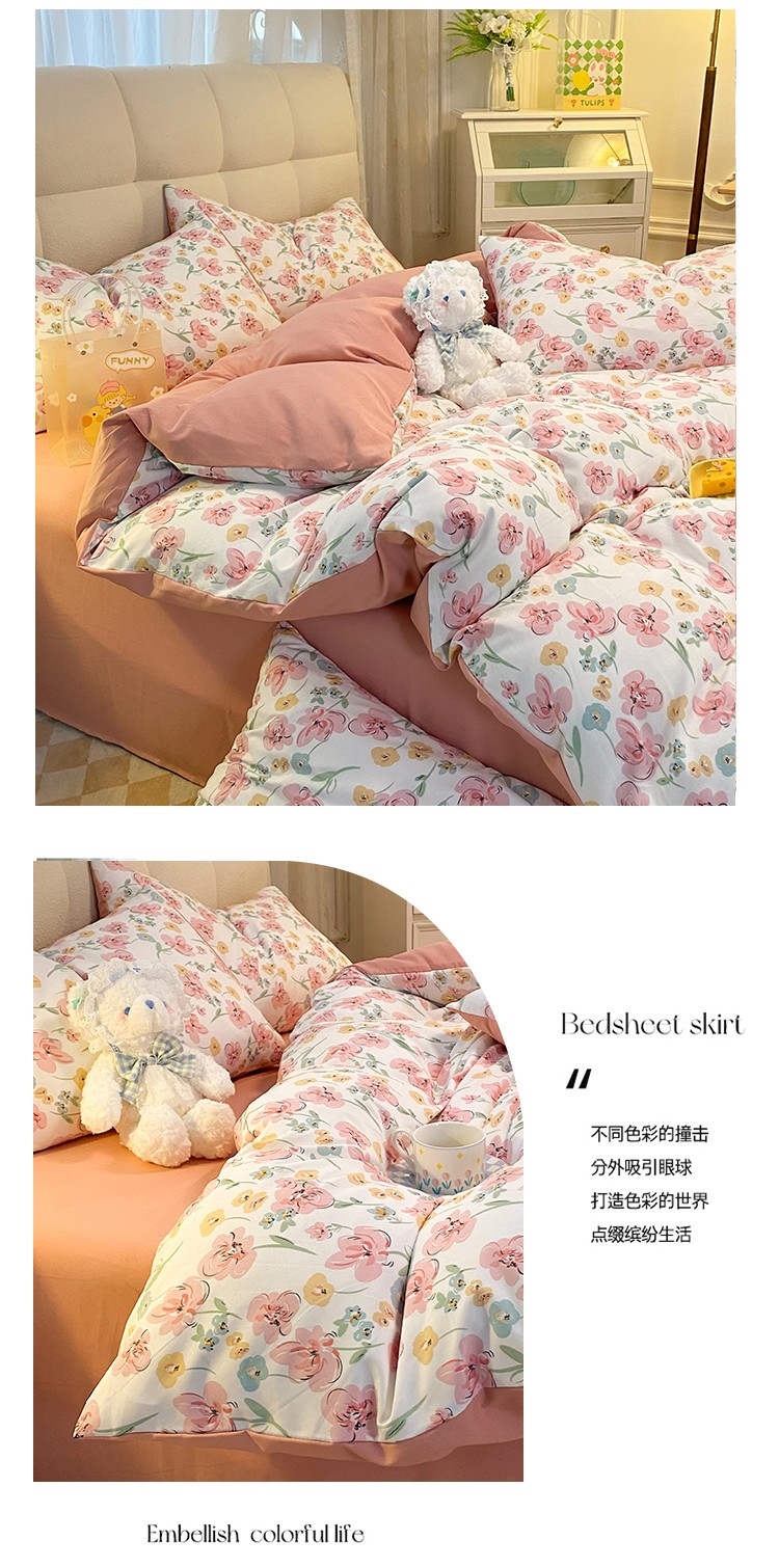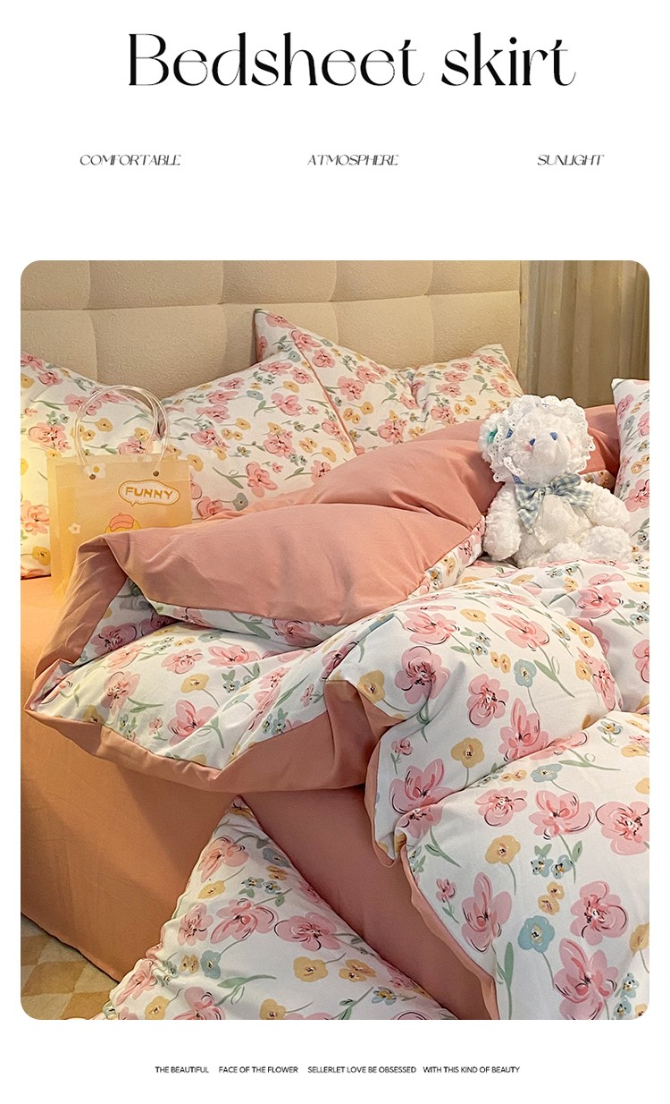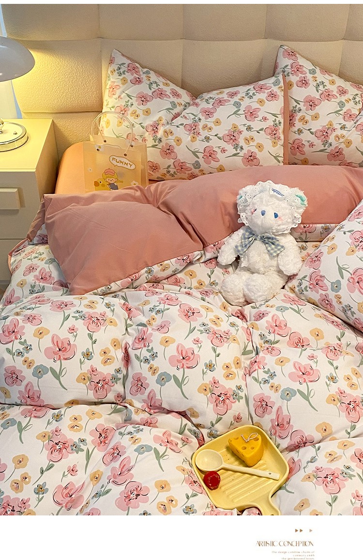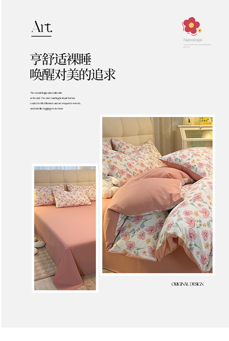 妖妖家纺2023新款水洗棉麻四件套 粉桃