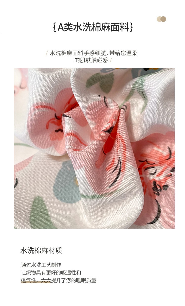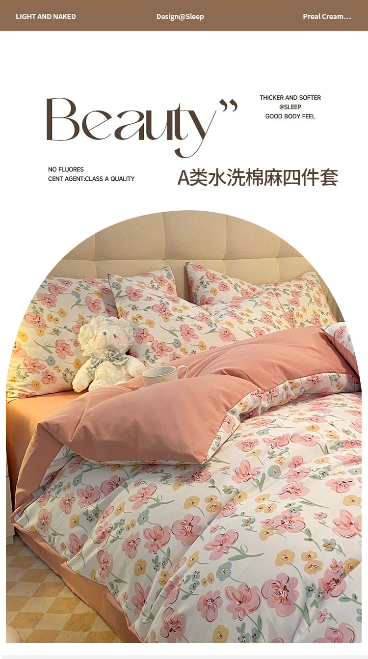 商品名称:妖妖家纺2023新款水洗棉麻四件套 粉桃