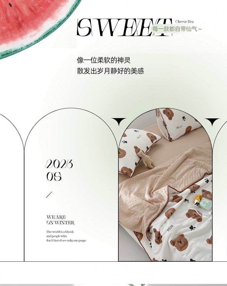当前位置: 91家纺网 > 商品网购 > 床品套件 > 四件套 > 夏被四件套 > 花漾 2023新款A类针织棉凉感丝夏被凉席四件套 哈喽小熊